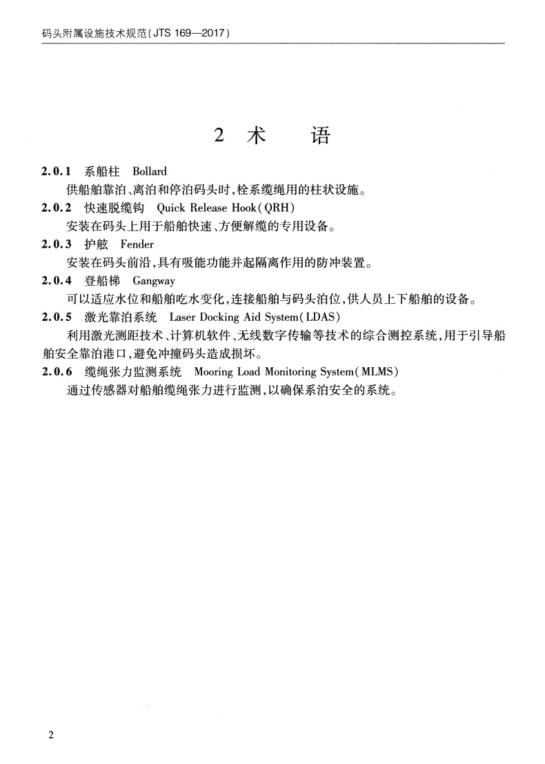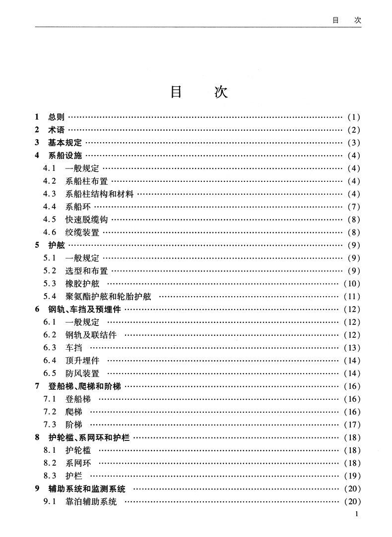 本次修订的主要内容有:增加了登船梯、靠泊辅助系统、风浪流监测系统和缆绳张力监测系统的技术规定,对附属设施耐久性、系靠船设施布置、涉及安全环保的技术条款见习了修订。