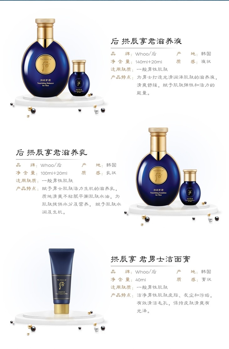 韩国 WHOO后 男士拱辰享君水乳5件套 套盒 (爽肤水140ml+20ml+乳液100ml+20ml+洗面奶40ml)