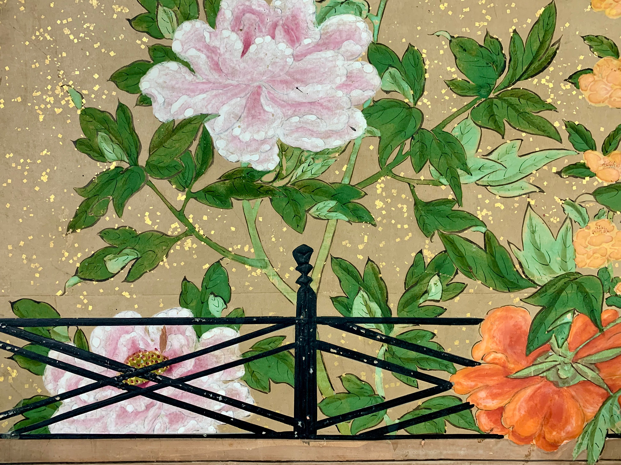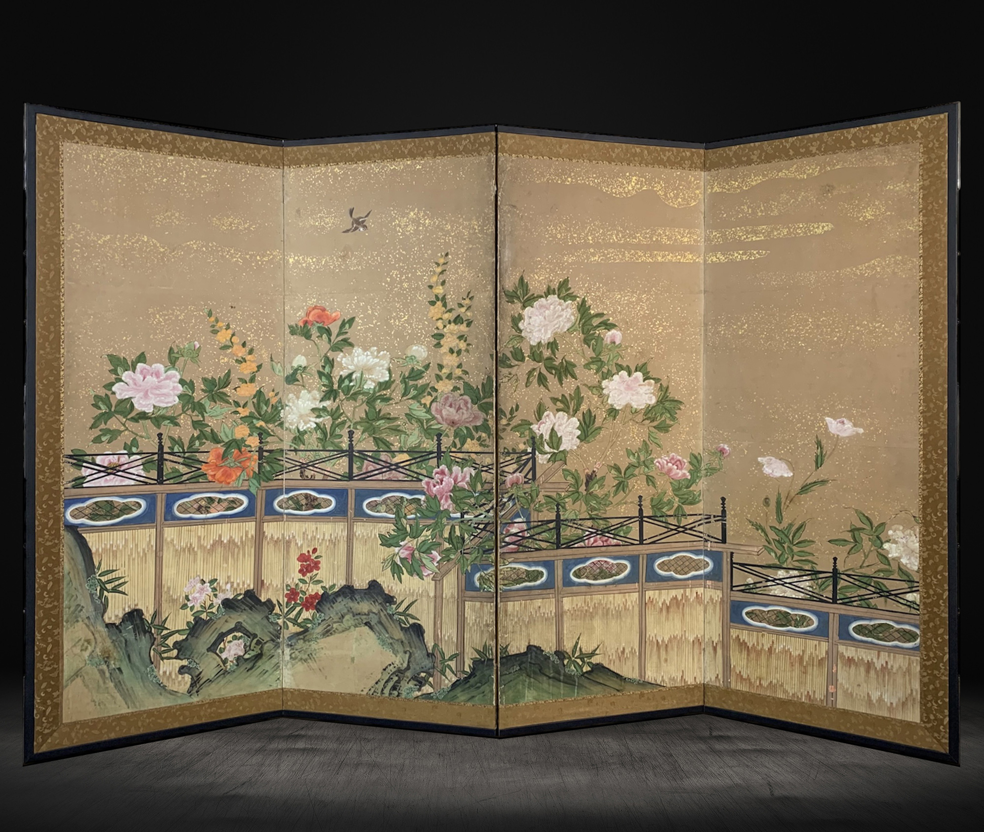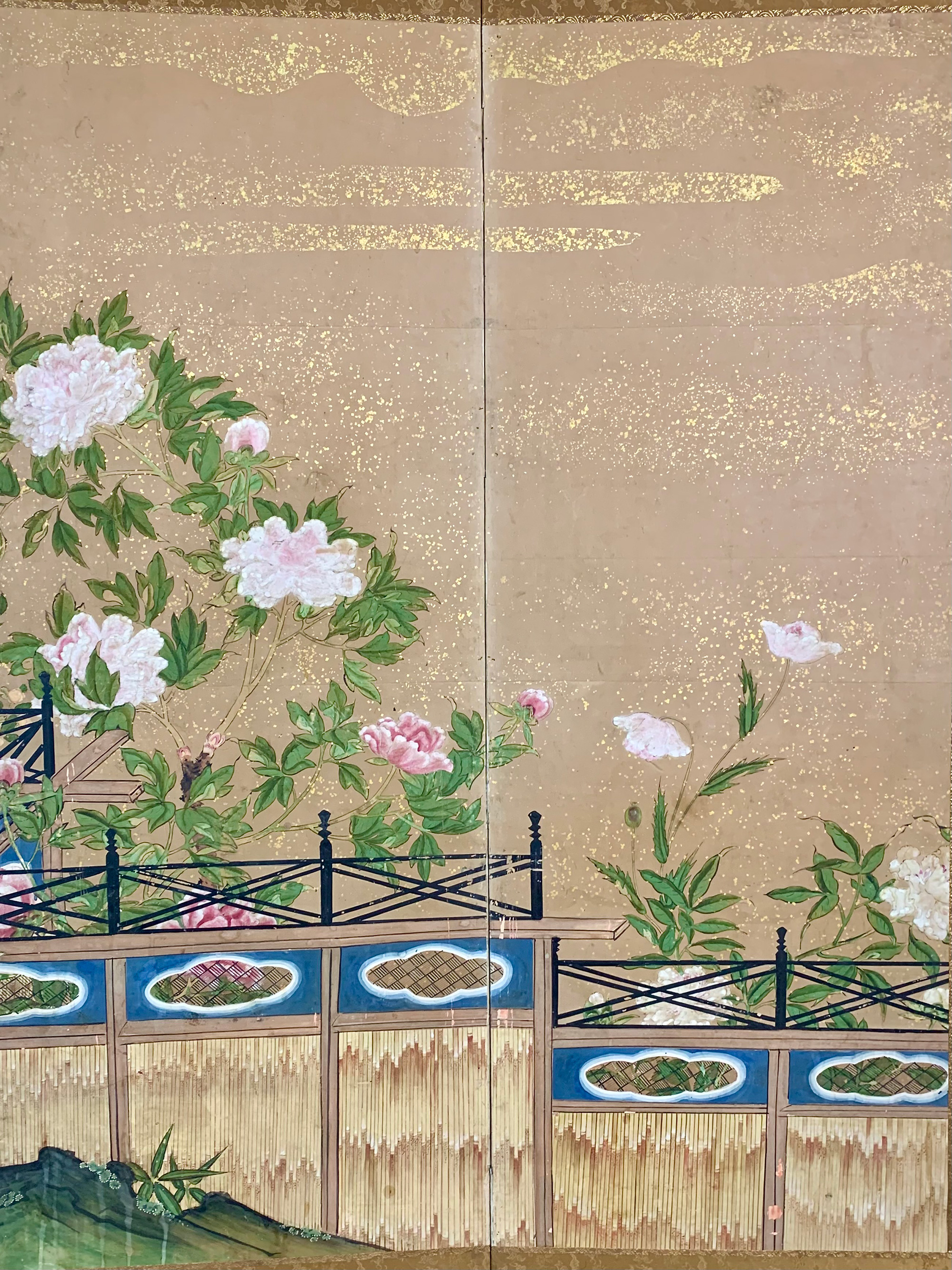 1603-1868年代日本江户时代出品「富贵牡丹」主题金地纸本设色四曲屏风