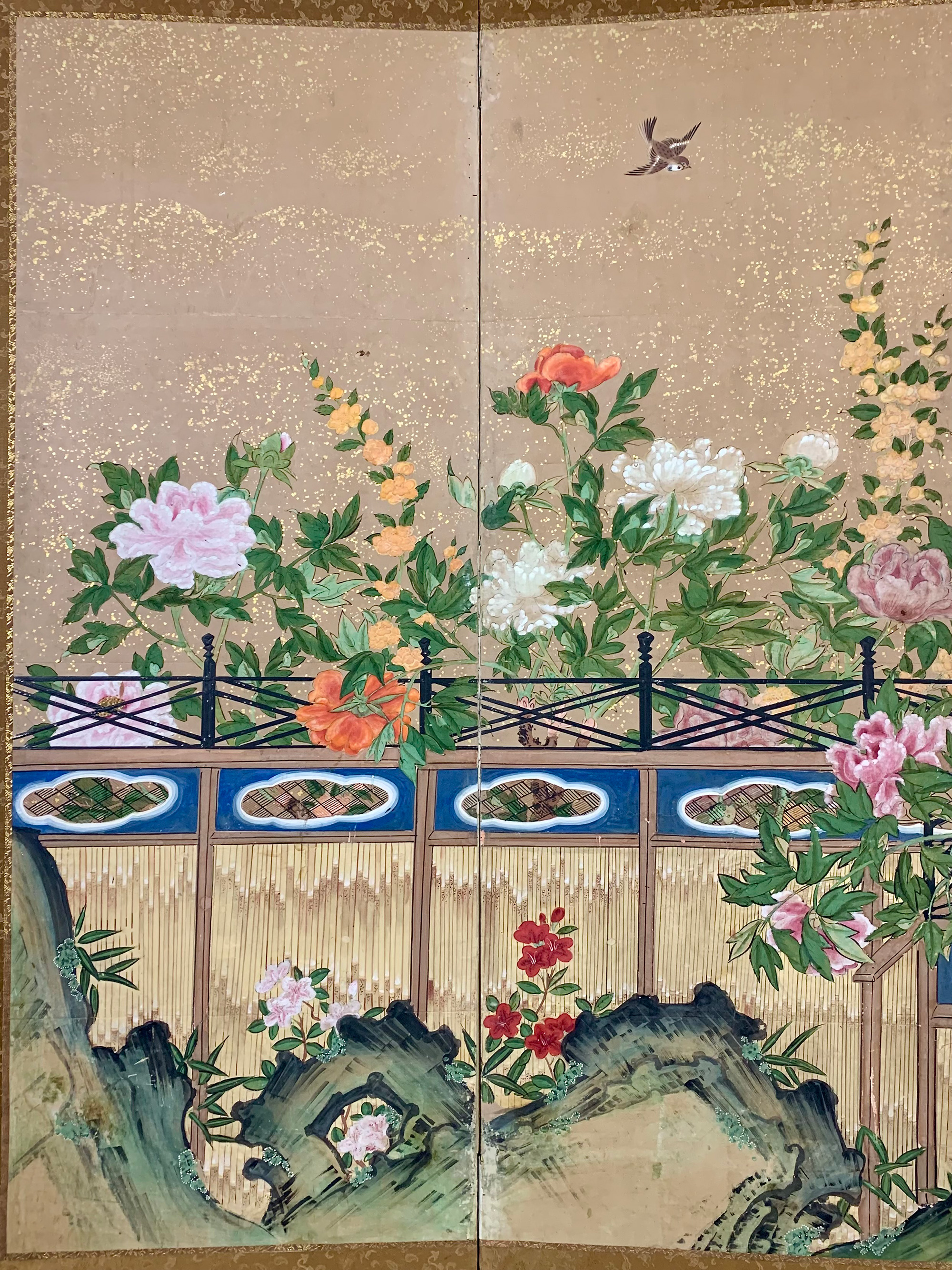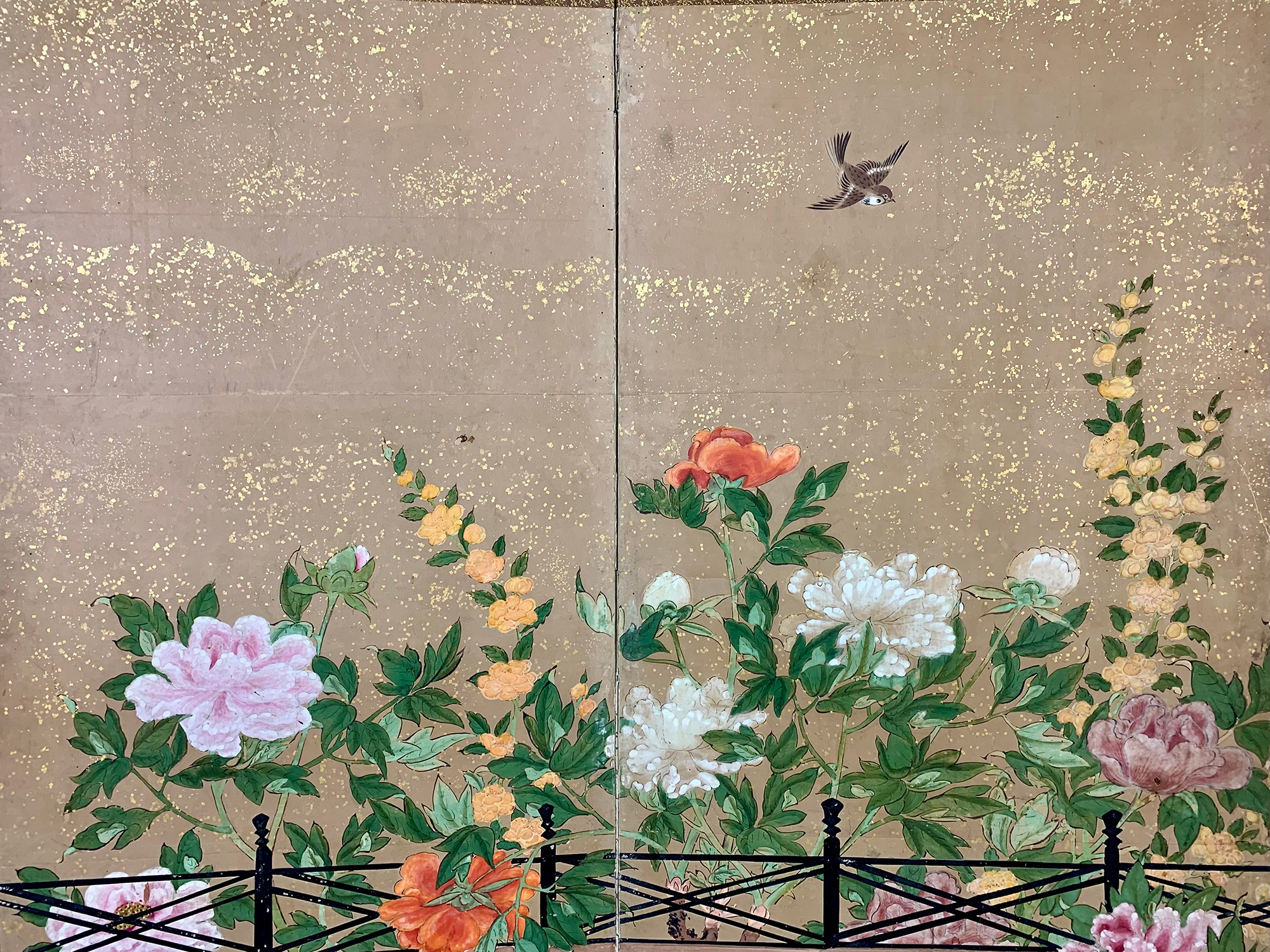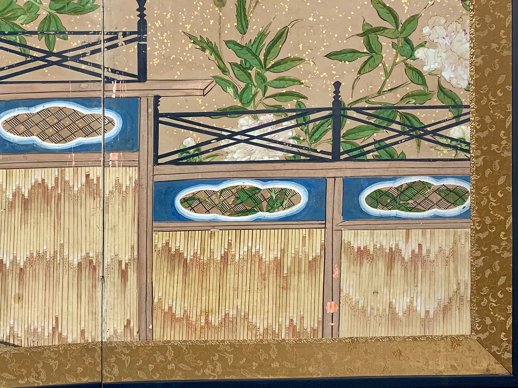 1603-1868年代日本江户时代出品「富贵牡丹」主题金地纸本设色四曲屏风