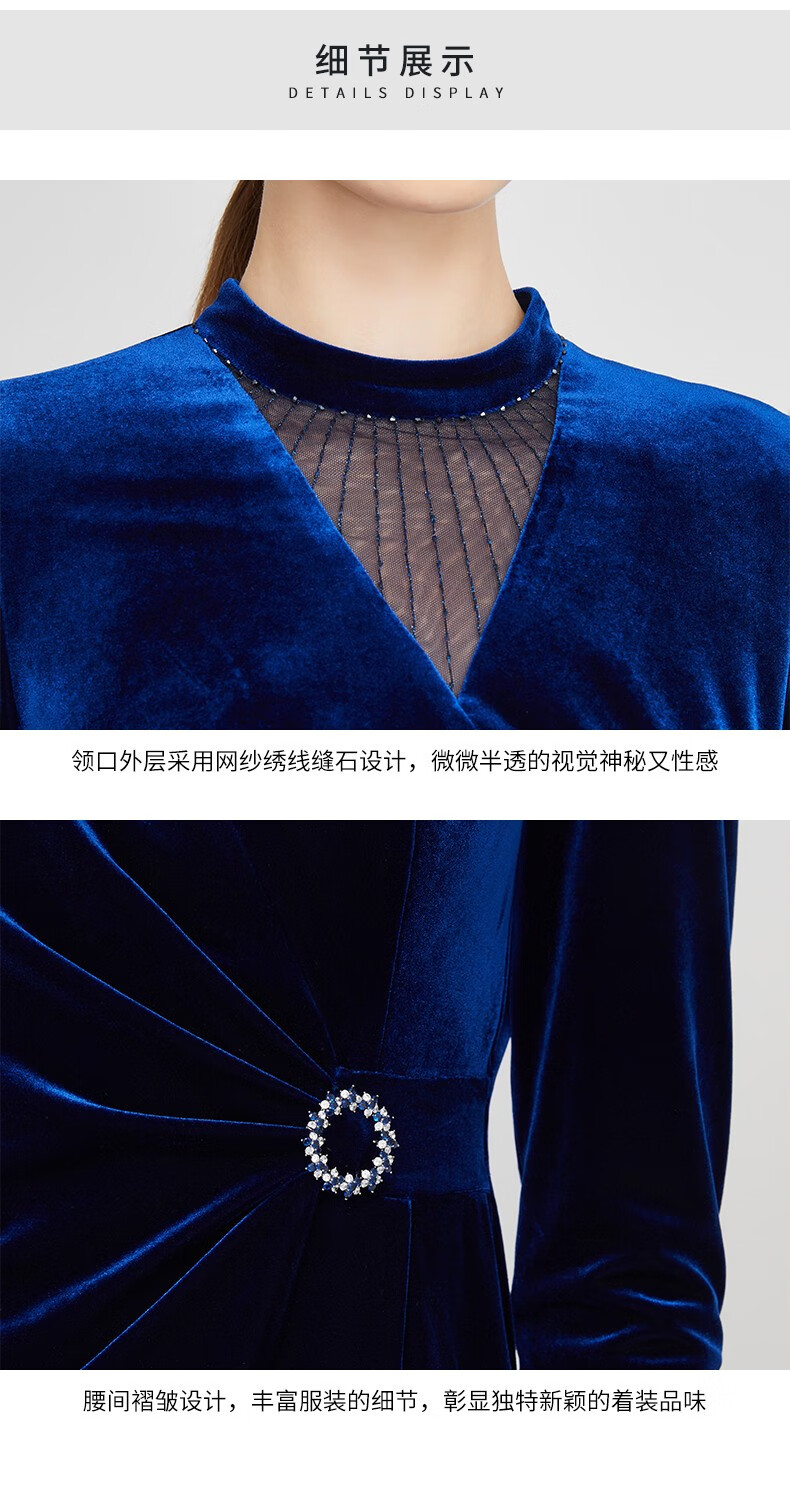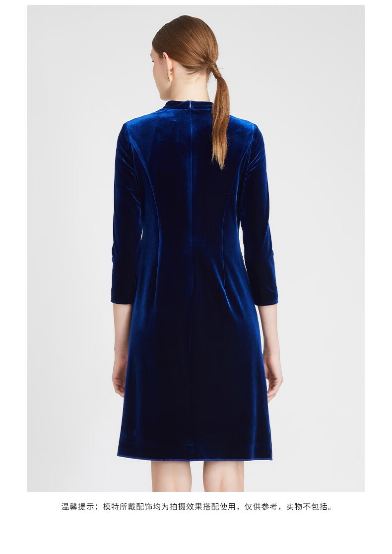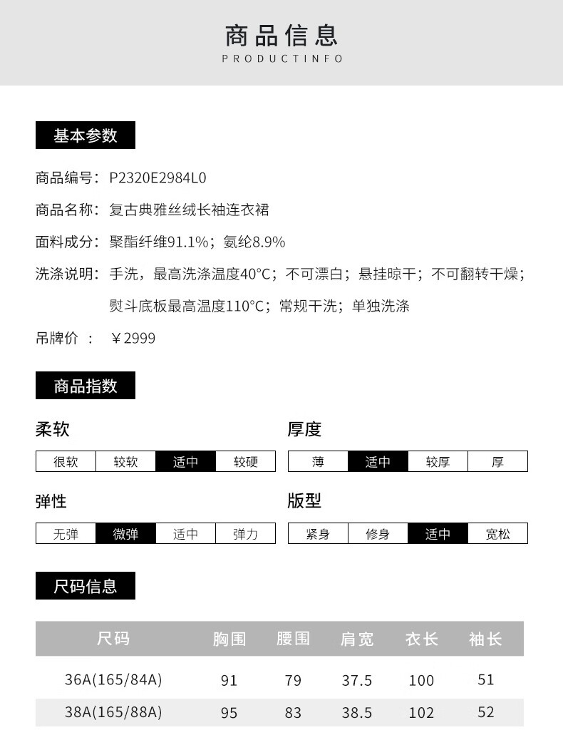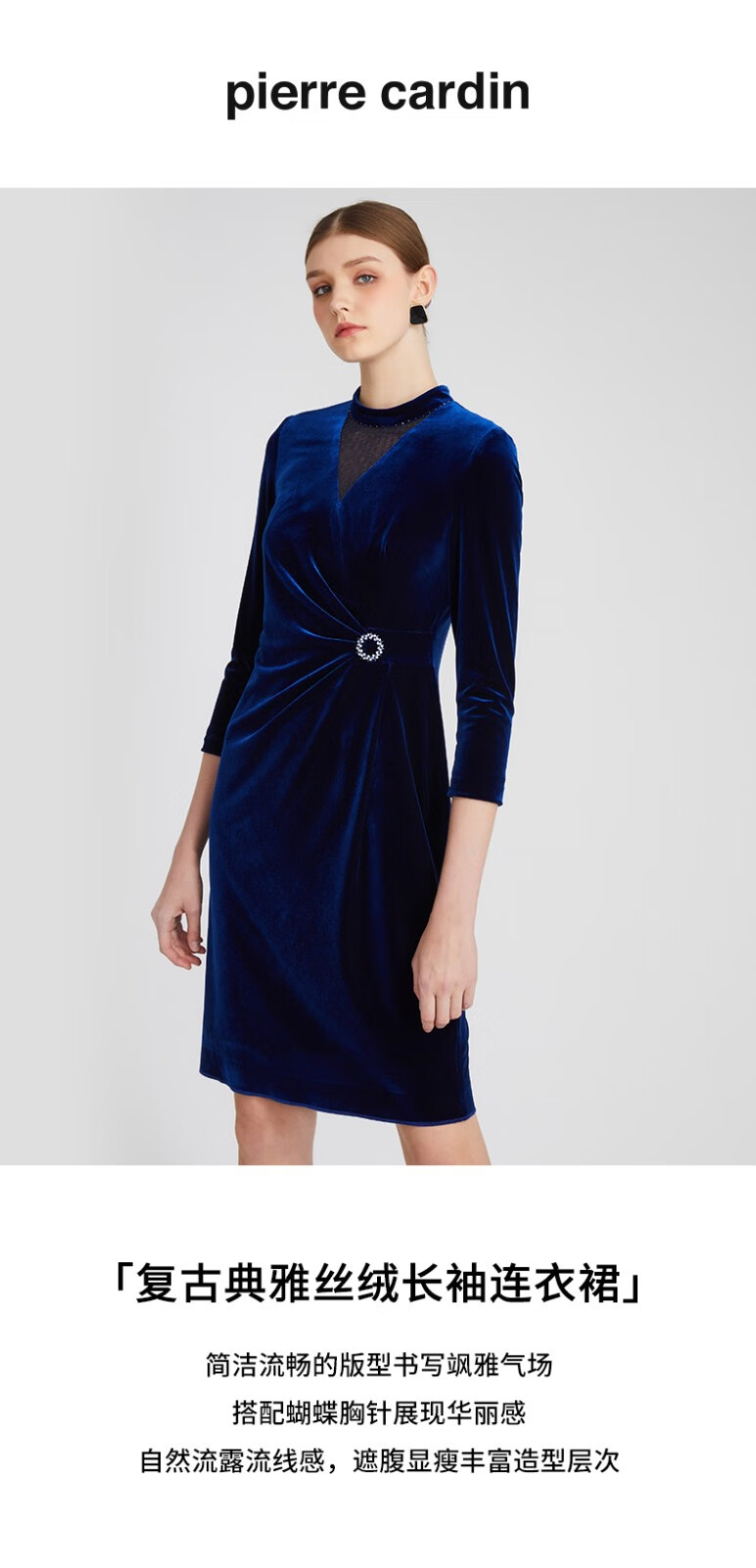皮尔卡丹女装秋新款复古典雅丝绒长袖连衣裙P2320E2984L0