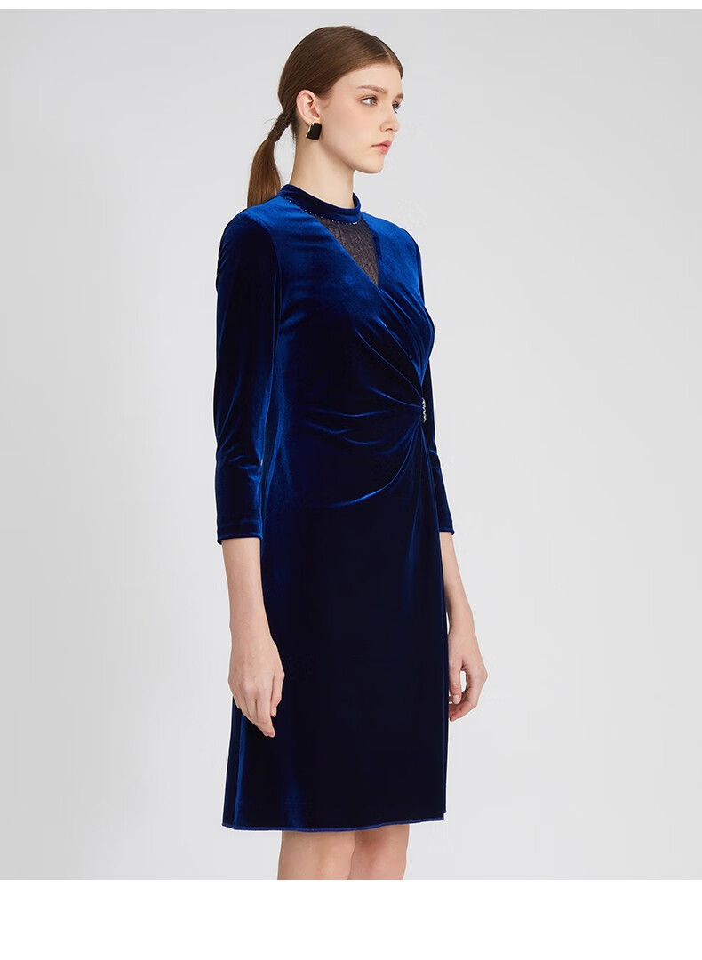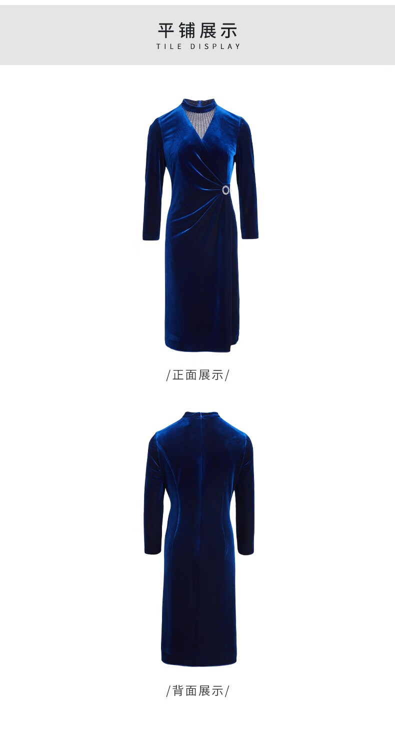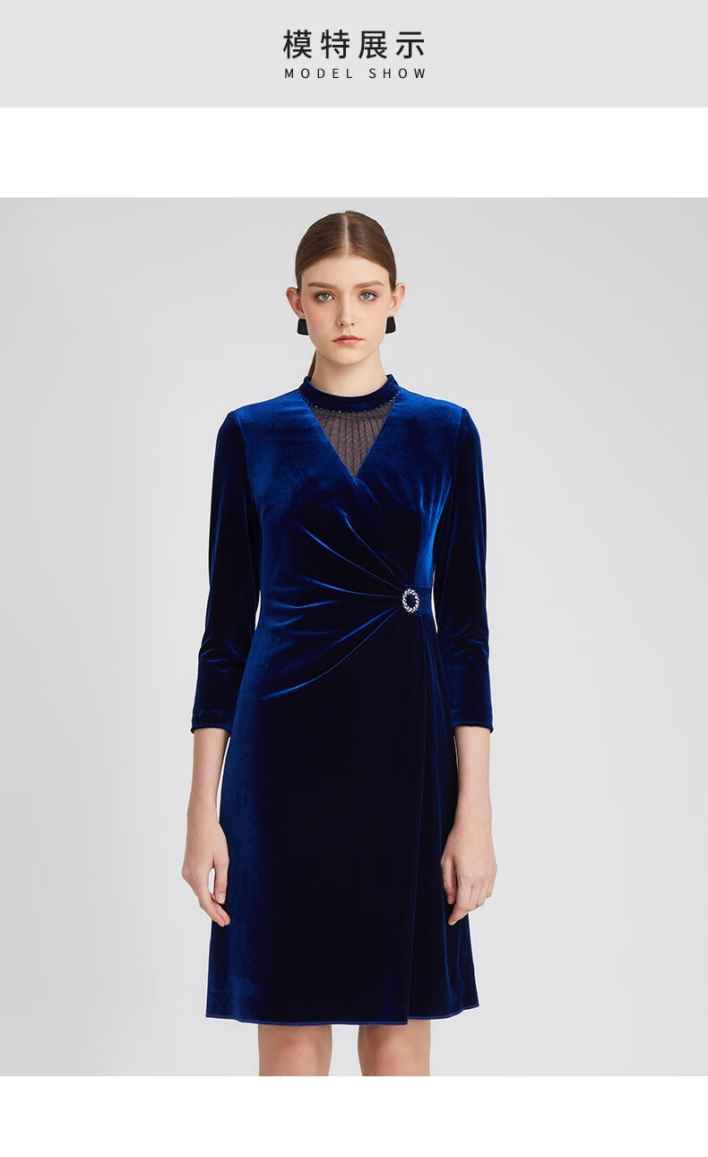 皮尔卡丹女装秋新款复古典雅丝绒长袖连衣裙P2320E2984L0