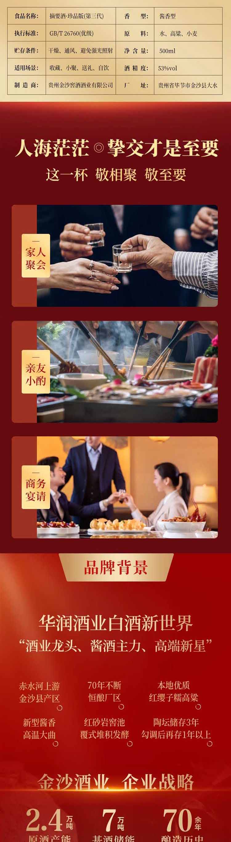摘要酒珍品版三代53度 酱香型白酒500mL 多规格任选【包邮直发】