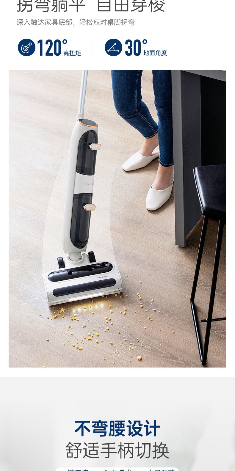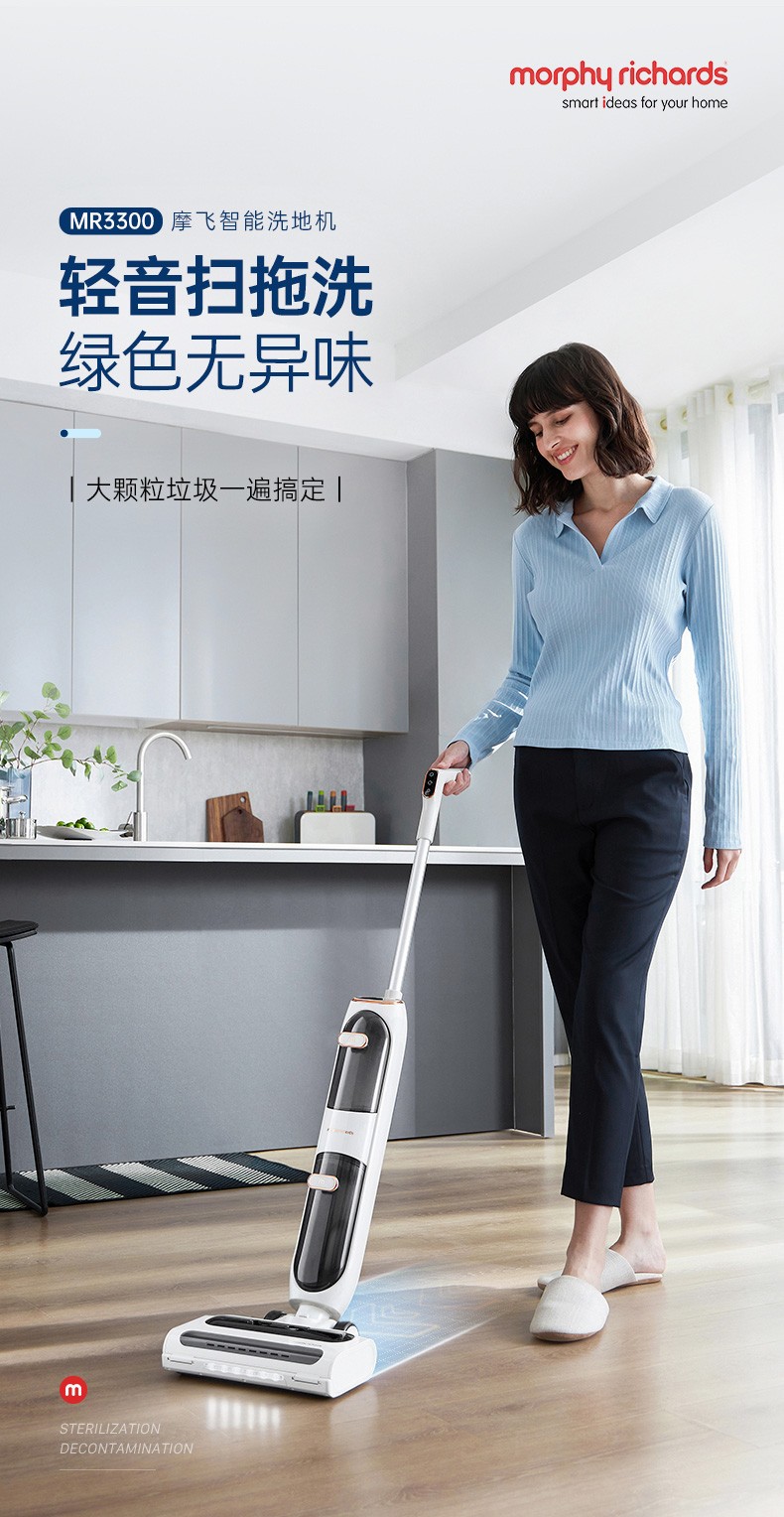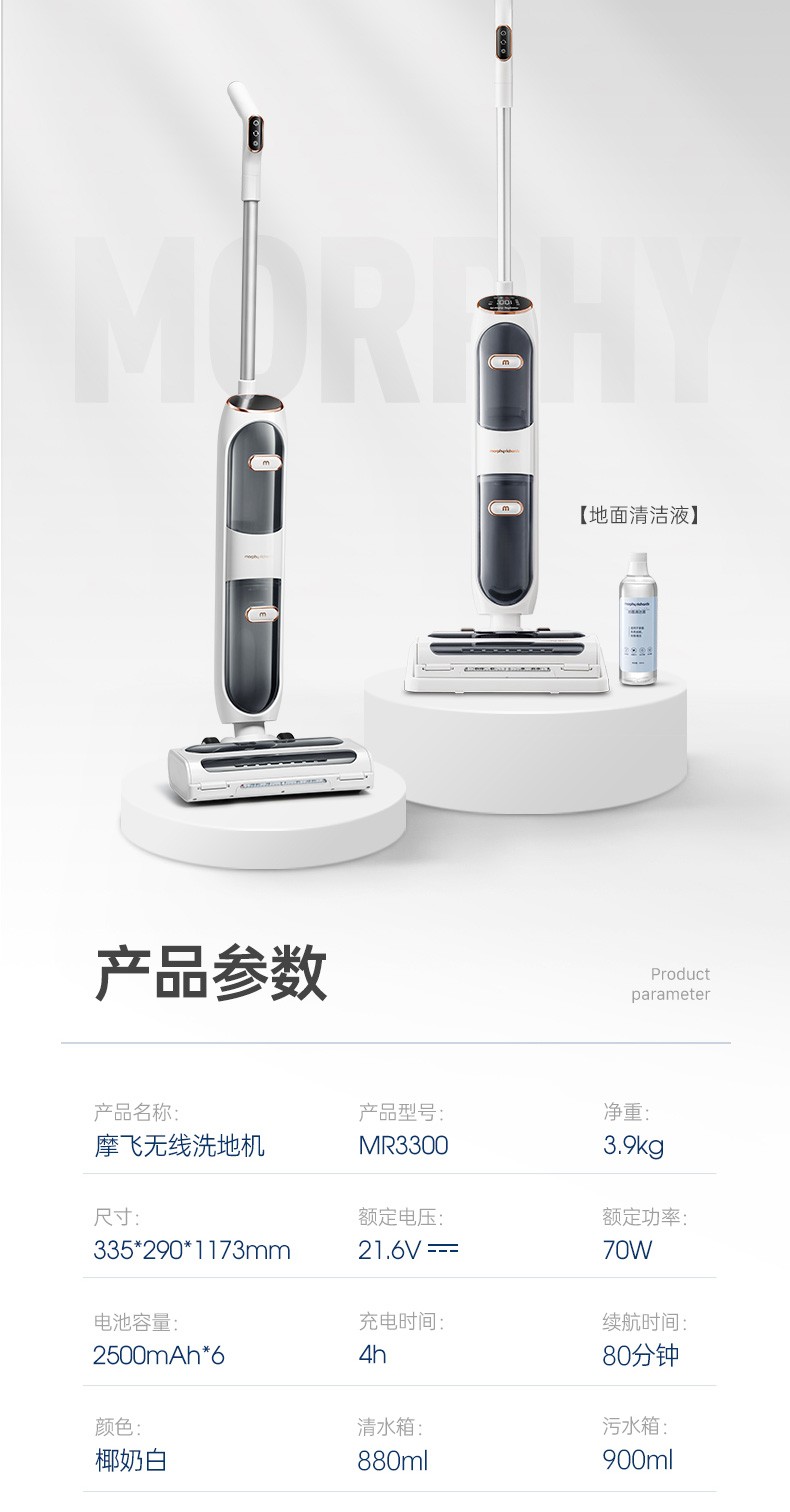 摩飞电器(Morphyrichards)洗地机 家用无线拖地机 智能洗吸拖一体扫地机 自动清洗吸地机器 电动拖把手持吸尘 MR3300 椰奶白