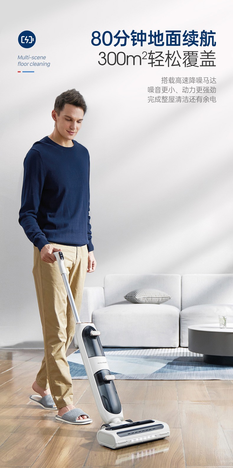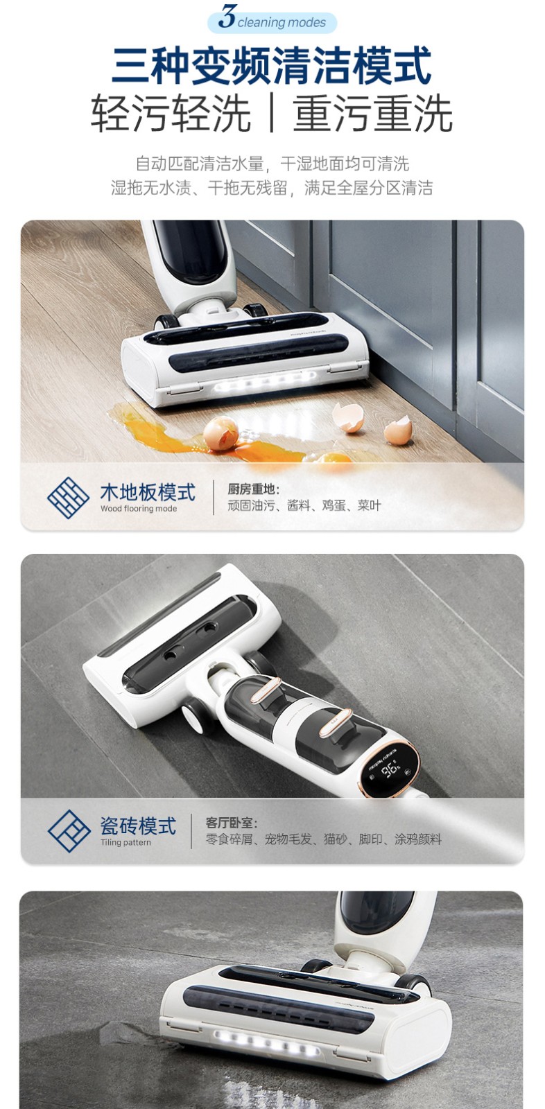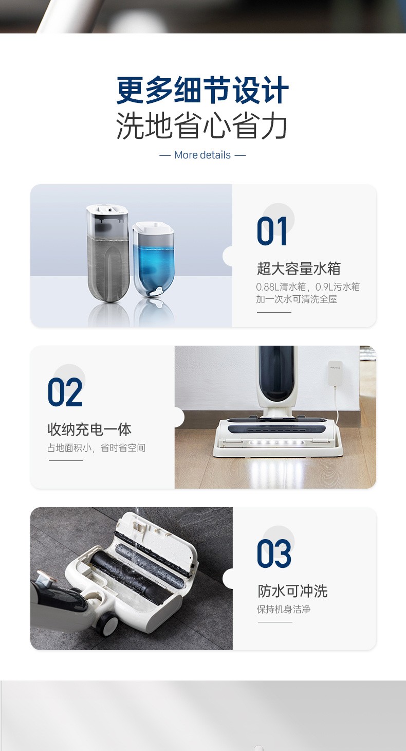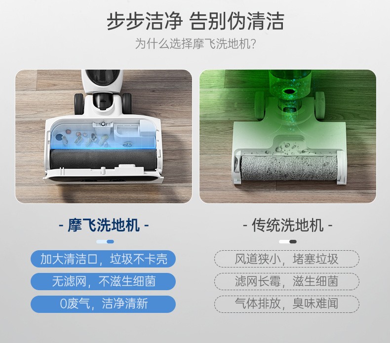 摩飞电器(Morphyrichards)洗地机 家用无线拖地机 智能洗吸拖一体扫地机 自动清洗吸地机器 电动拖把手持吸尘 MR3300 椰奶白