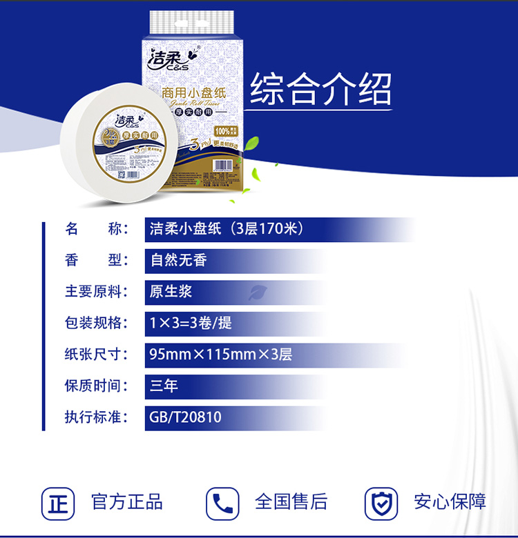 洁柔(C&S)大盘纸 商务3层700克或170米*12卷(商务卷纸 卫生间酒店餐厅擦手纸小盘纸)新老品交替发货