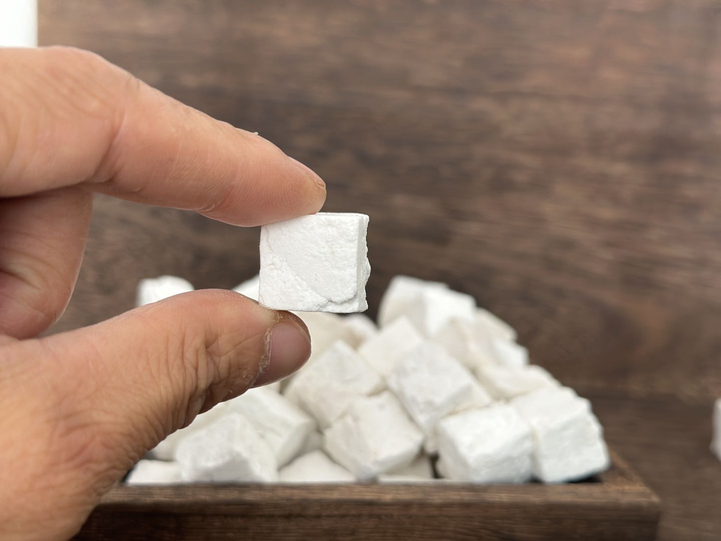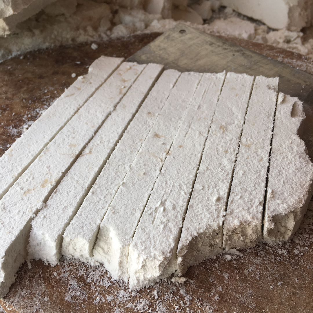 我们家做的是生切生晒,市面上基本卖熟切丁块的,因为好去掉皮,煮熟去削皮,但是这样获苓,营养作用大大打折扣❗