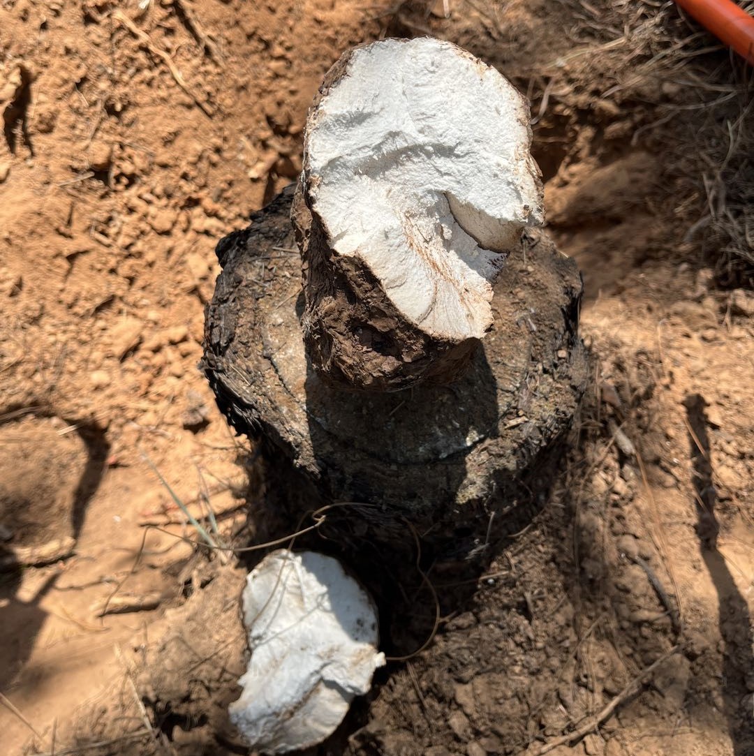 干枯腐烂的松树桩(活的松树是不会长茯苓的)