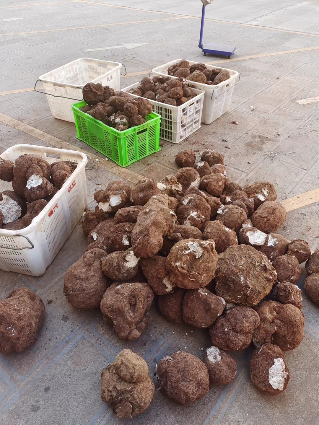 新鲜的获签形如甘薯,球状,外皮淡棕色或黑褐色,内部粉色或白色