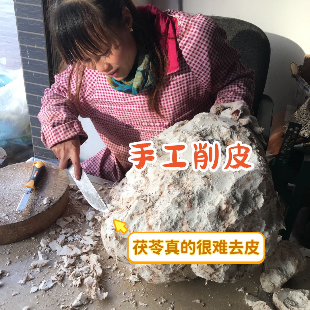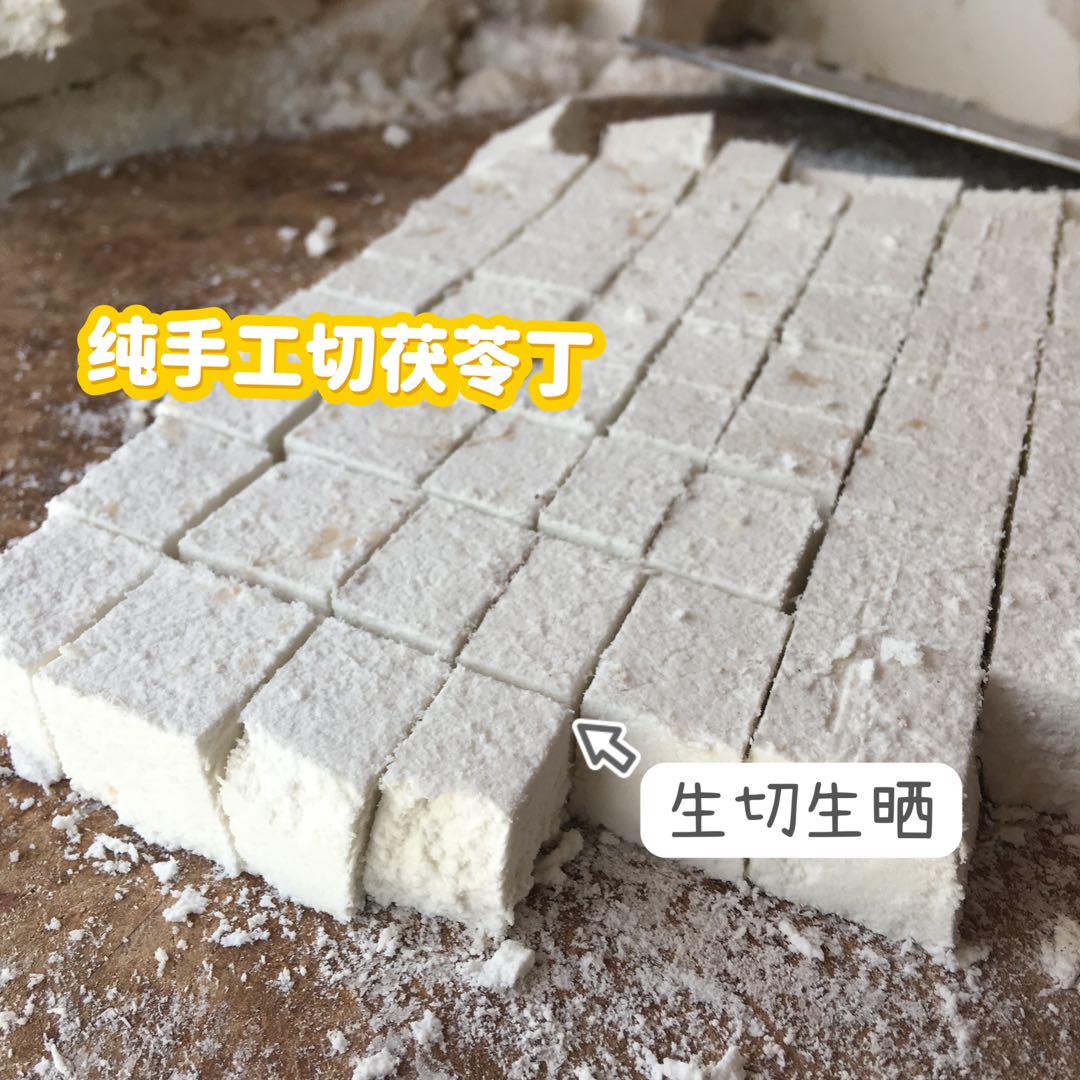 我们都是用老树下生长的大个茯苓进行切丁,这样的茯苓营养成分高。