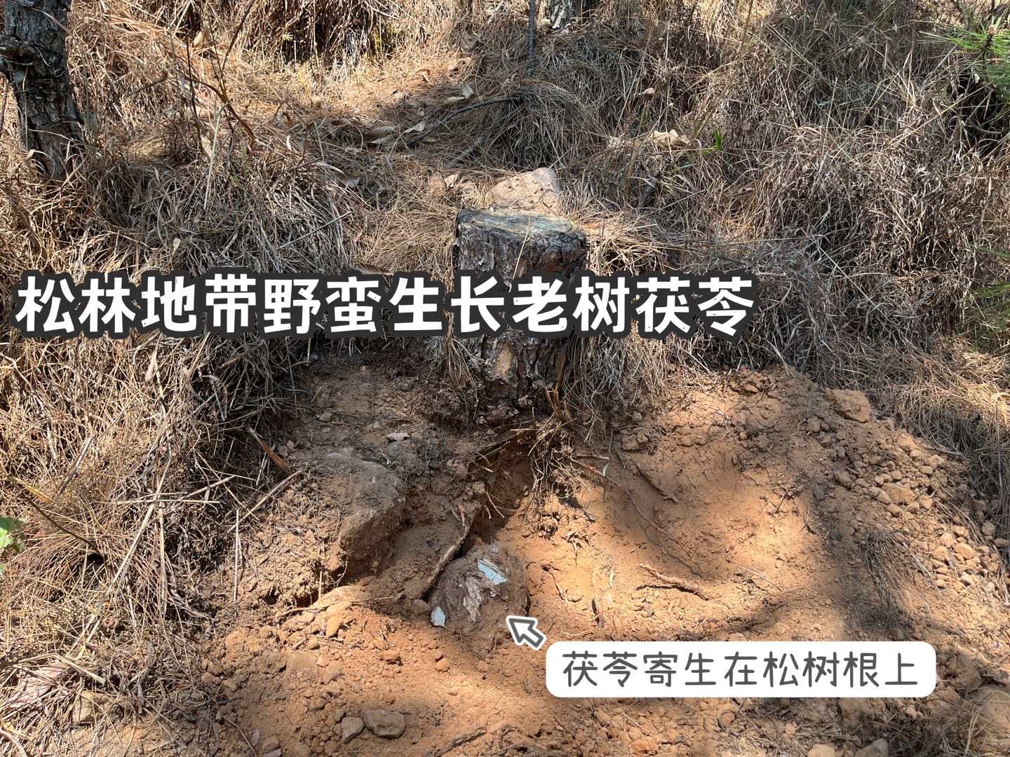 茯苓为真菌类,凡根下结苓之松树,叶必萎黄,或发红色,树桩周围地面有裂隙,敲之发出空响;松树附近地面有白色菌丝,此即松之精气凝聚结苓之兆,且小雨后树桩周围干燥得快,或有不长草的地方,土人望而知为有苓,这是多年积累采药的经验。遇到如此上品的茯苓也是可遇不可求的。