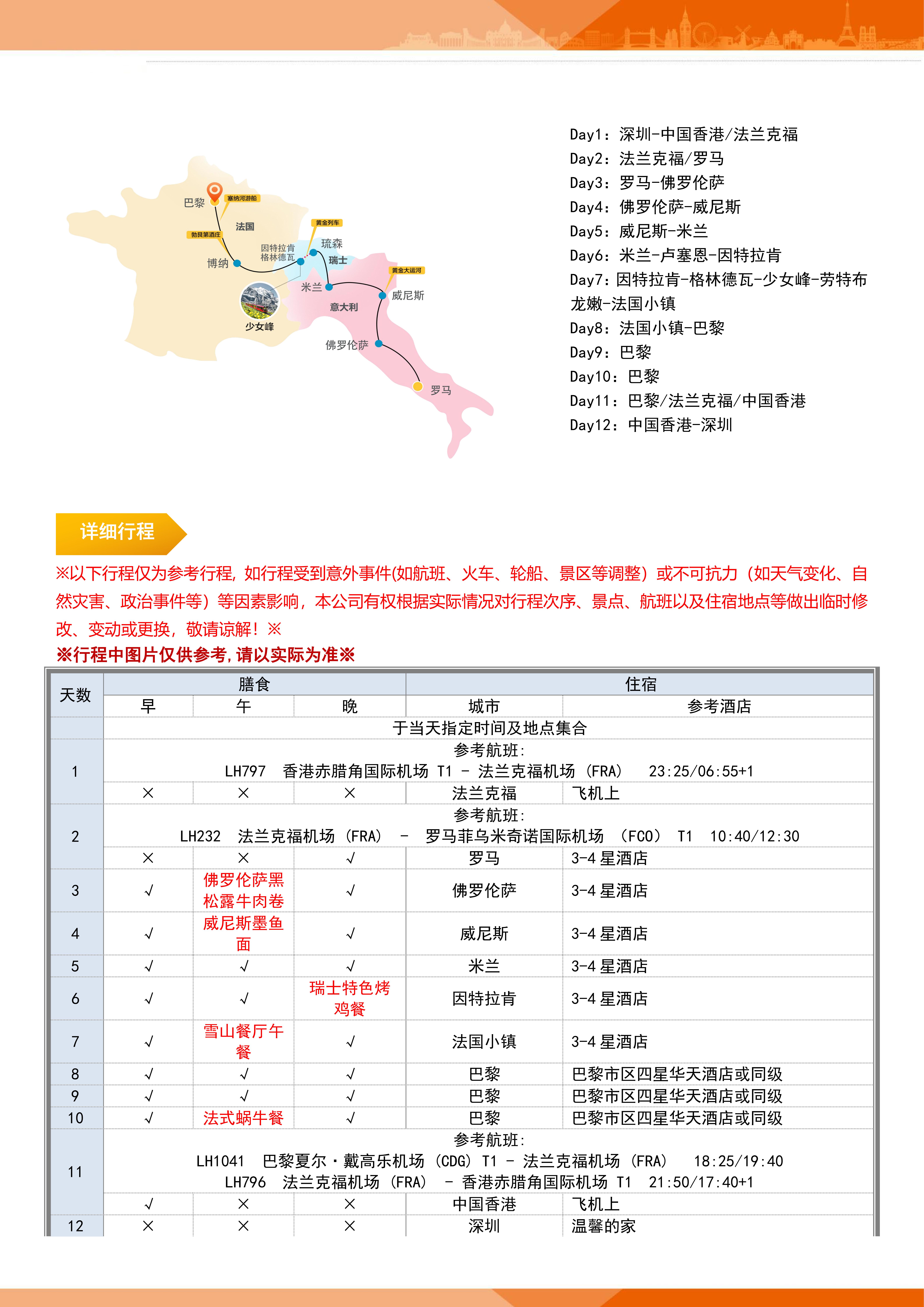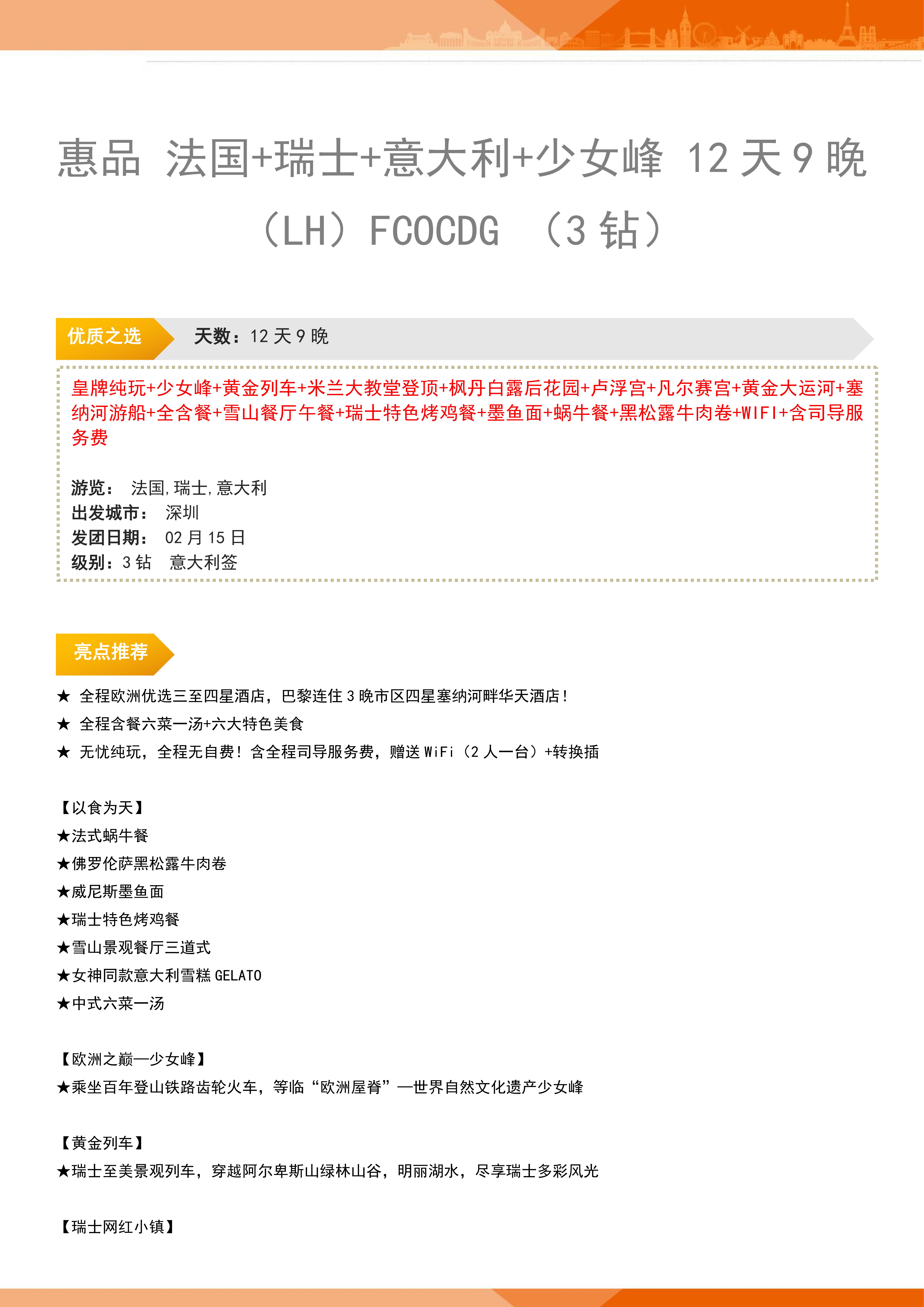 【春节】<法国+瑞士+意大利+少女峰12天-深圳起止>黄金列车+米兰大教堂登顶+枫丹白露后花园+卢浮宫+凡尔赛宫+黄金大运河+塞 纳河游船+全含餐