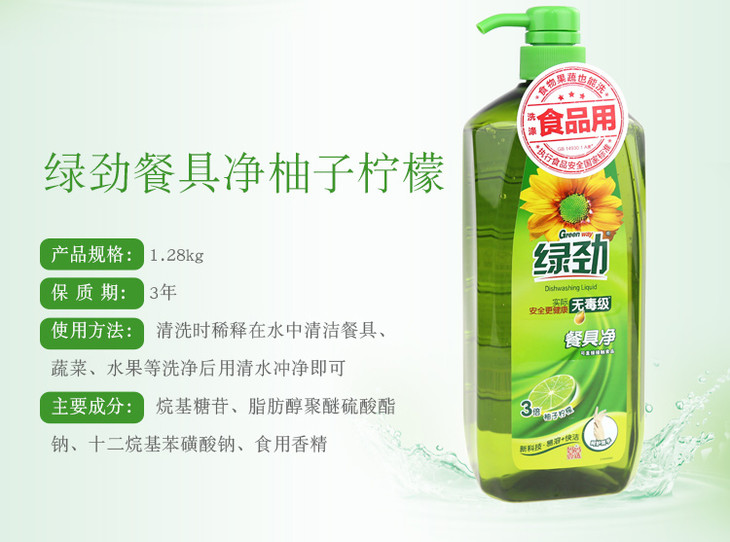 【亚欧超市】威露士绿劲妈妈壹选新一代餐具净天然柠檬草1.28kg