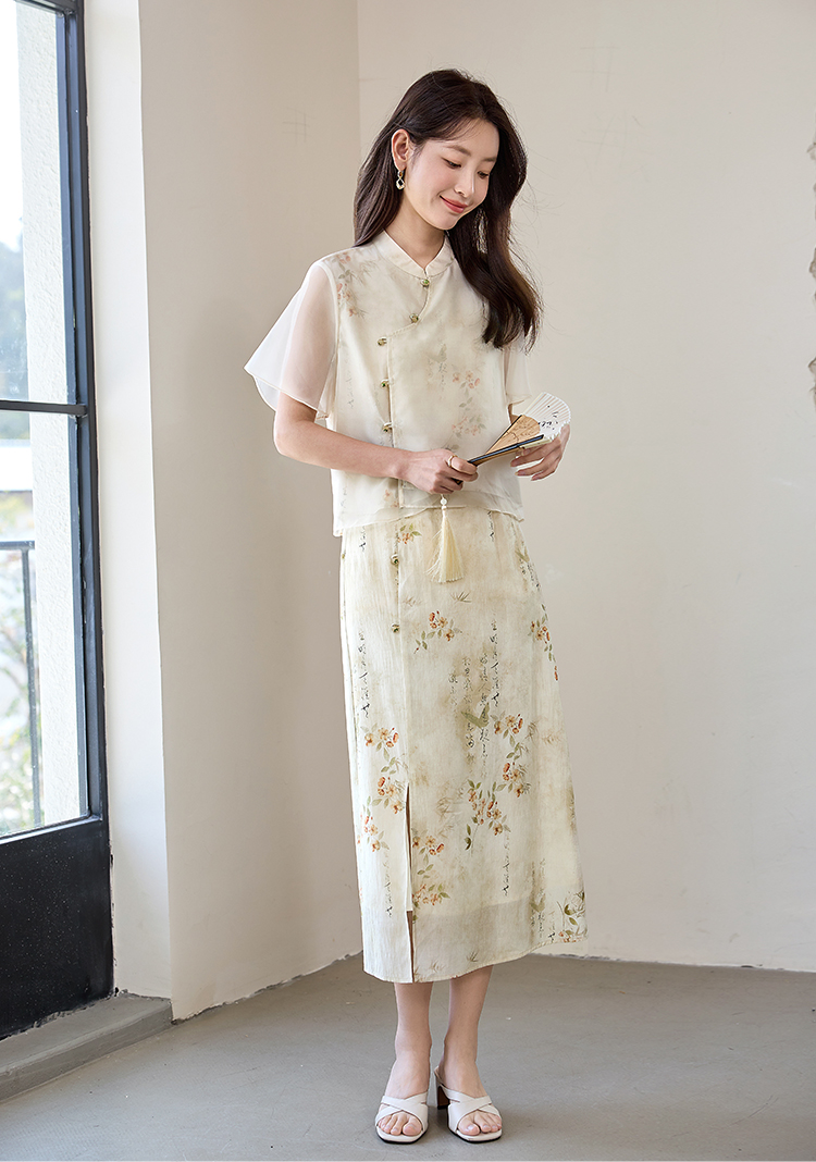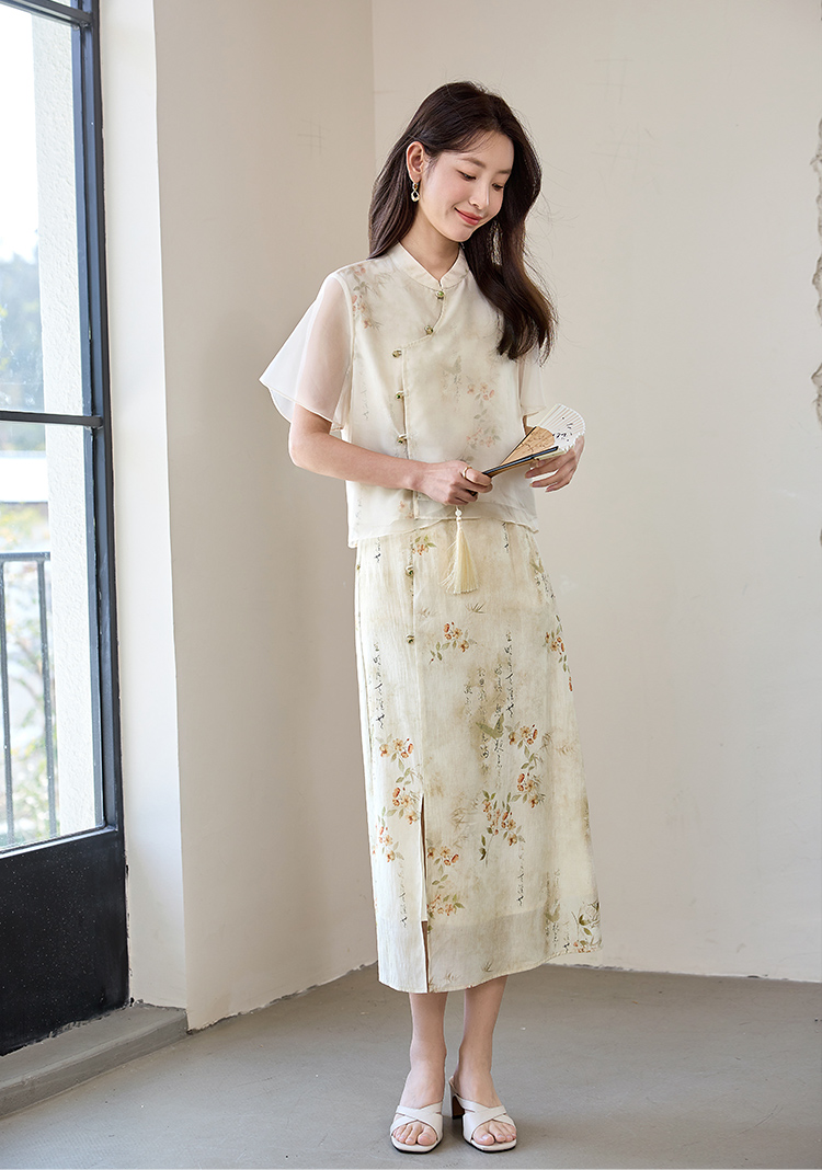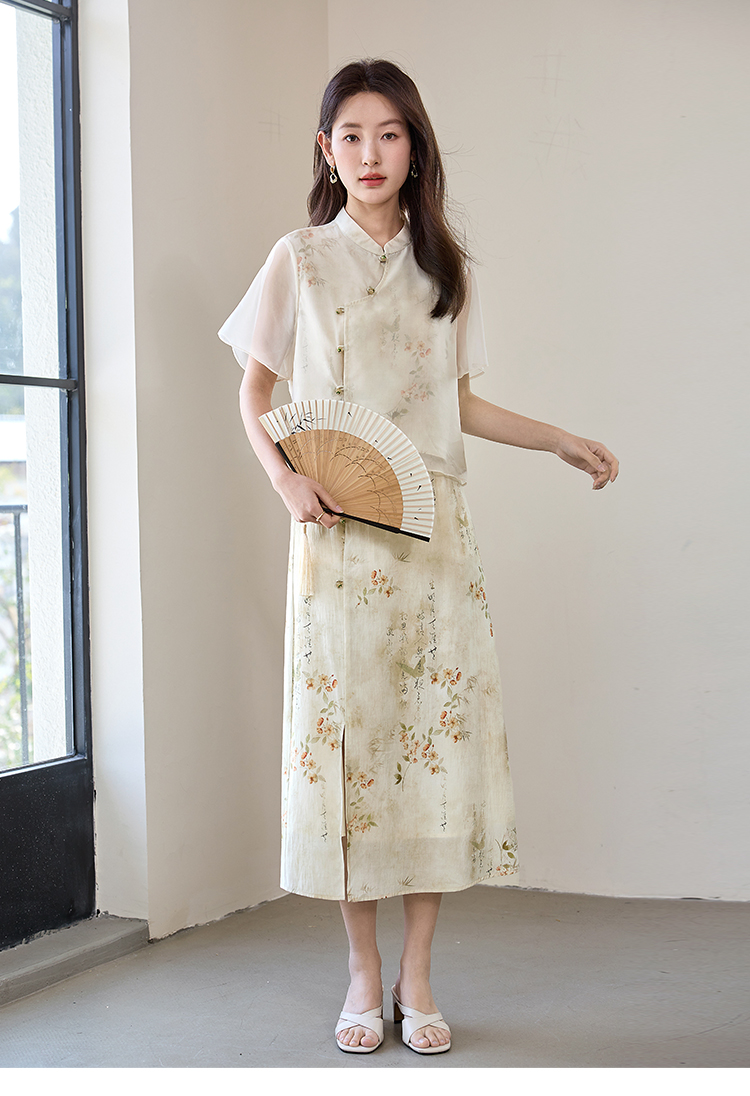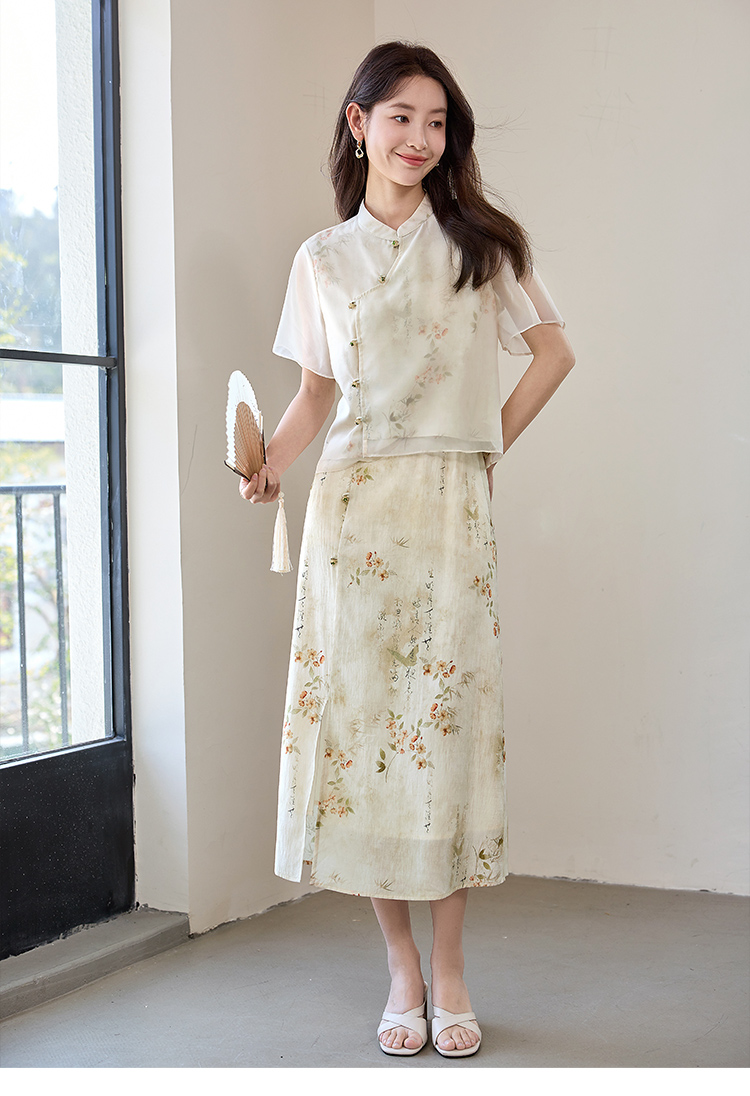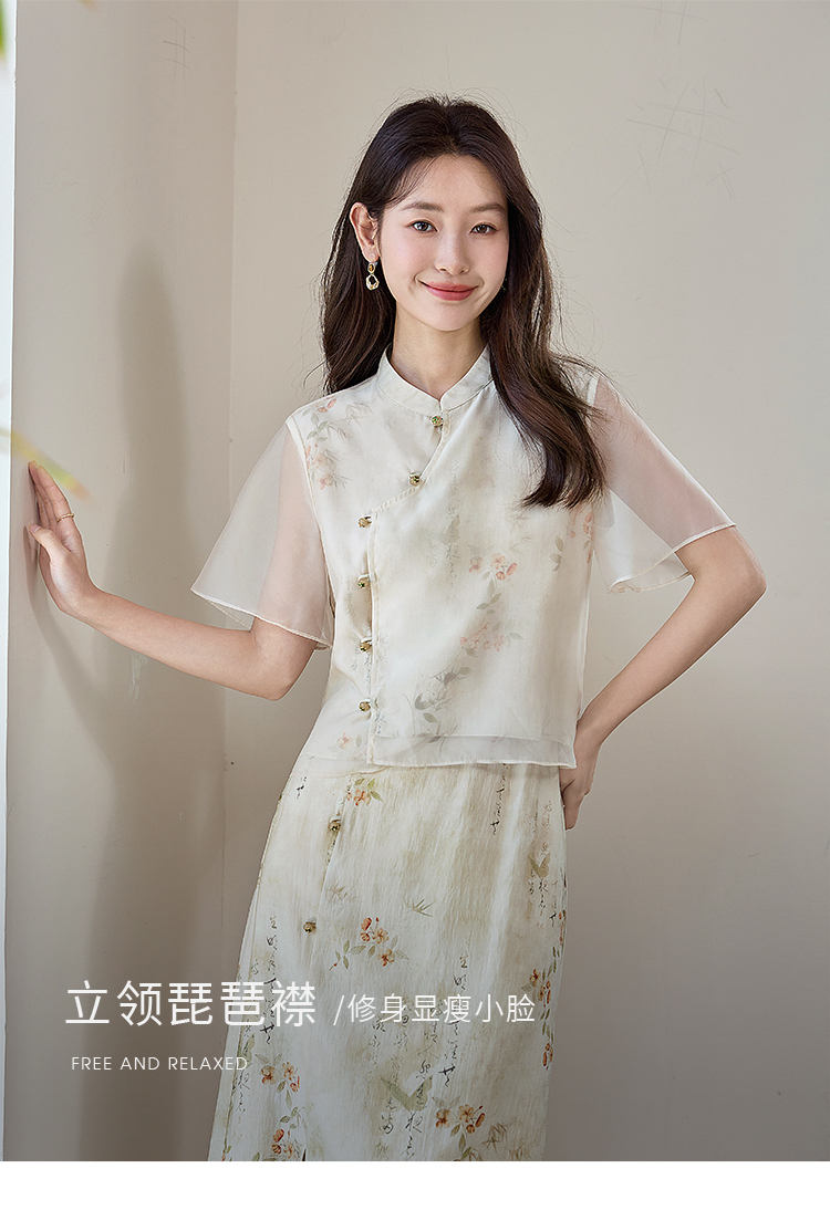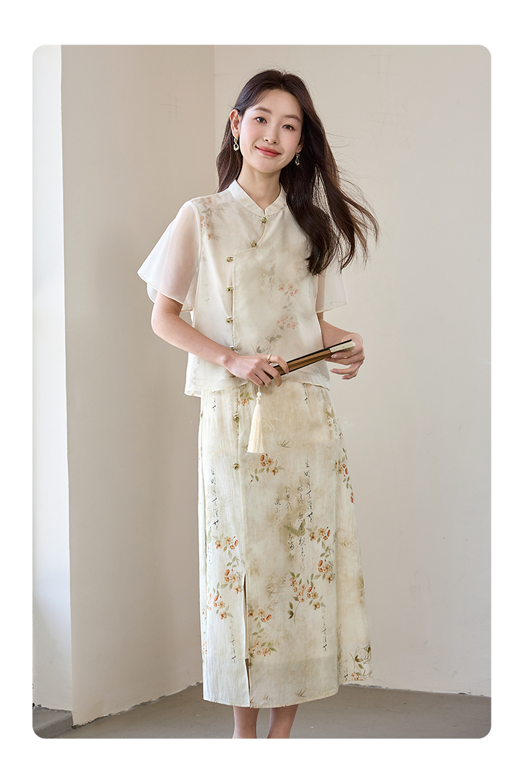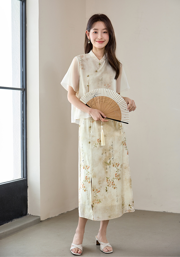 【专属特价】熙世界国风套装女2025新款夏改良新中式碎花上衣半身裙子两件套