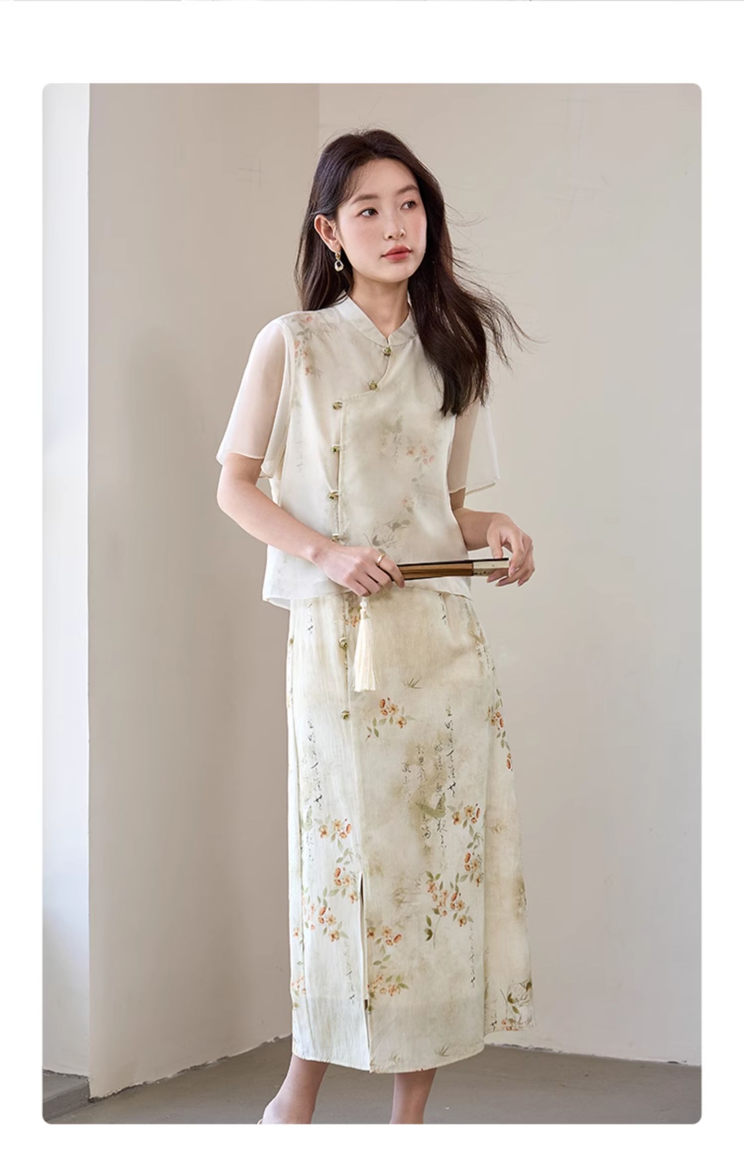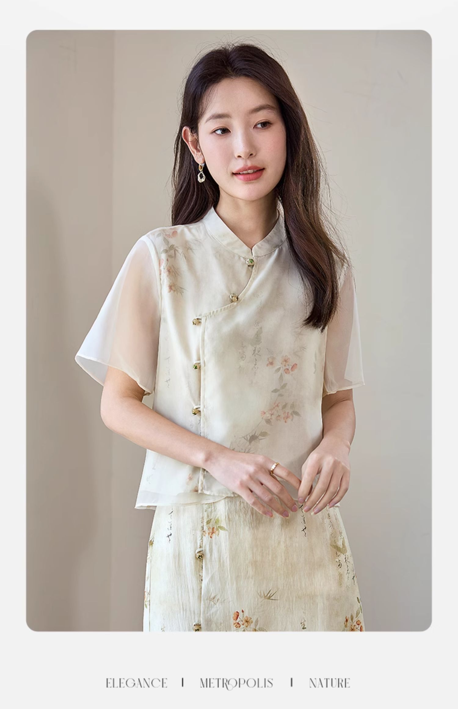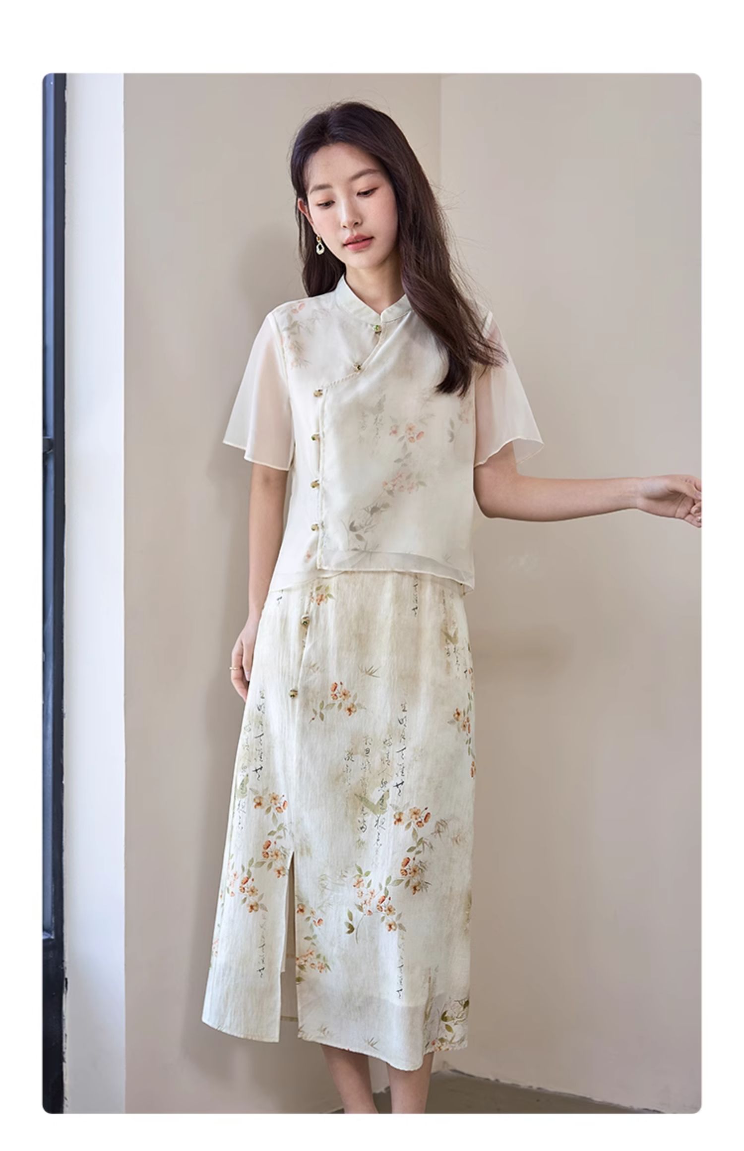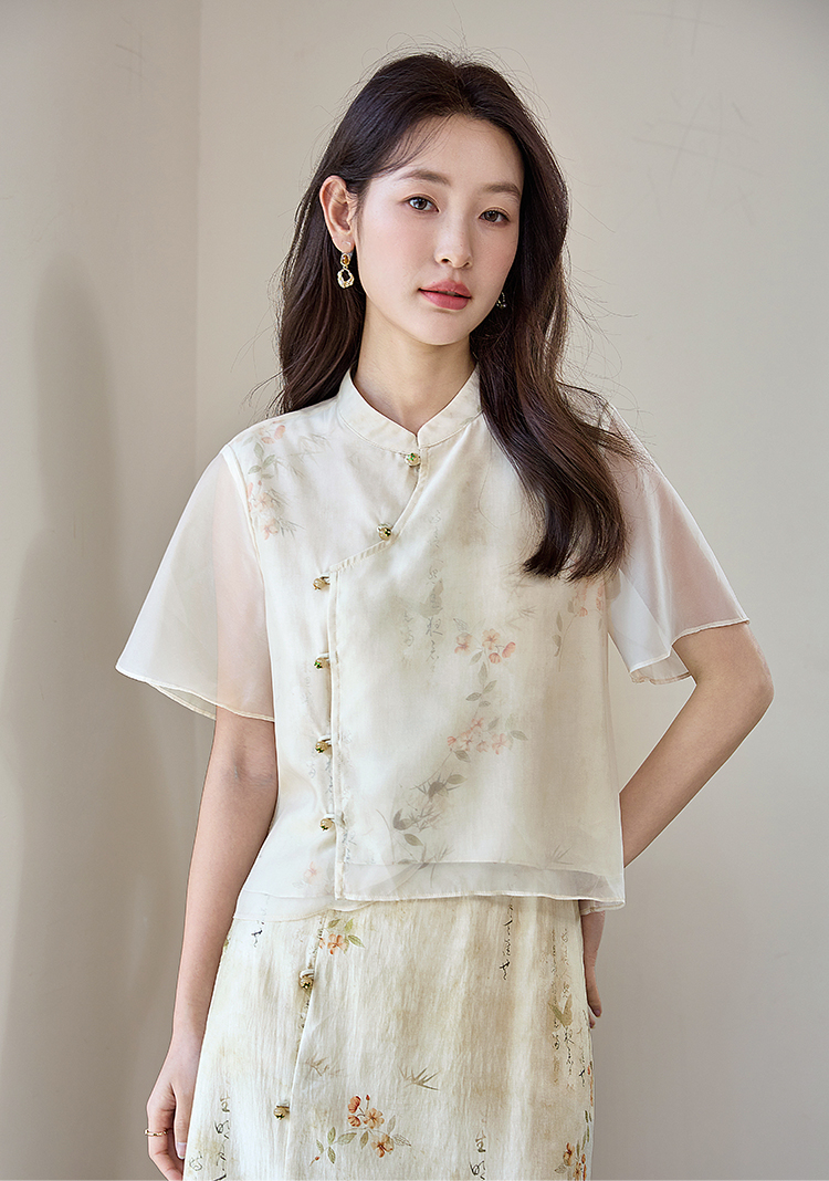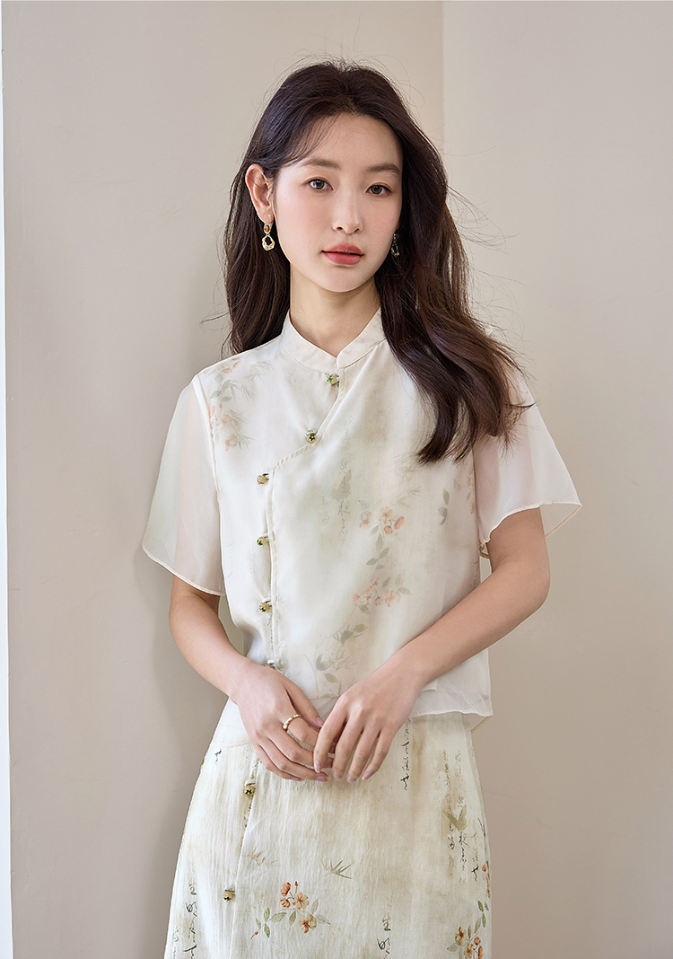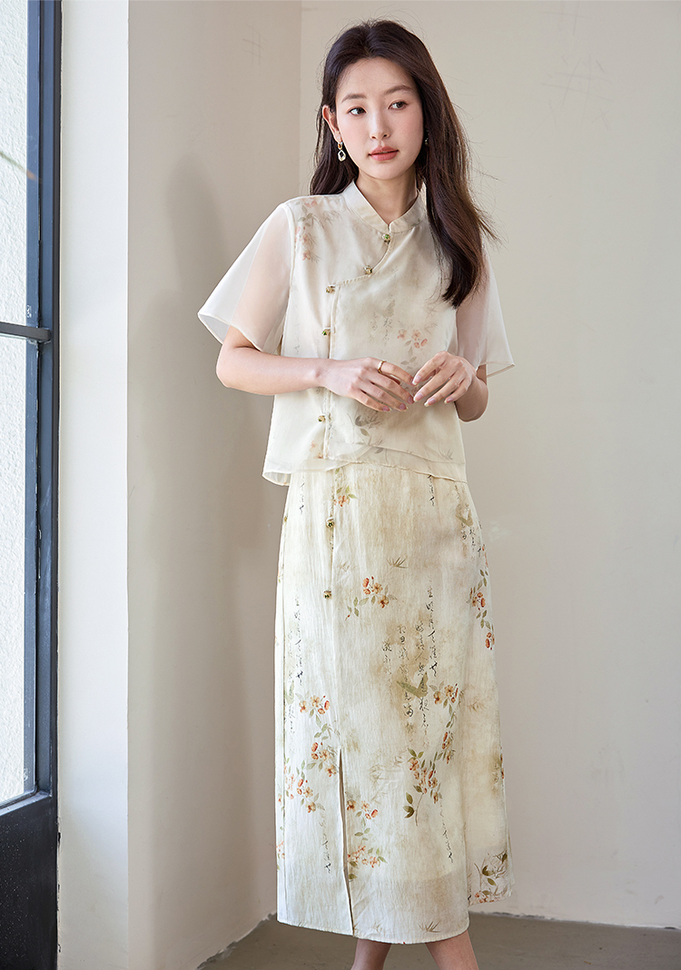 【专属特价】熙世界国风套装女2025新款夏改良新中式碎花上衣半身裙子两件套