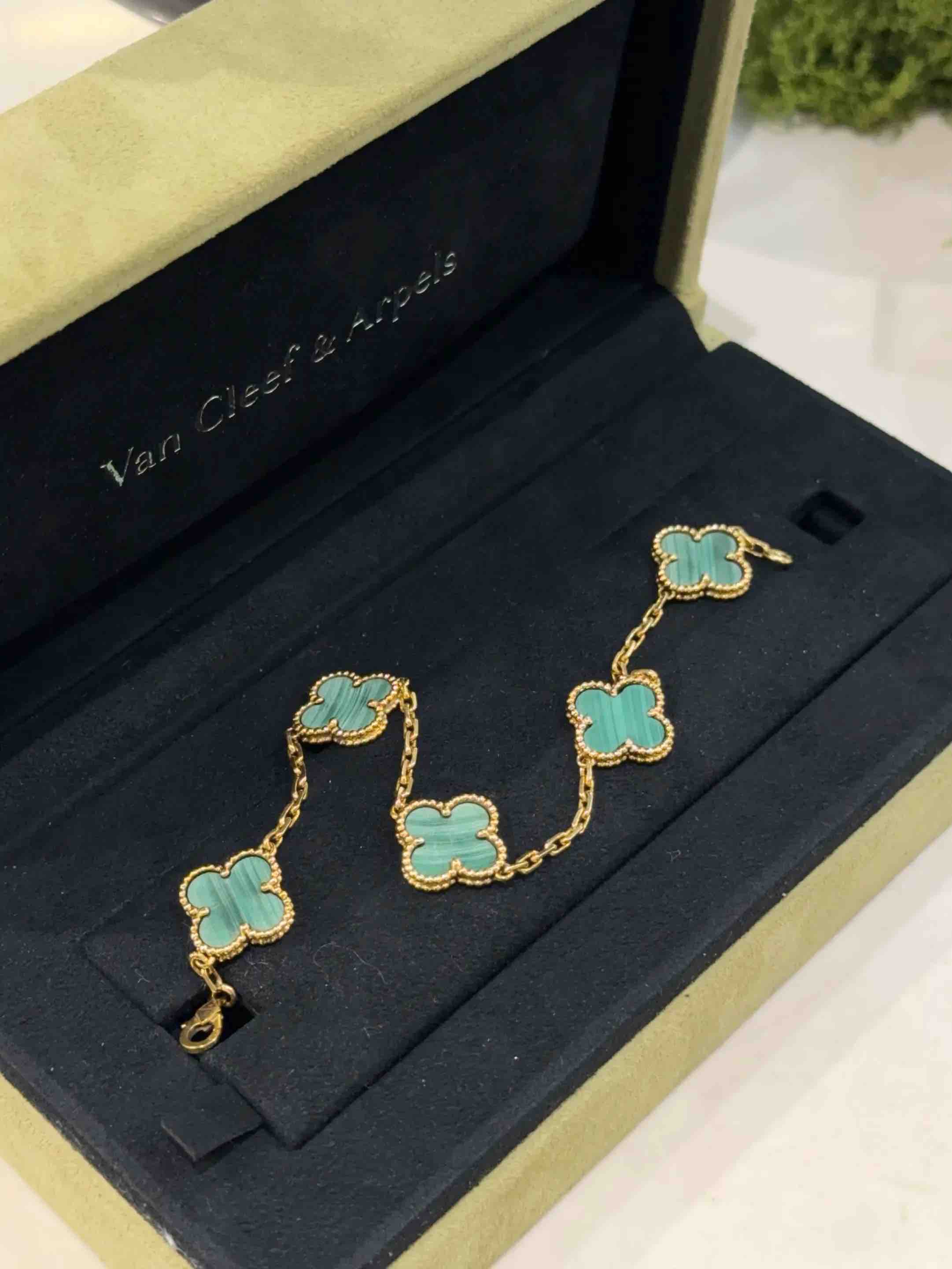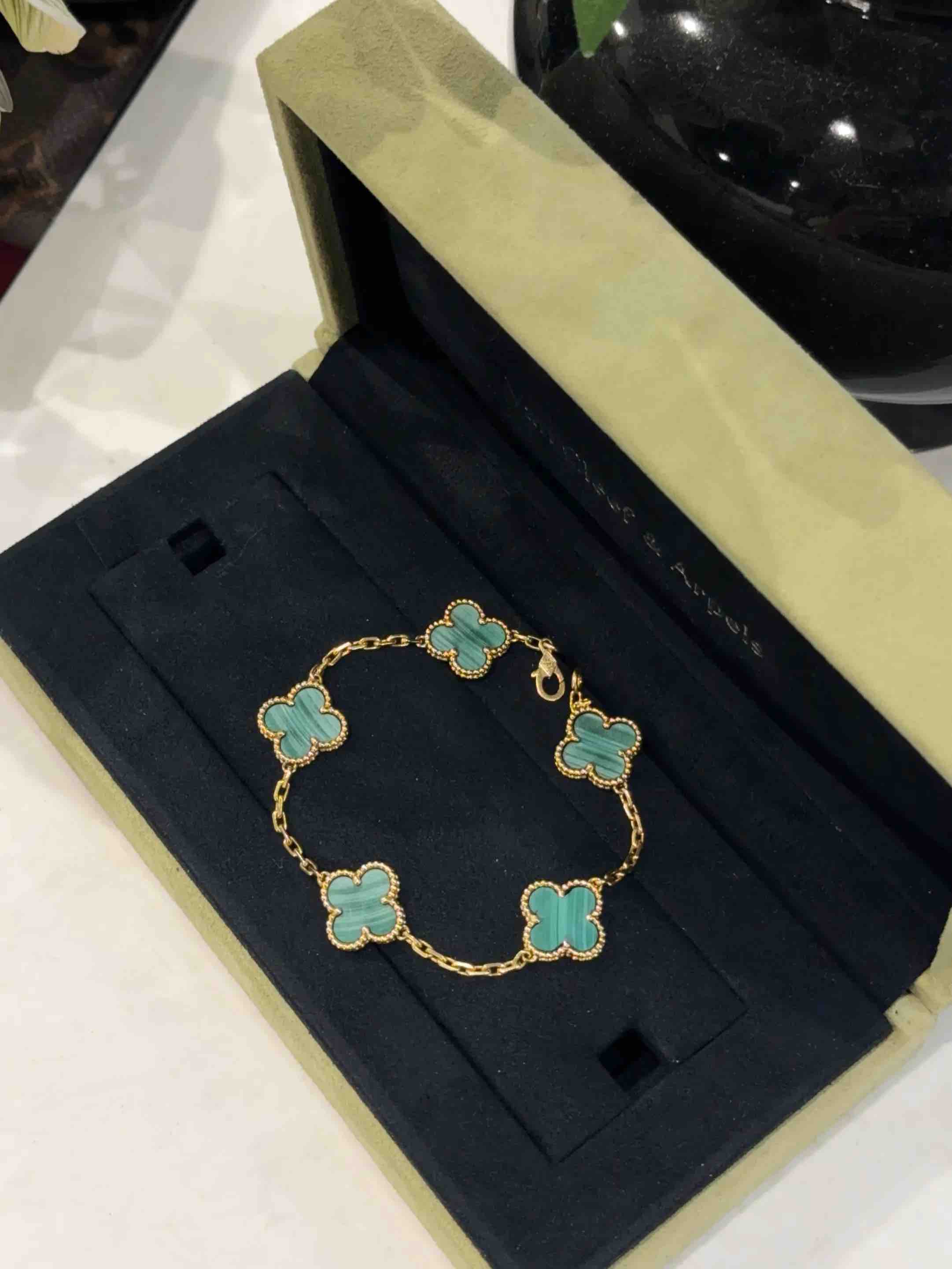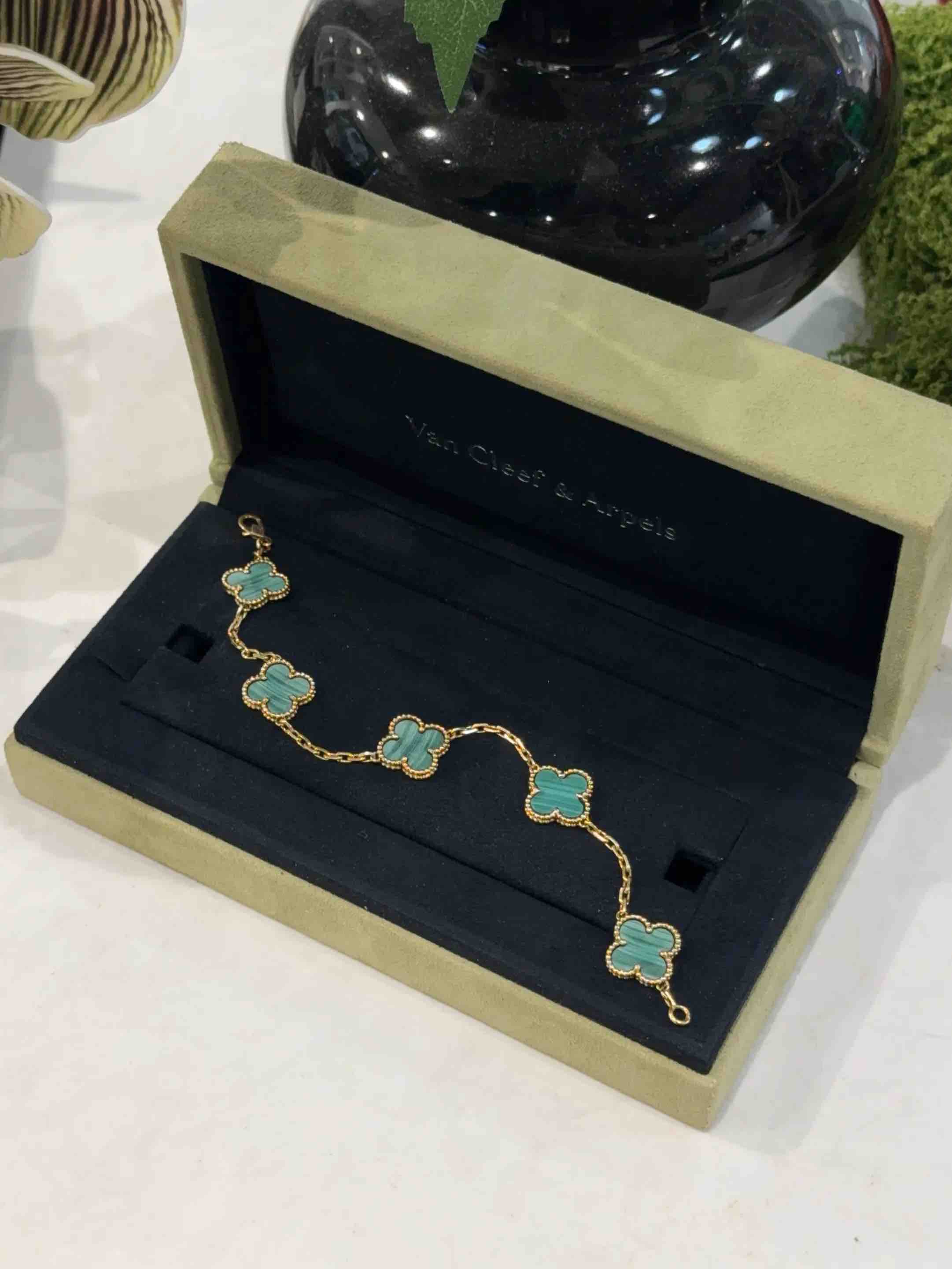【商品详情】正品二手 梵克雅宝 五花 孔雀石 手链👋95新 19cm 配件:盒子。金属正常使用感。平衡情绪 事业加持