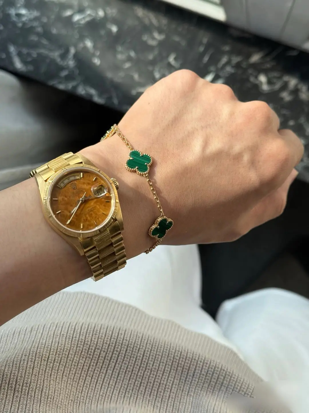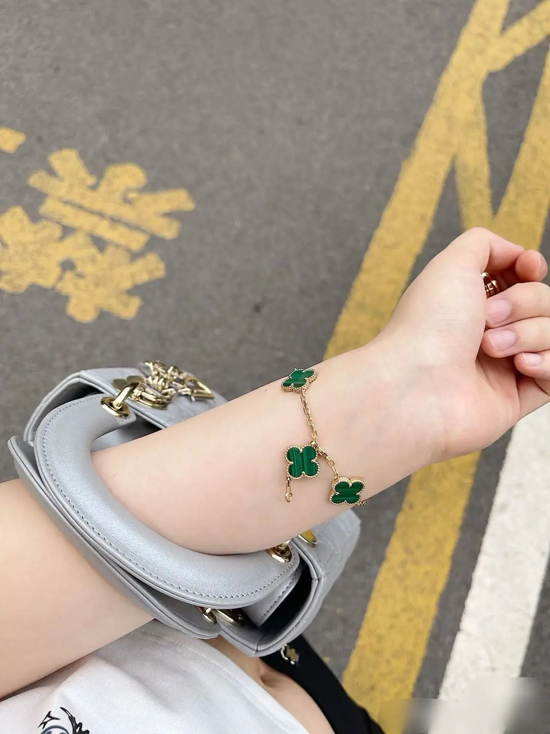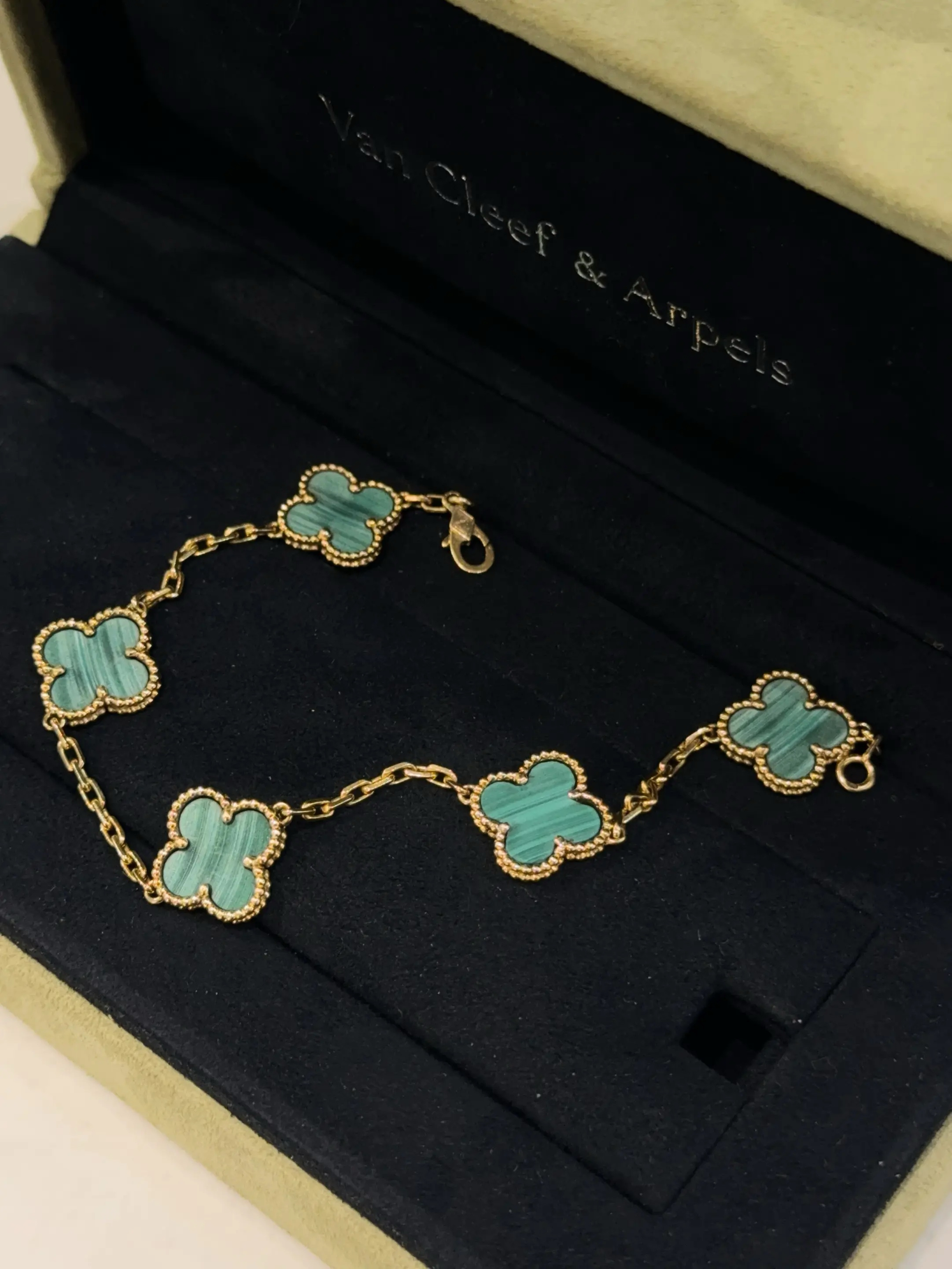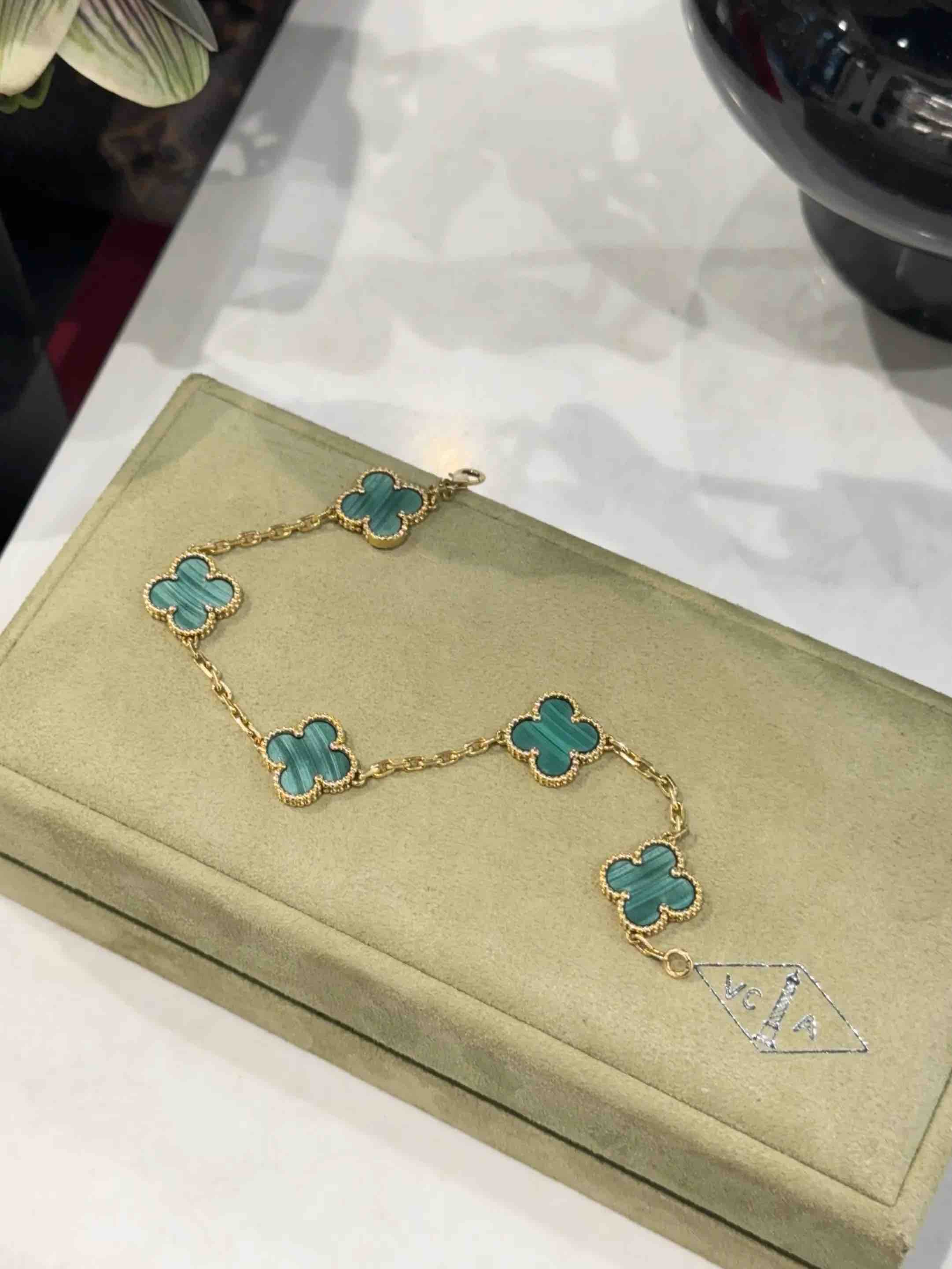 【商品详情】正品二手 梵克雅宝 五花 孔雀石 手链👋95新 19cm 配件:盒子。金属正常使用感。平衡情绪 事业加持