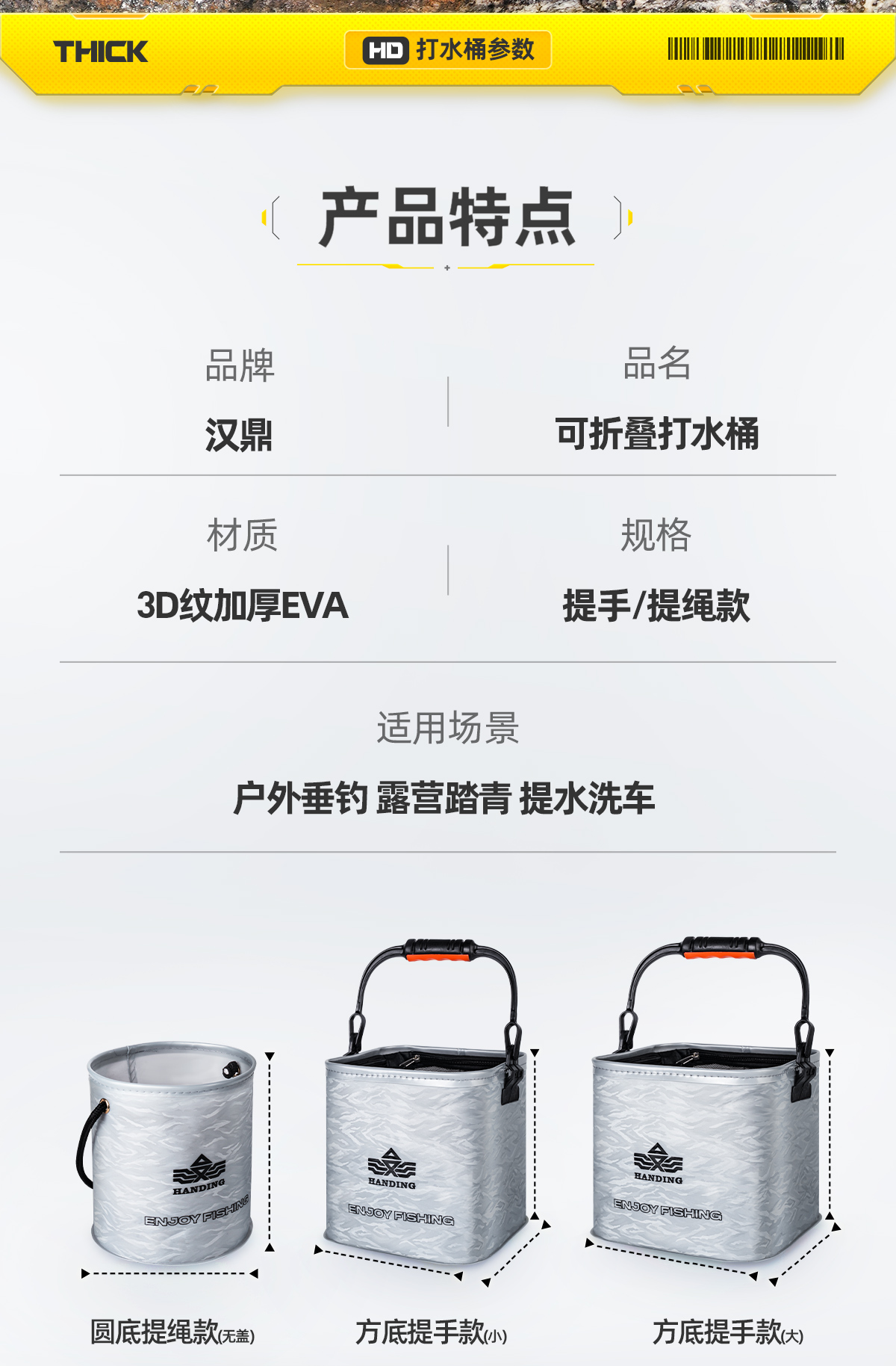 汉鼎可折叠打水桶户外带盖钓鱼大号鱼箱多功能水桶装鱼野钓活鱼桶