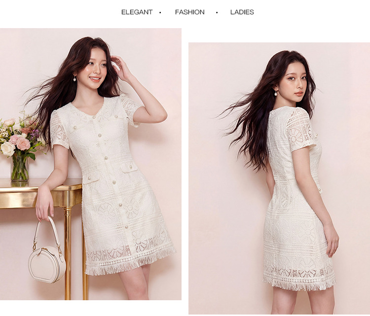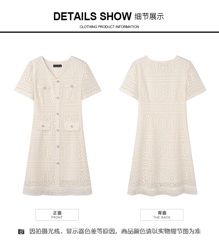 奢姿大码女装2026夏季镂空蕾丝气质连衣裙胖妹妹V领设计时尚裙子9962860046