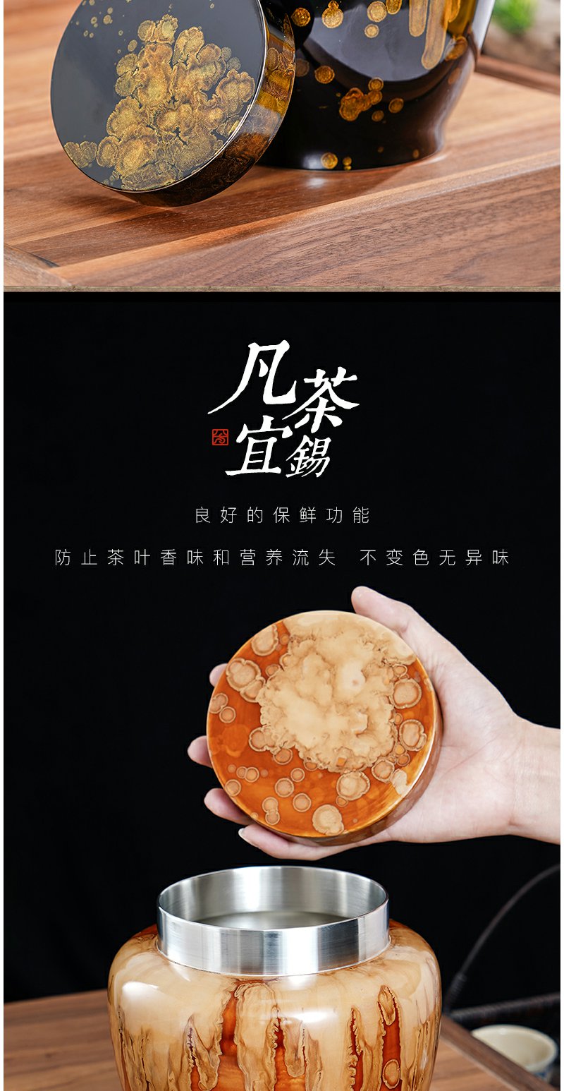 斑锡龙大漆锡罐秋实茶仓锡茶叶罐大号手工大口密封罐个旧锡器