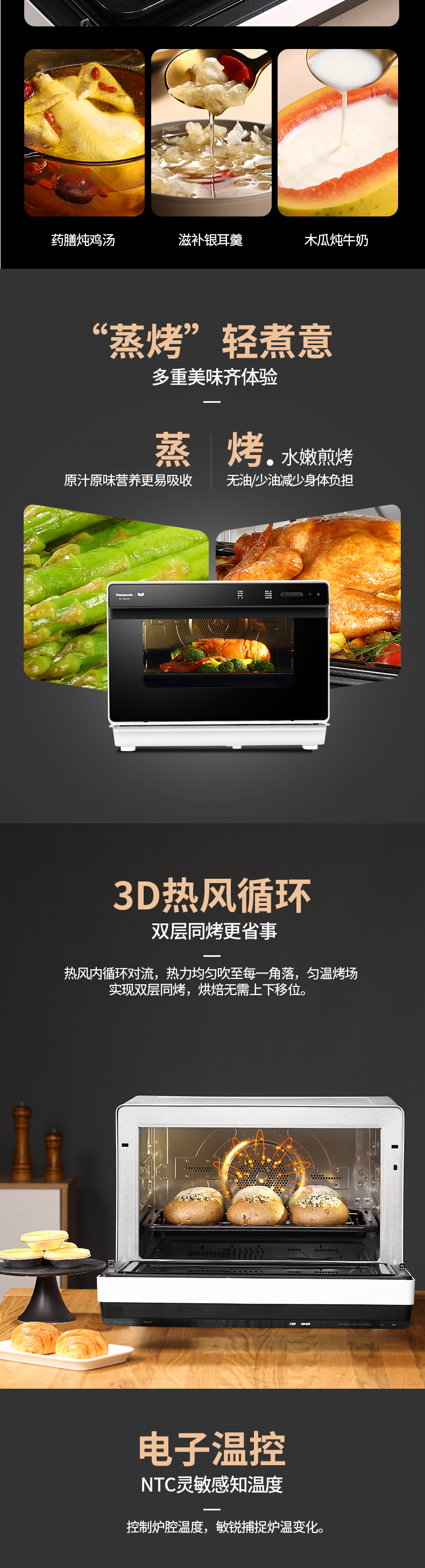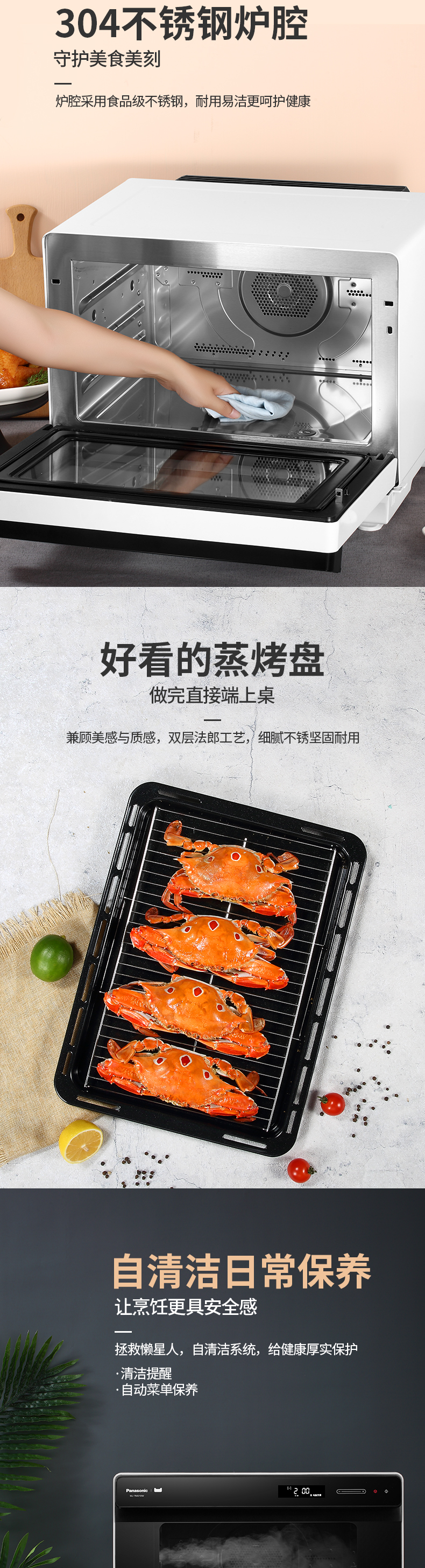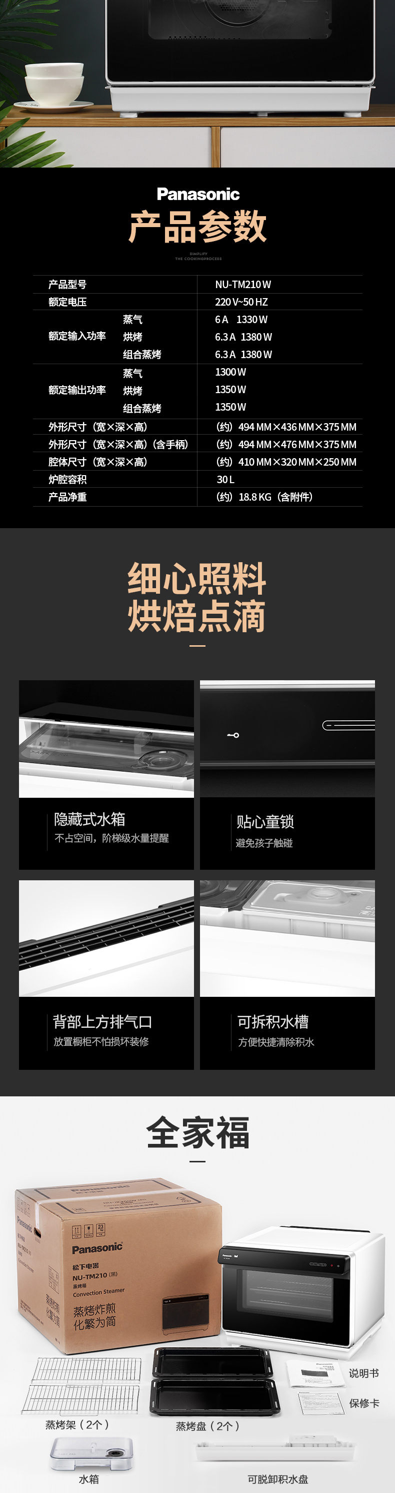 松下(Panasonic) 蒸烤箱电烤箱NU-TM210W家用蒸烤箱一体机多功能蒸汽烤箱大容量智能电烤箱蒸烤一体机 NU-TM210W