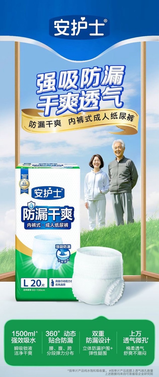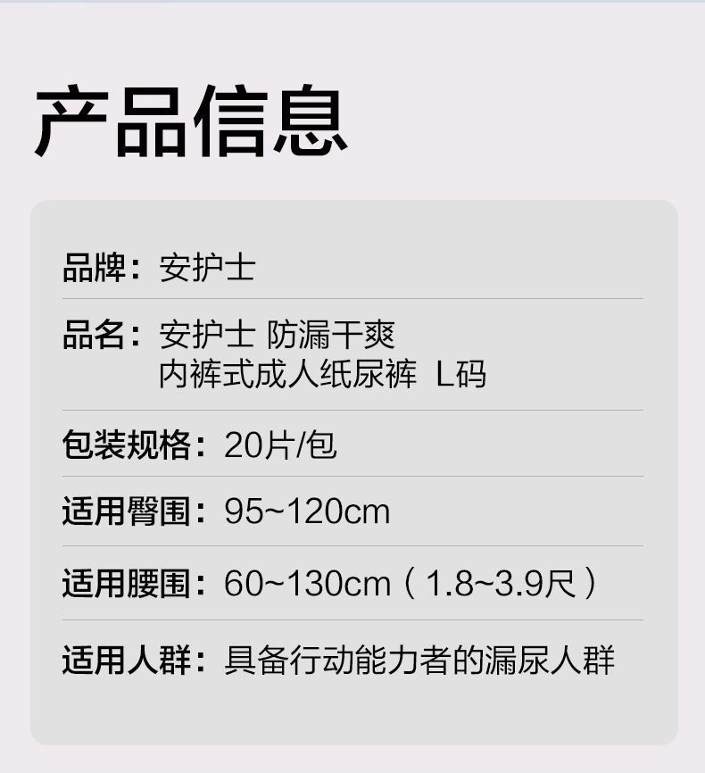 【安护士防漏干爽拉拉裤 单包】 双重防漏拉拉裤 M/L码