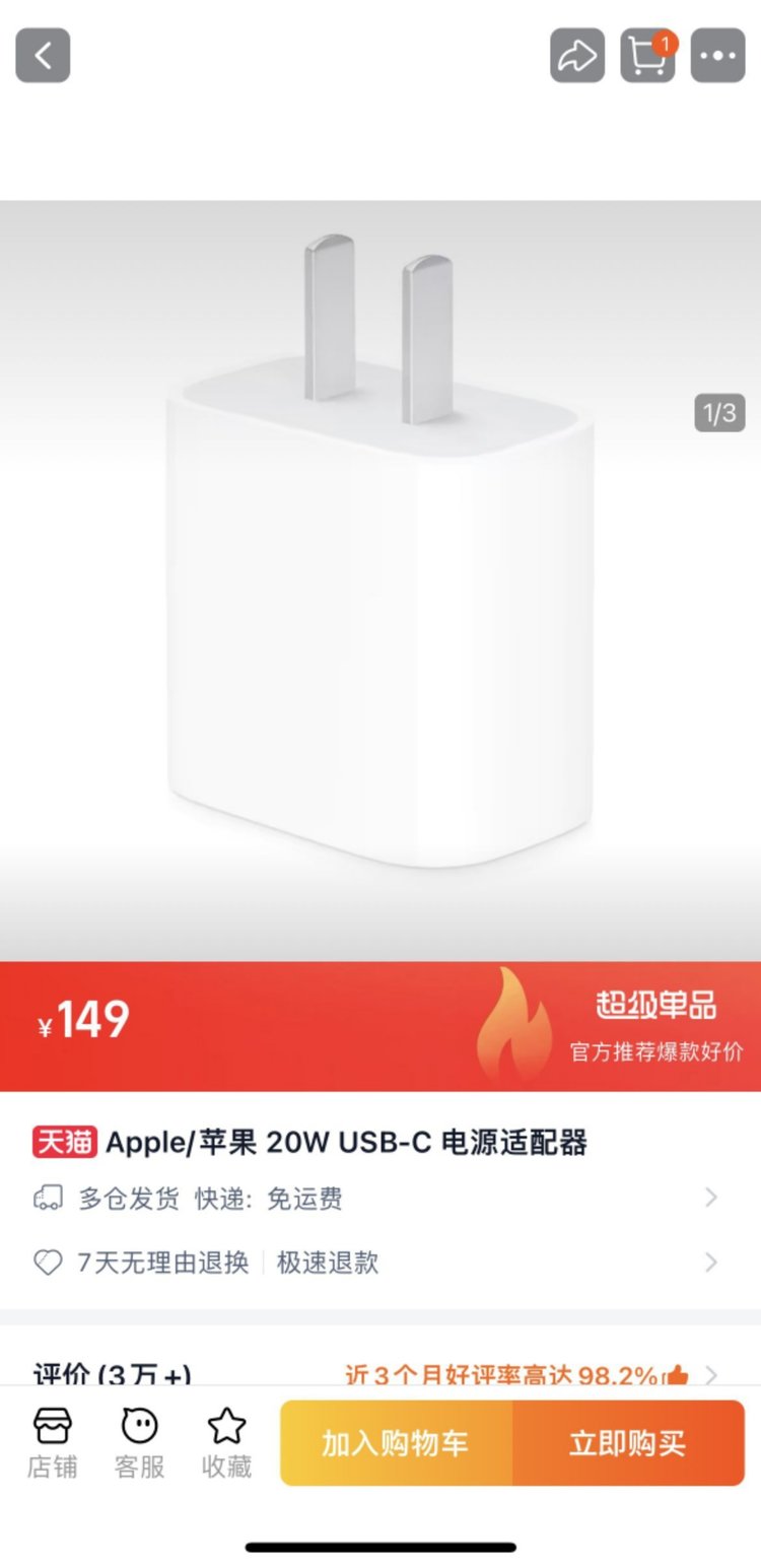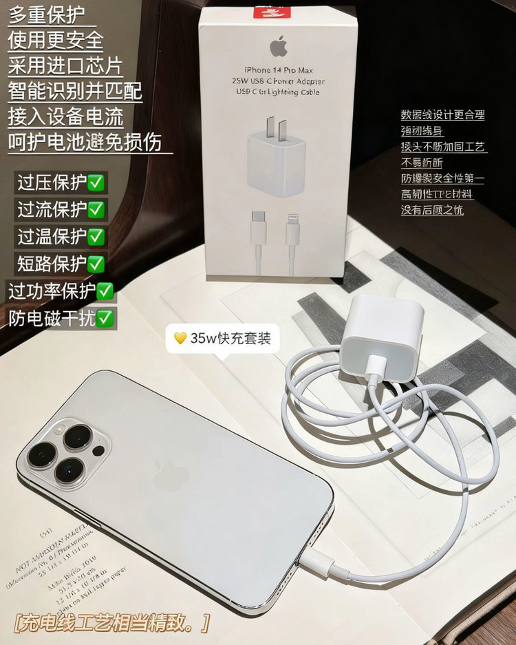 【京东自营35W-原装苹果14手机专用】 PD认证芯片 兼容性强充电头+1M充电线 安全快充不伤电池、不发热 SuperCharge超级快充!速度是普通充电器5倍!