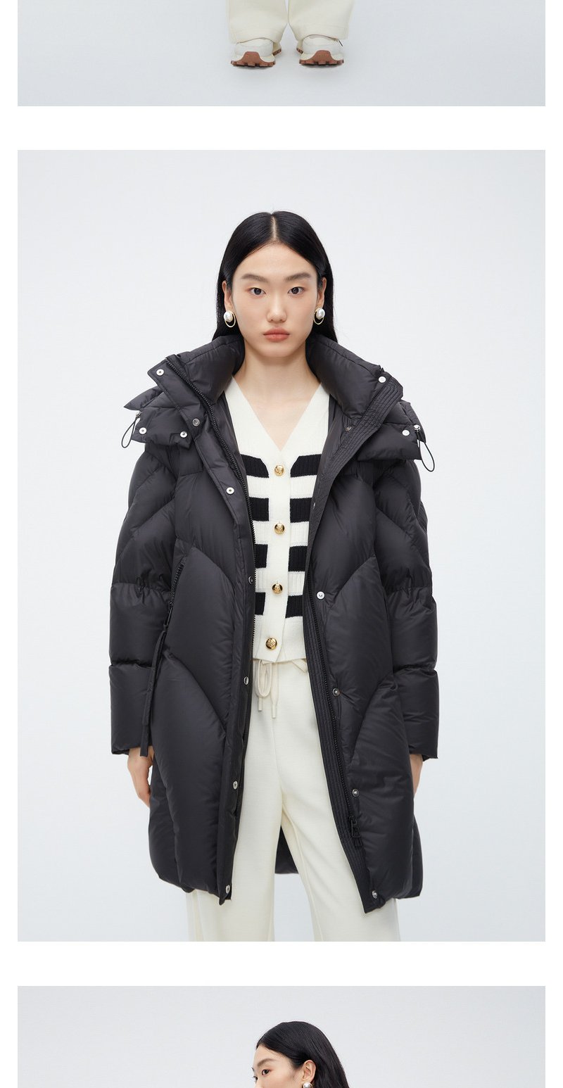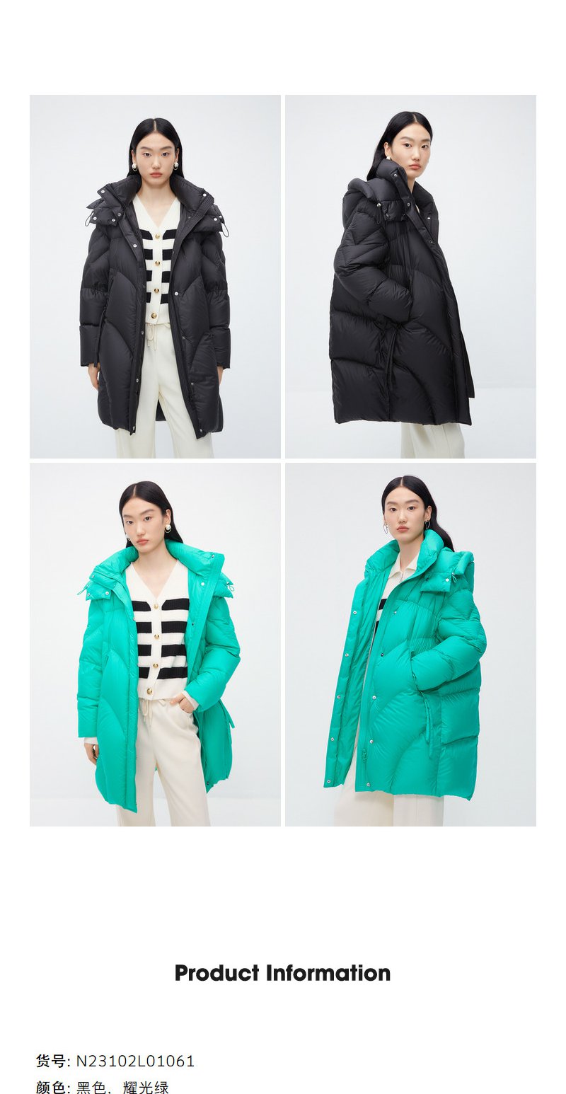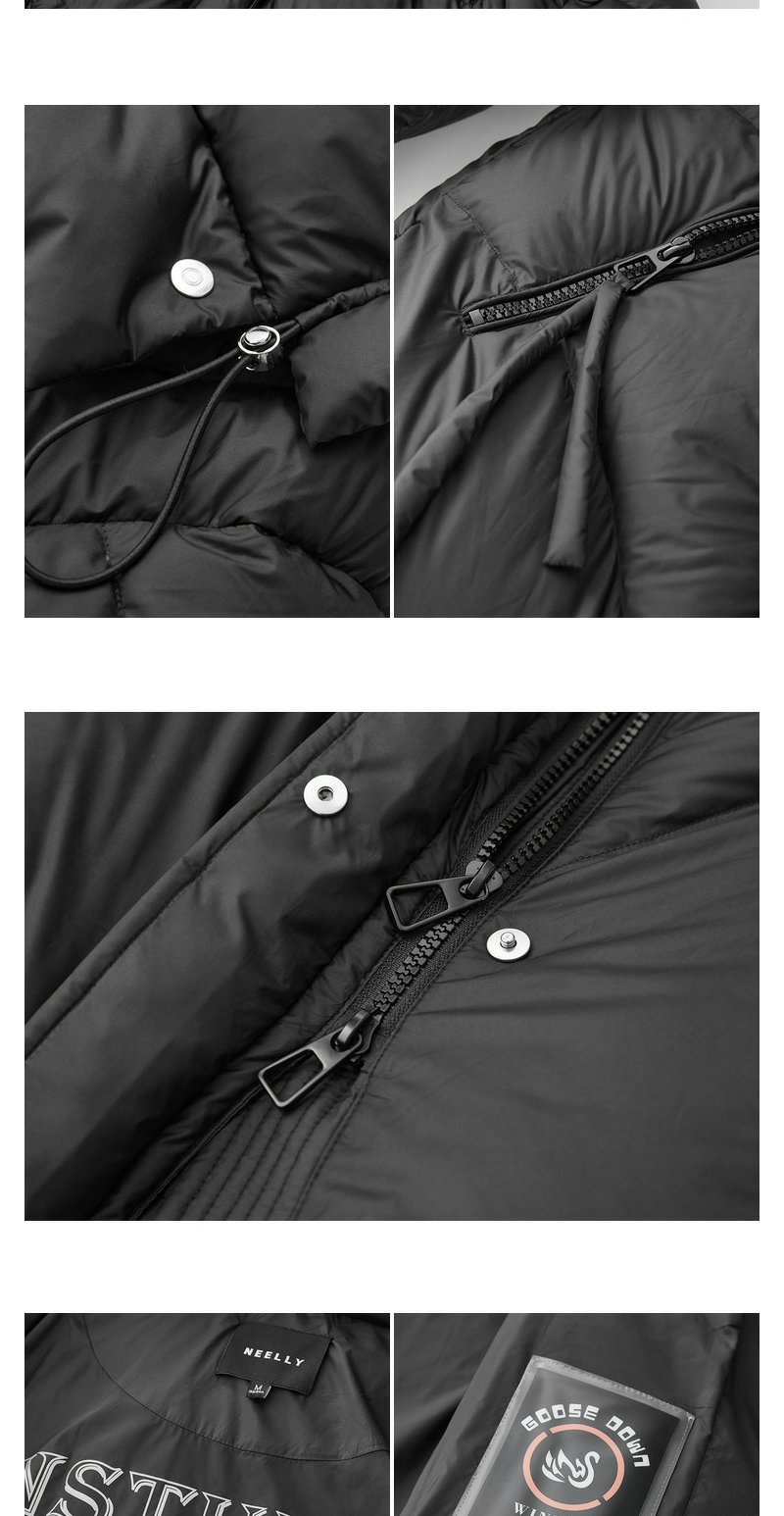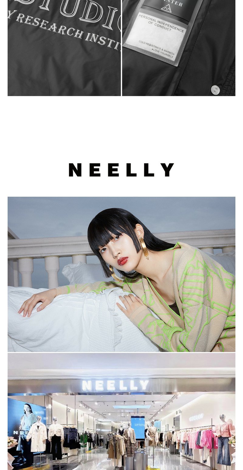 NEELLY纳俪商场同款中长款连帽羽绒服女设计感时尚蓬松白鸭绒外套N24104L04568