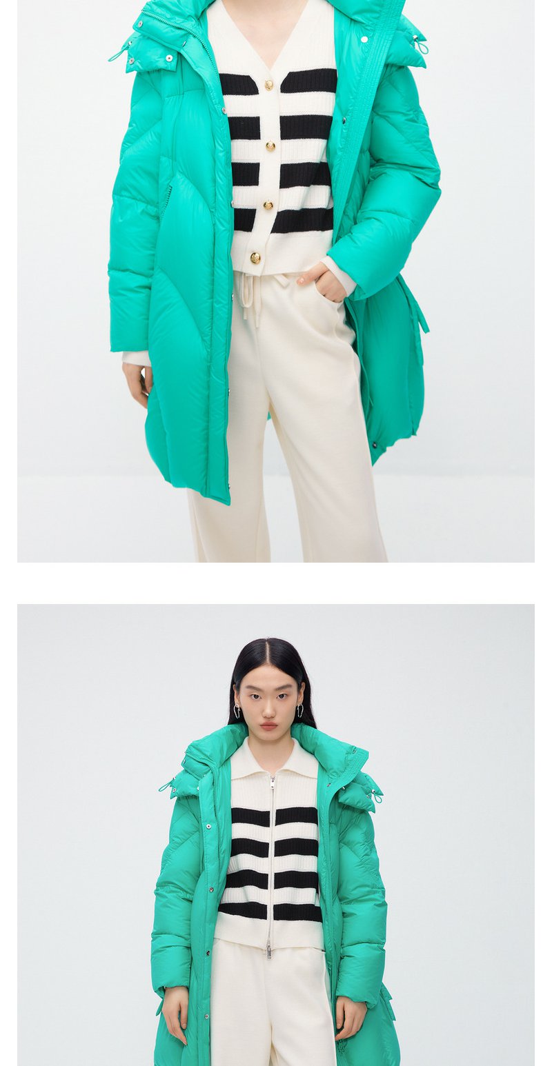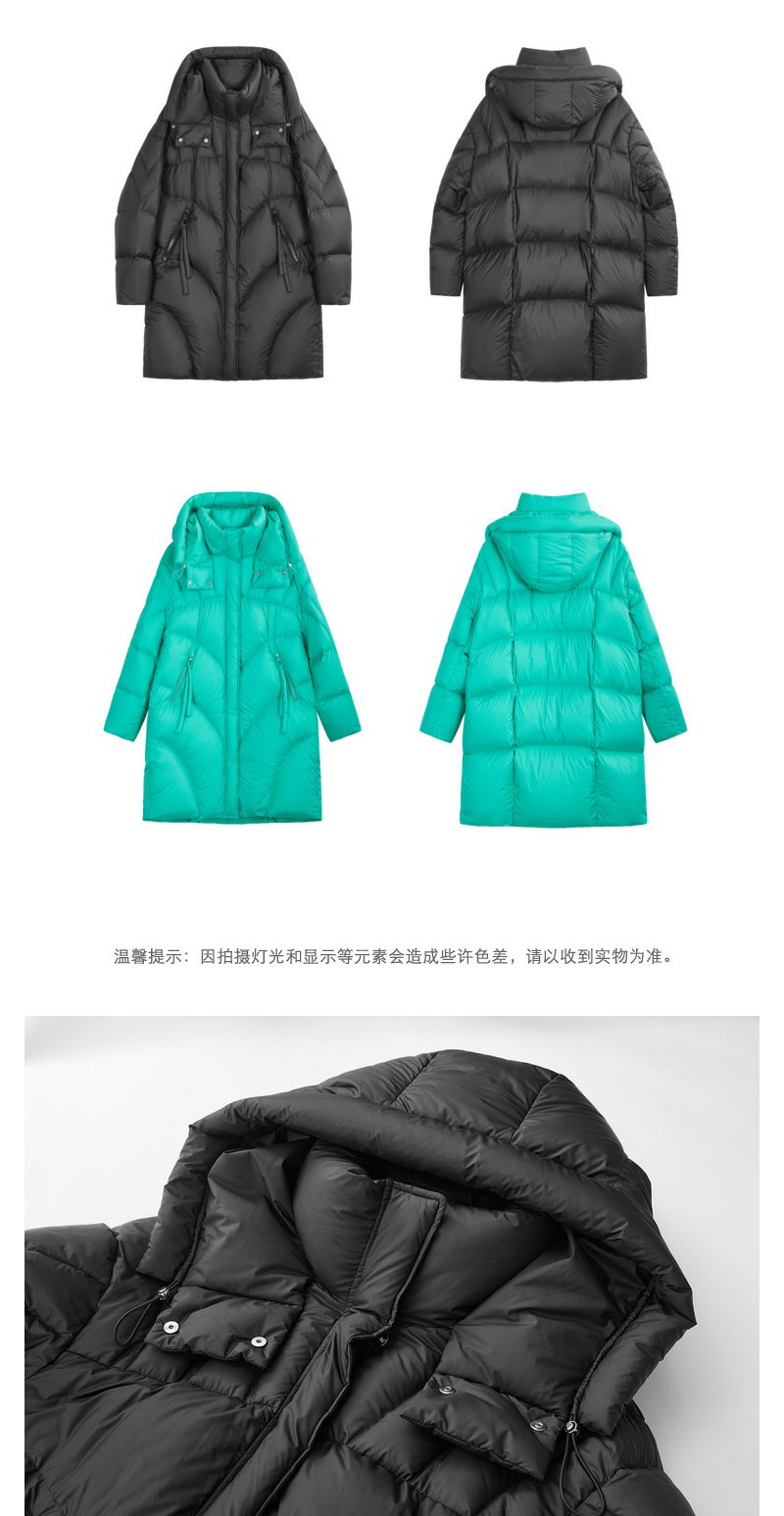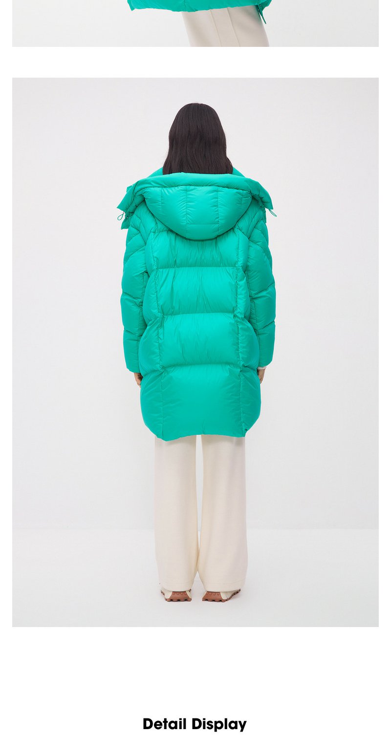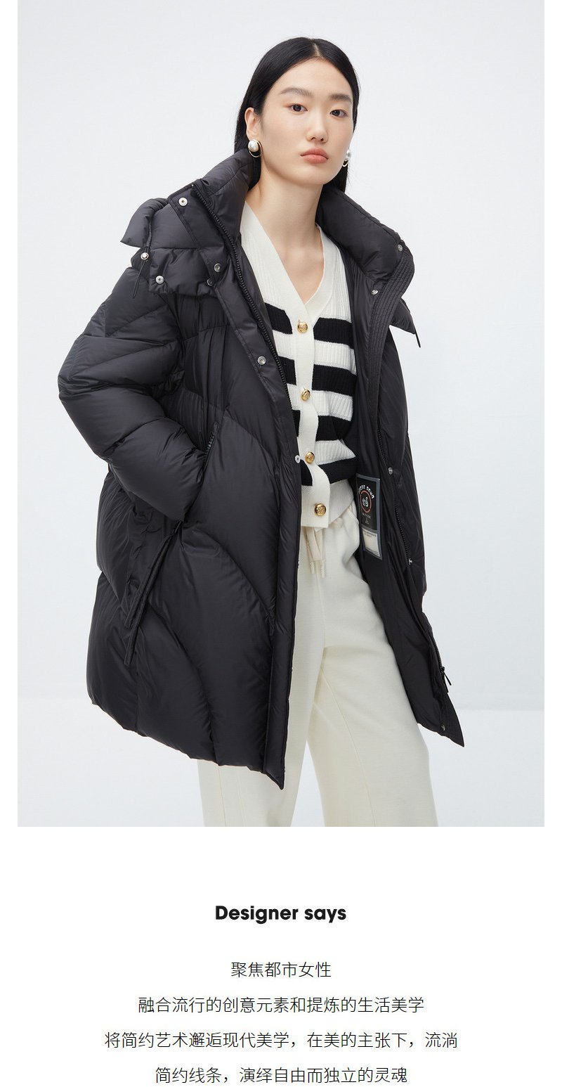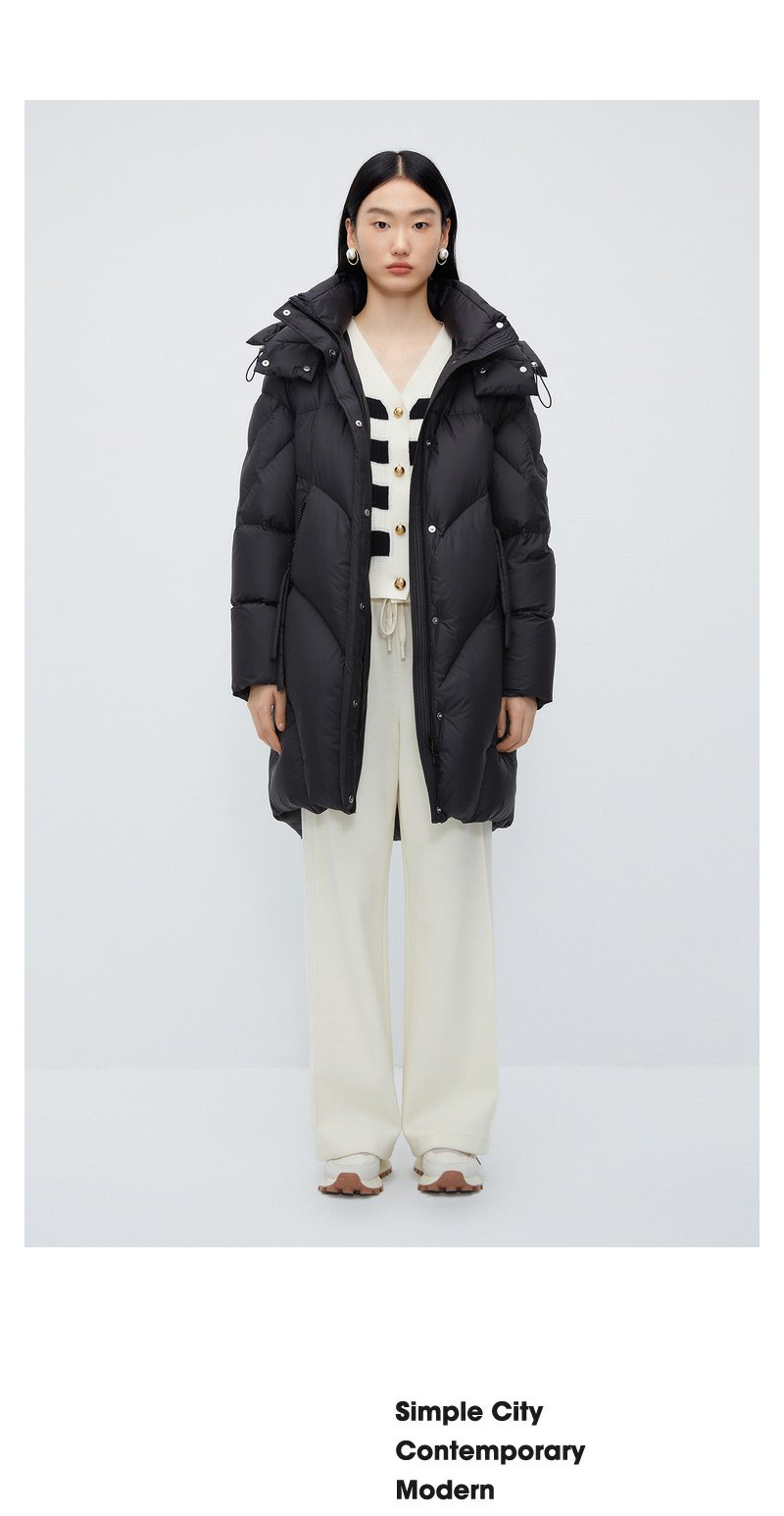 NEELLY纳俪商场同款中长款连帽羽绒服女设计感时尚蓬松白鸭绒外套N24104L04568