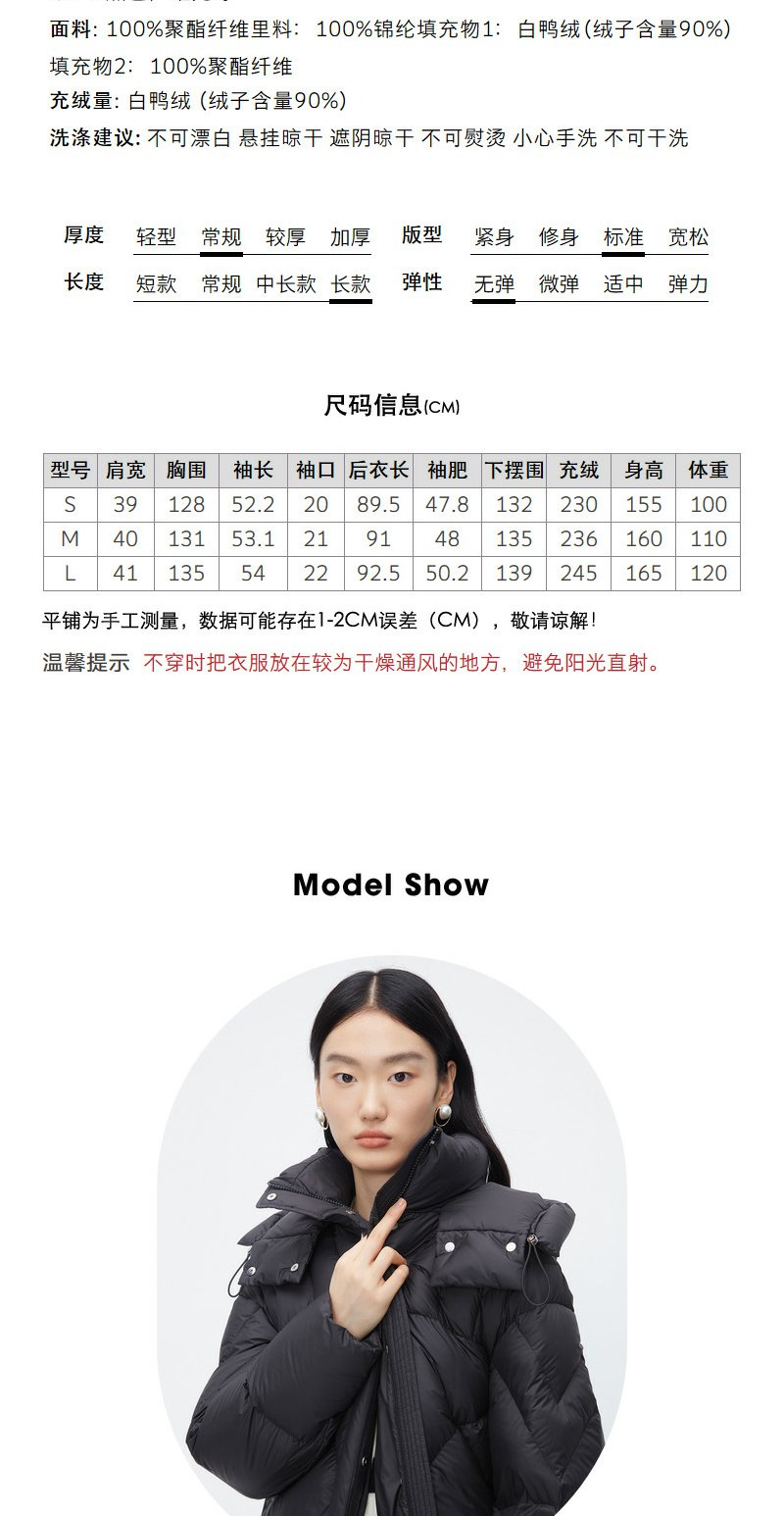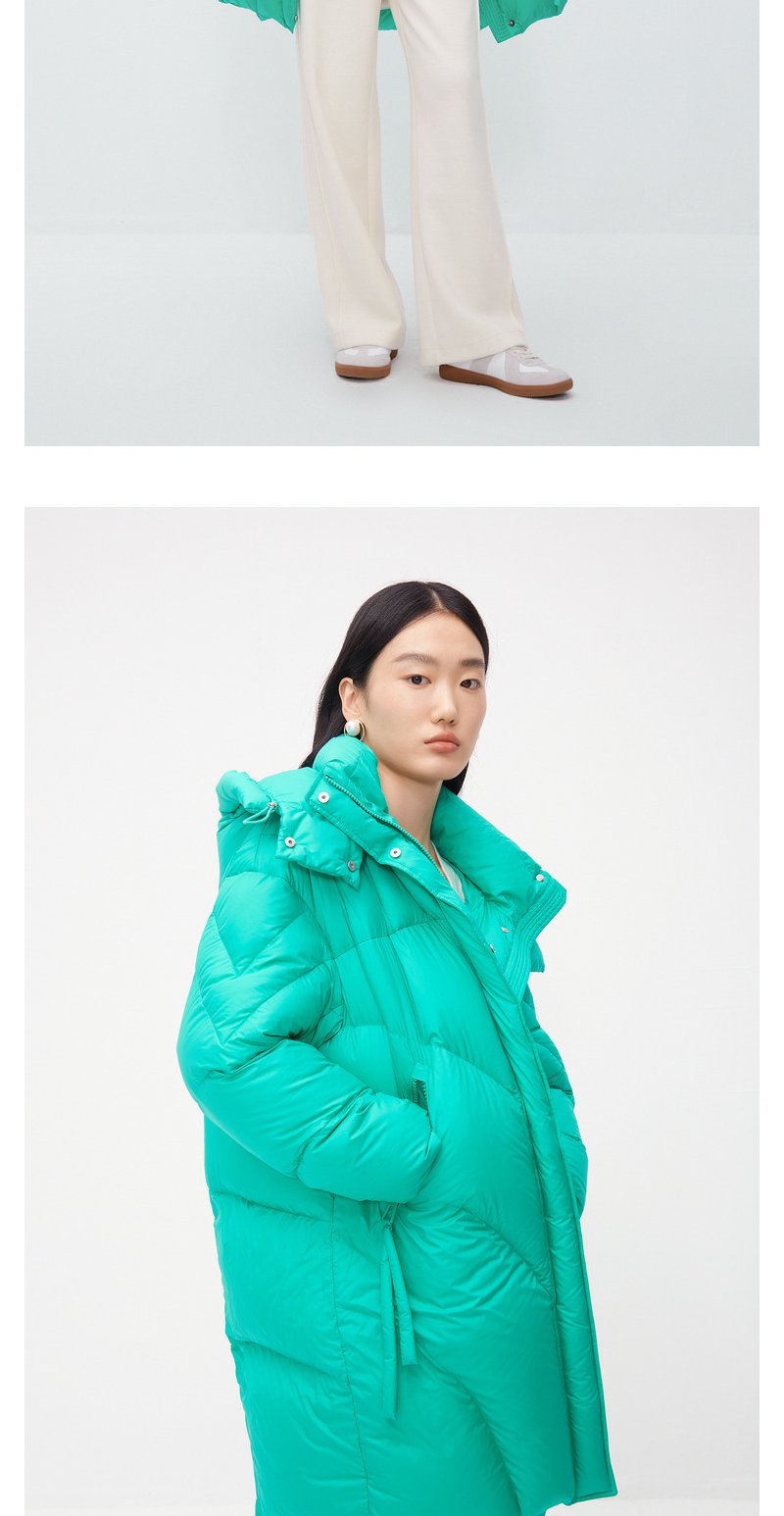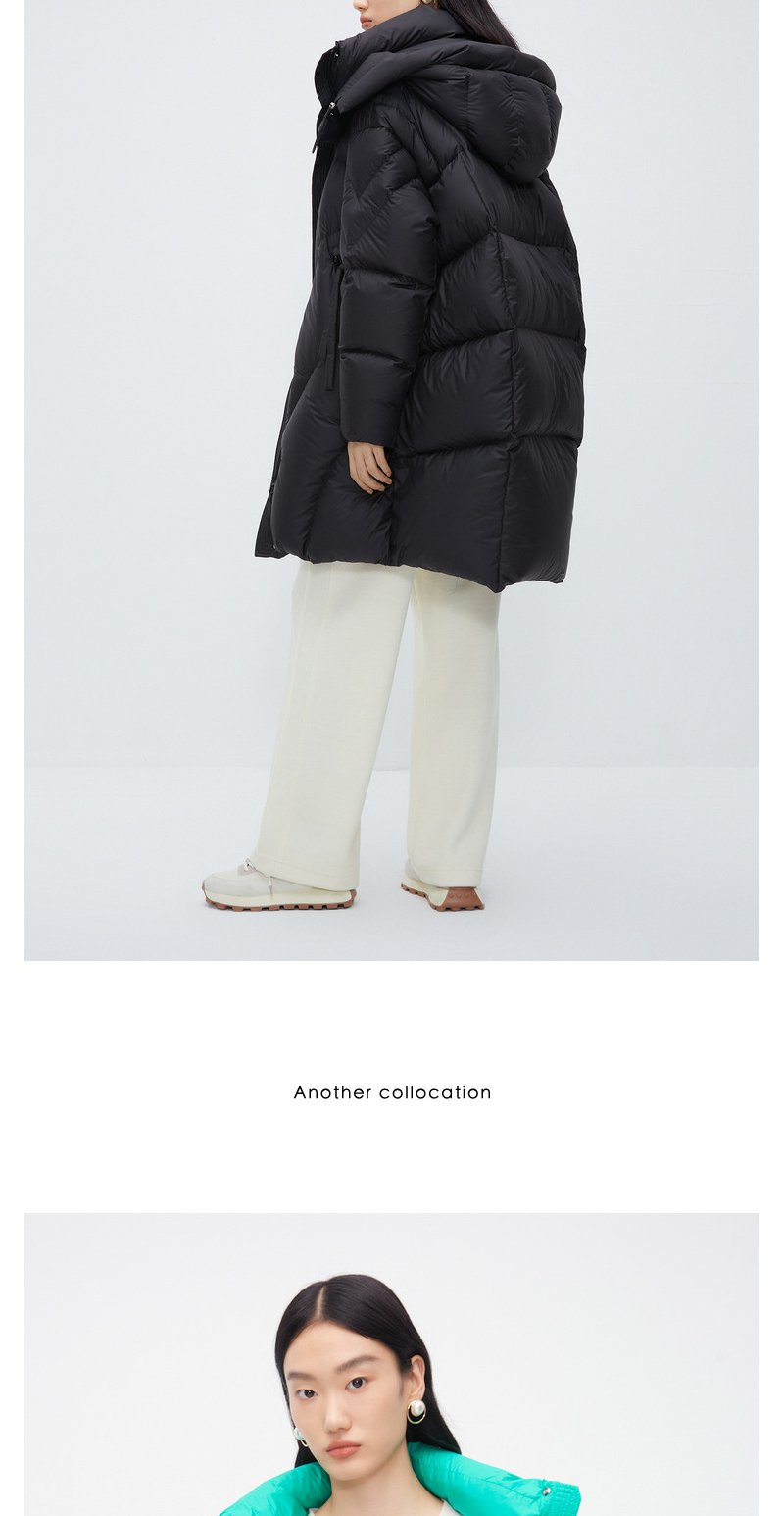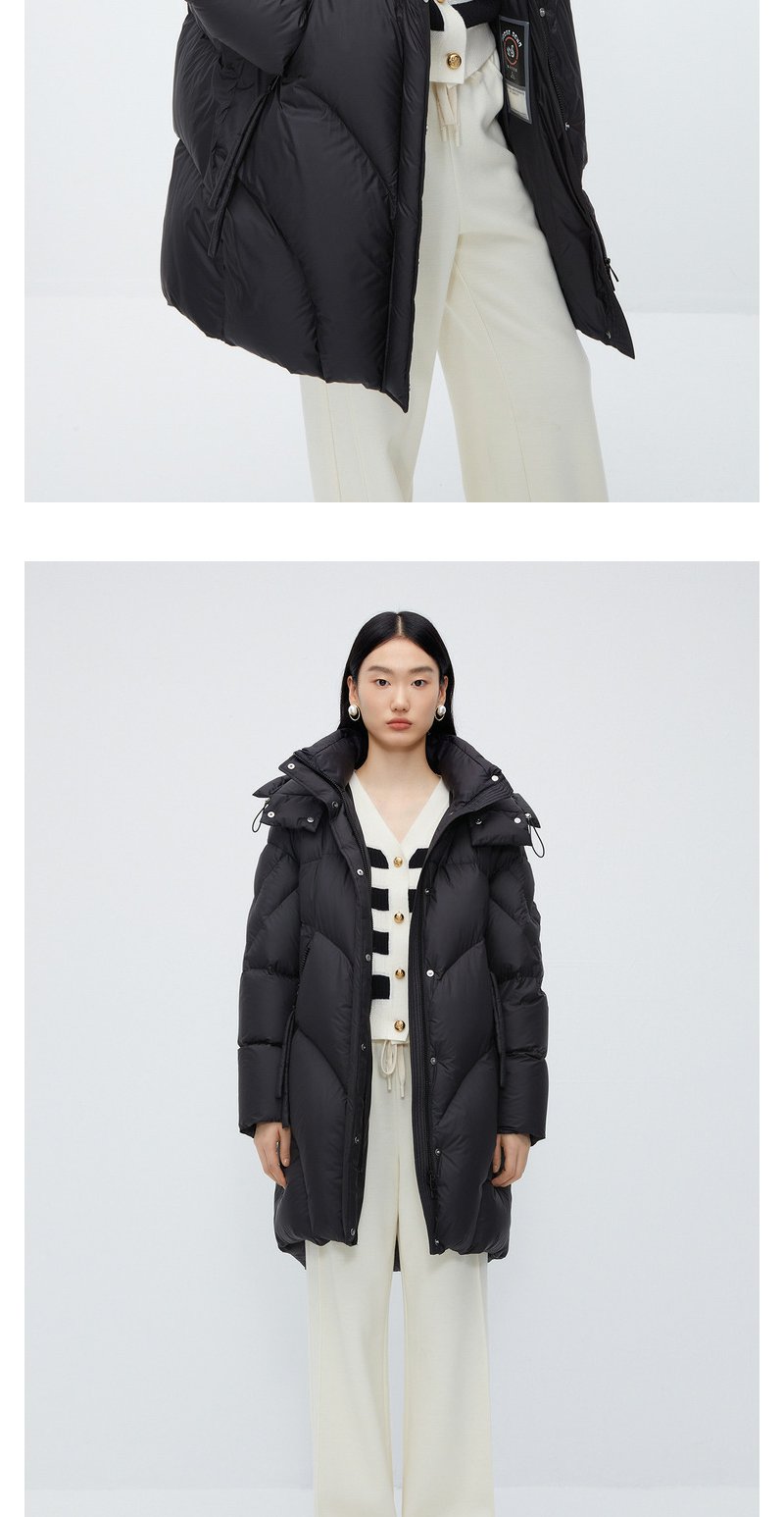 NEELLY纳俪商场同款中长款连帽羽绒服女设计感时尚蓬松白鸭绒外套N24104L04568