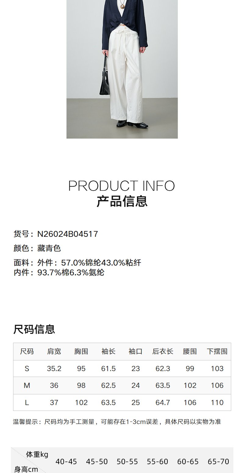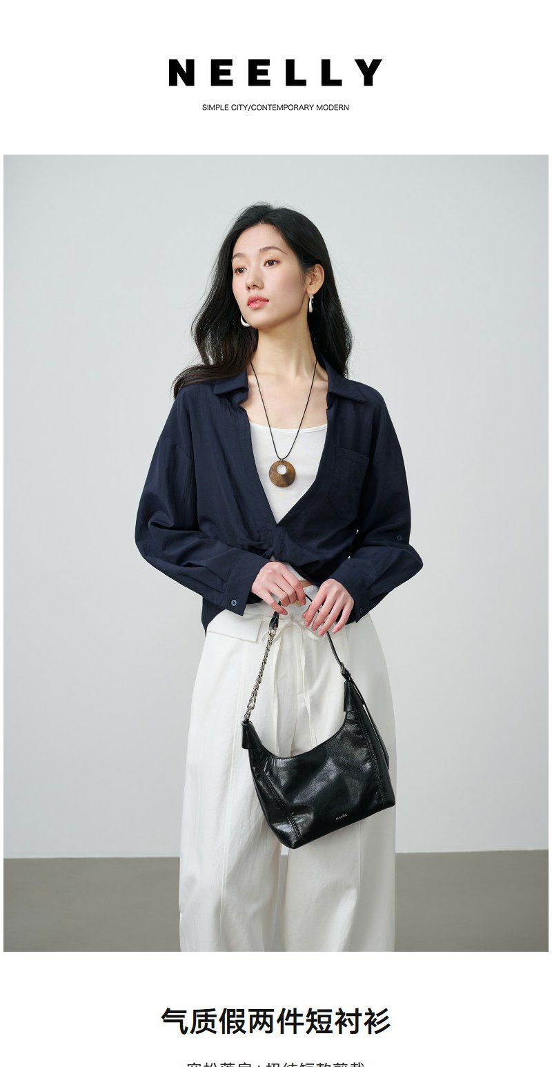 NEELLY纳俪商场同款春季新款气质通勤假两件衬衫女休闲松弛感上衣N26024B04517