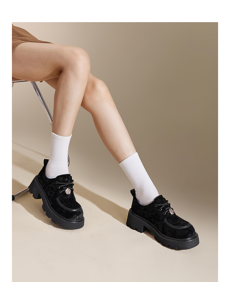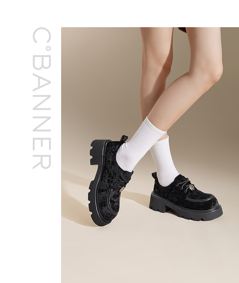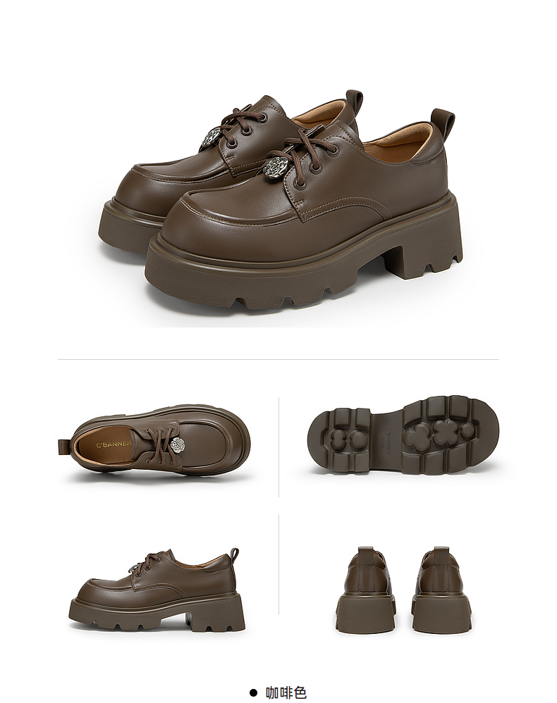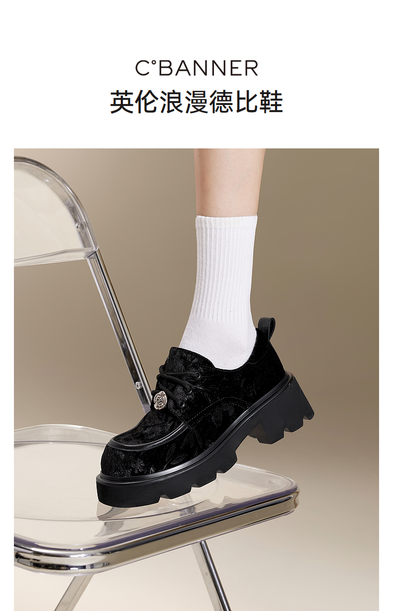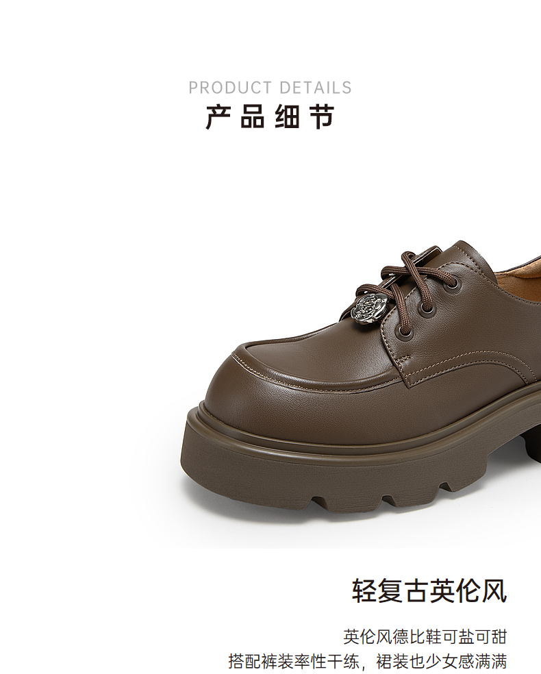 千百度新中式厚底牛津鞋女春季增高深口乐福鞋复古小皮鞋百搭A24455302