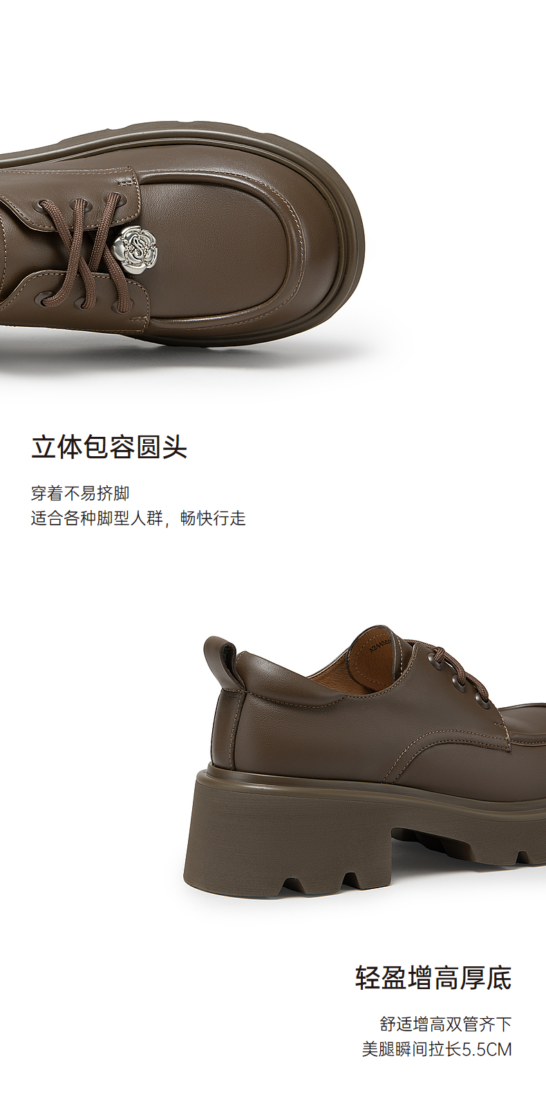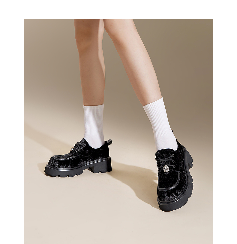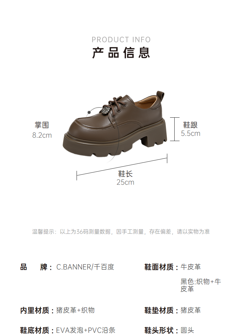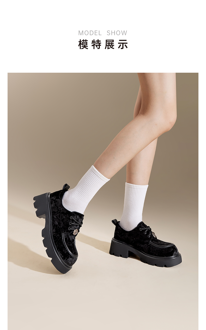 千百度新中式厚底牛津鞋女春季增高深口乐福鞋复古小皮鞋百搭A24455302