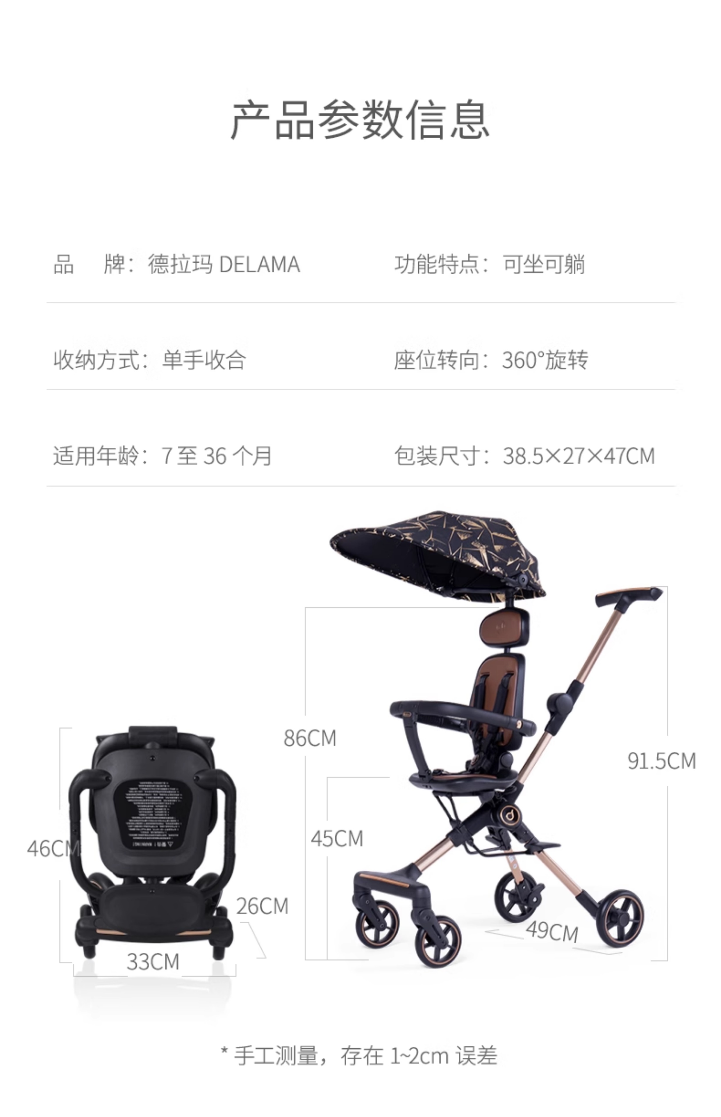 德拉玛溜娃神器轻便折叠遛娃可坐可躺便携简易可登机超小遛娃车S1-4