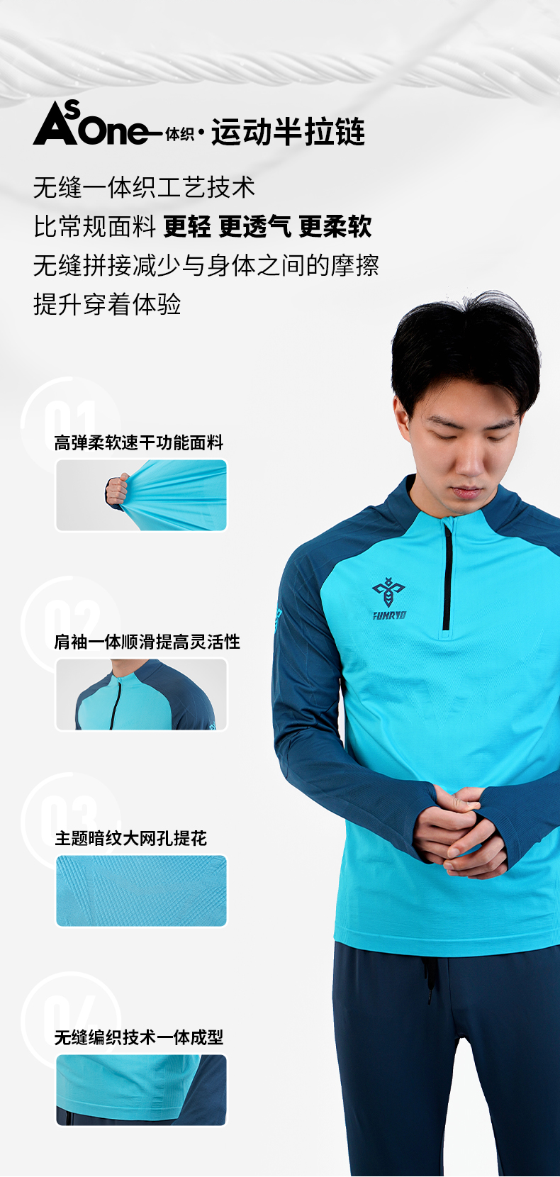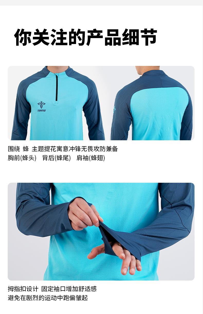 蜂锐一体织半拉链足球训练上衣无缝提花透气弹力足球服