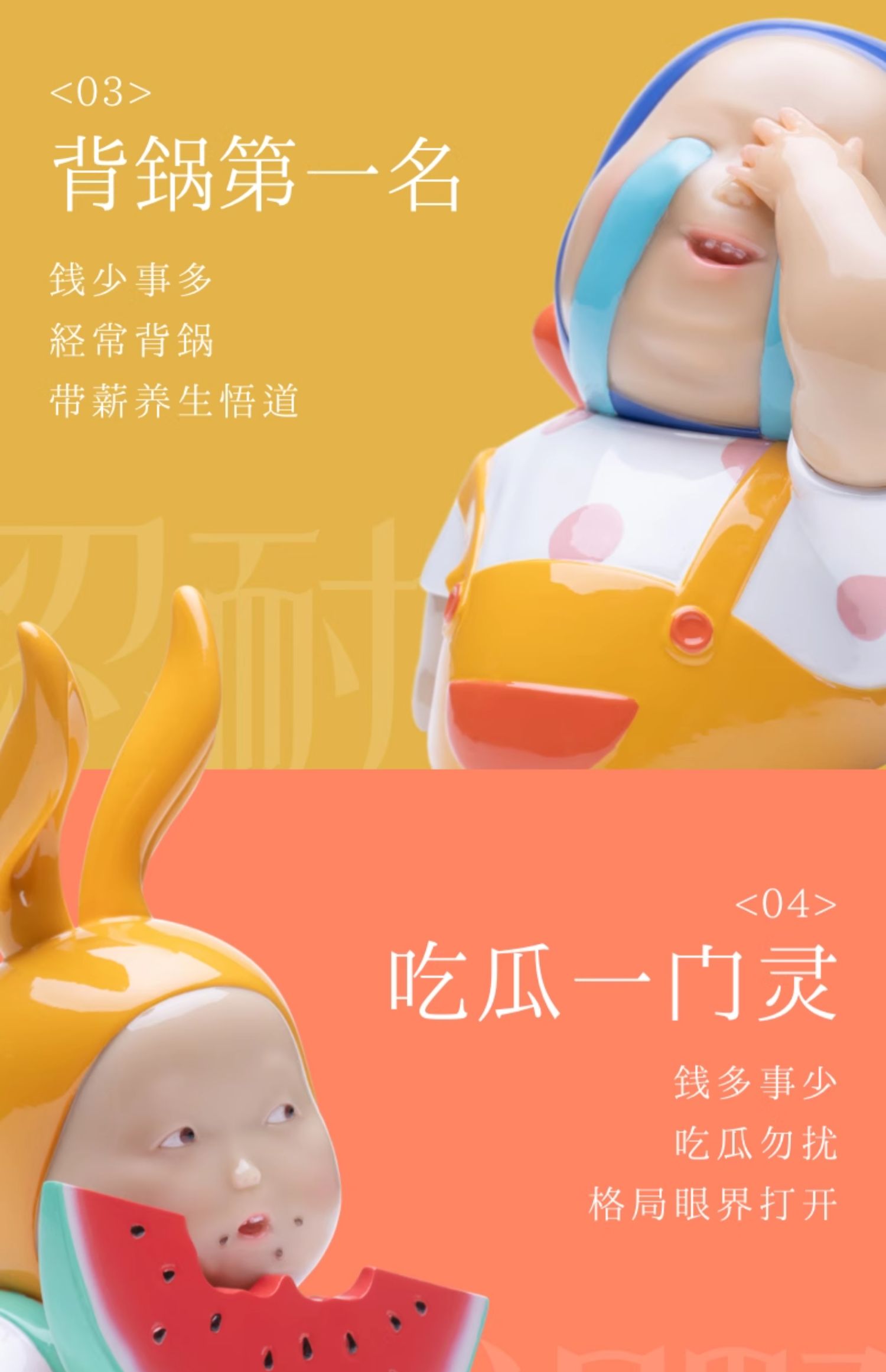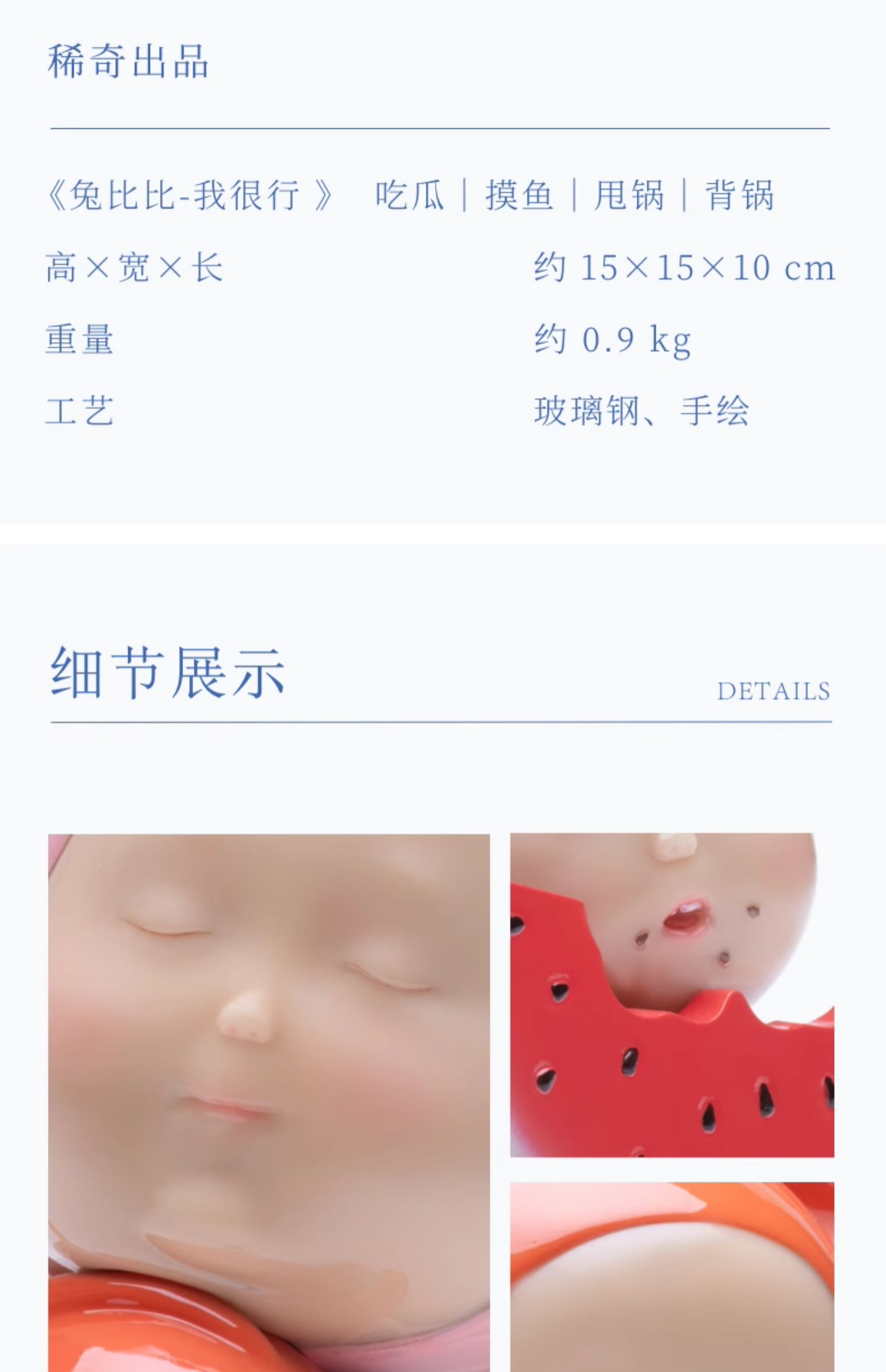 稀奇艺术 《表情包》吃瓜兔比比办公室可爱多巴胺雕塑摆件创意礼品