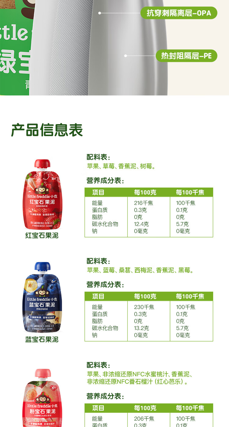 小皮阳光麦田黄宝石果泥(百香果菠萝芒果)85g