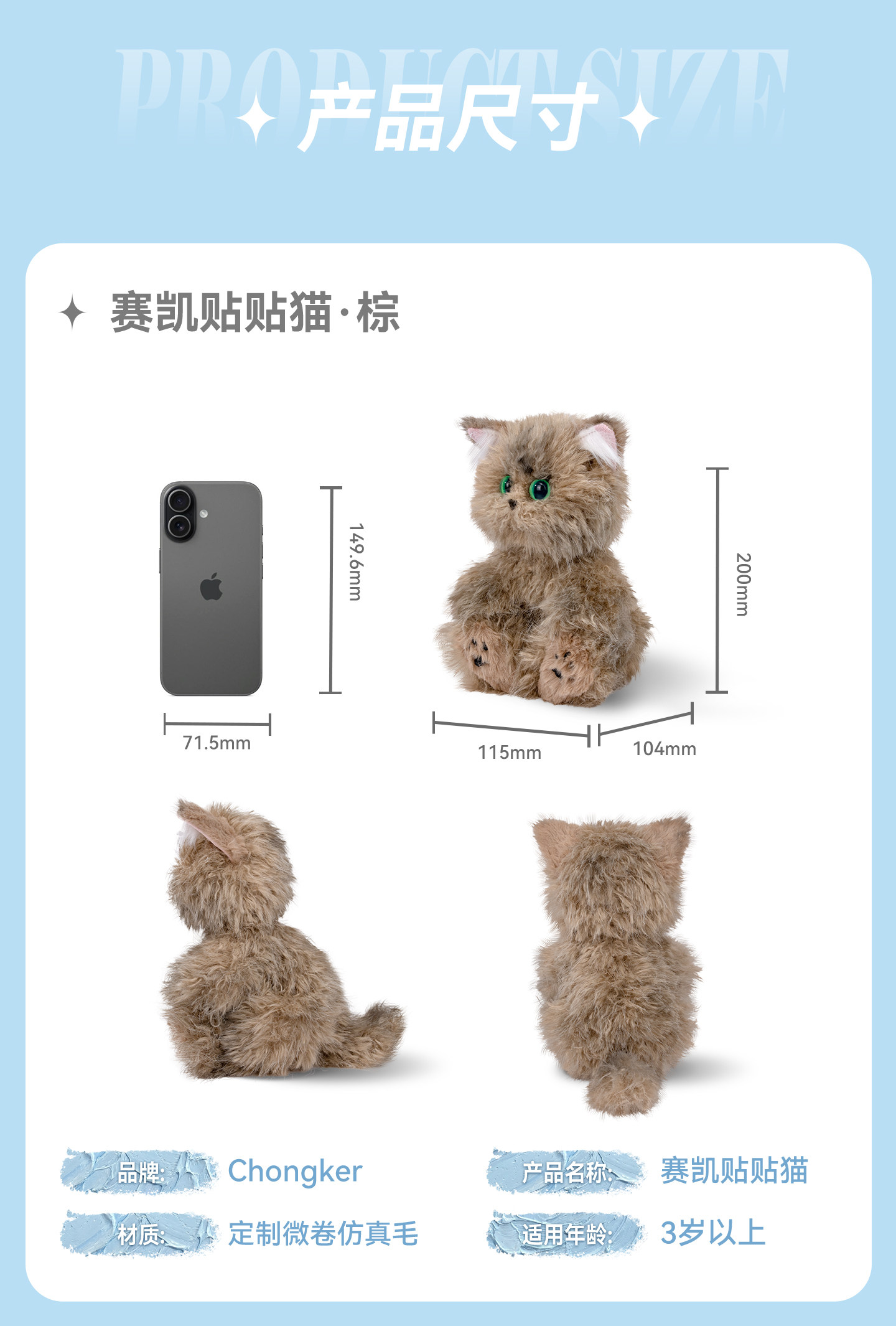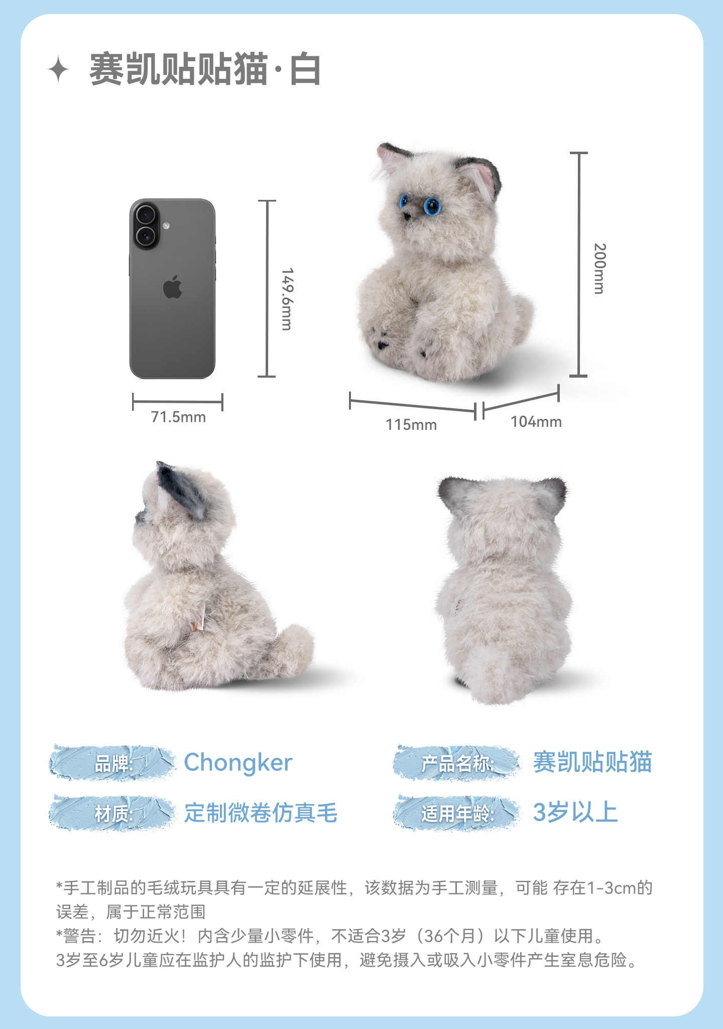 Chongker/宠客 赛凯猫咪玩偶毛绒小挂件公仔送女友生日情人节礼物