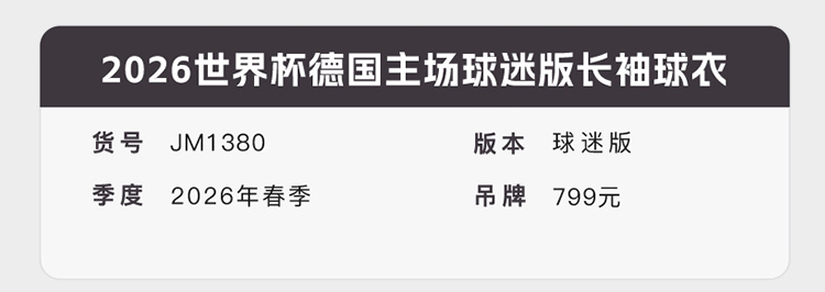 小李子ADIDAS阿迪达斯2026世界杯德国主场球迷版长袖球衣JM1380