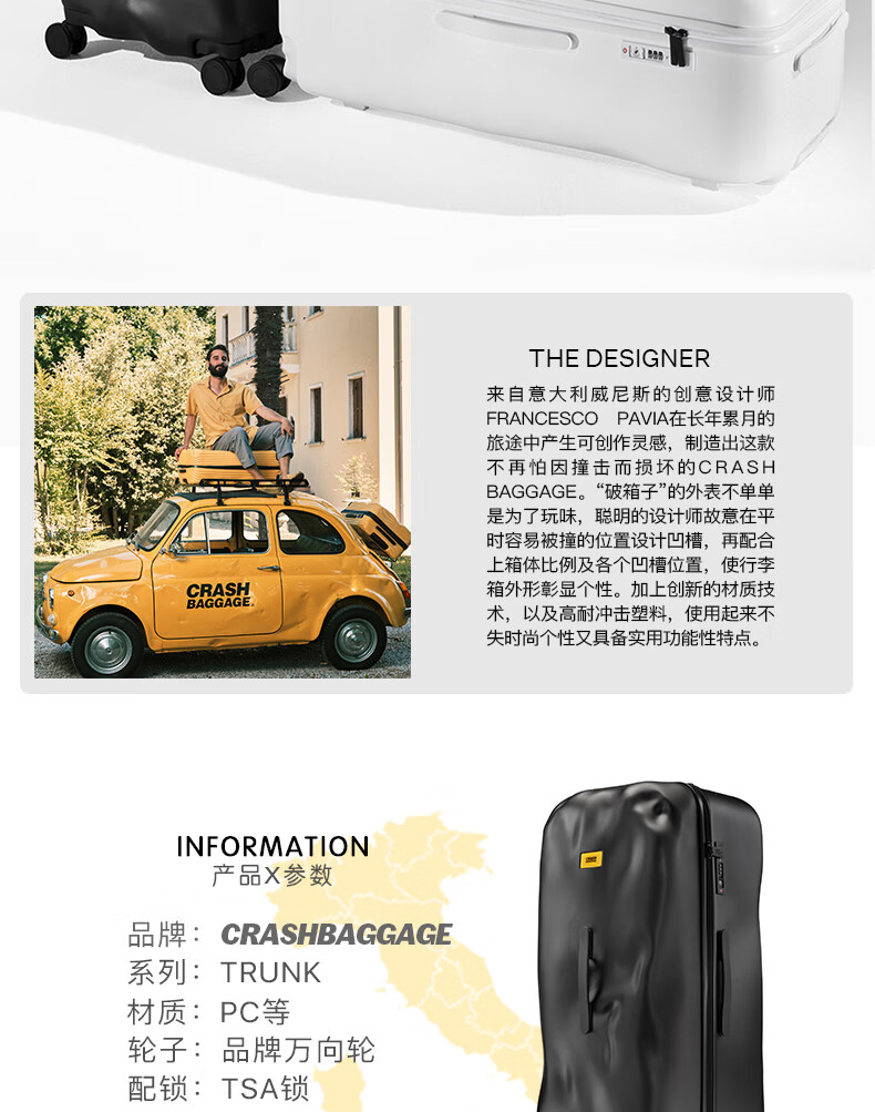 Crash Baggage TRUNK系列 意大利原创破损凹凸30英寸行李箱旅行箱拉杆箱大容量