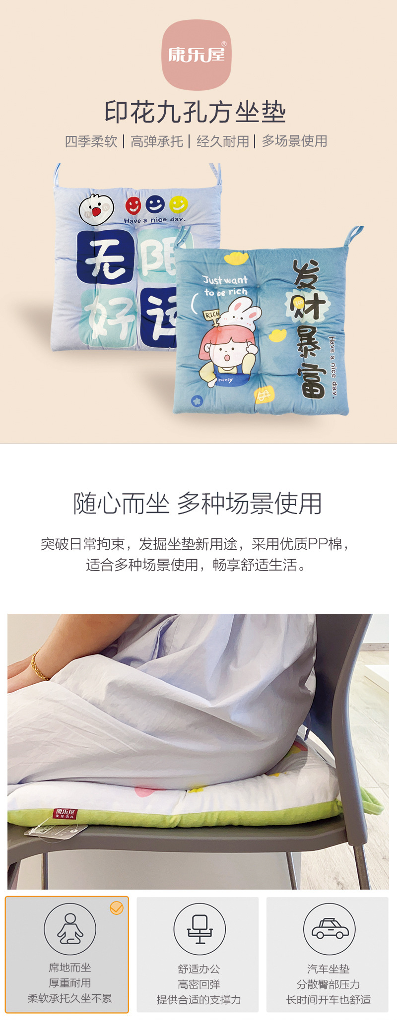 康乐屋印花九孔方坐垫40*40秋冬新款可爱印花9孔坐垫 学生垫办公室坐垫