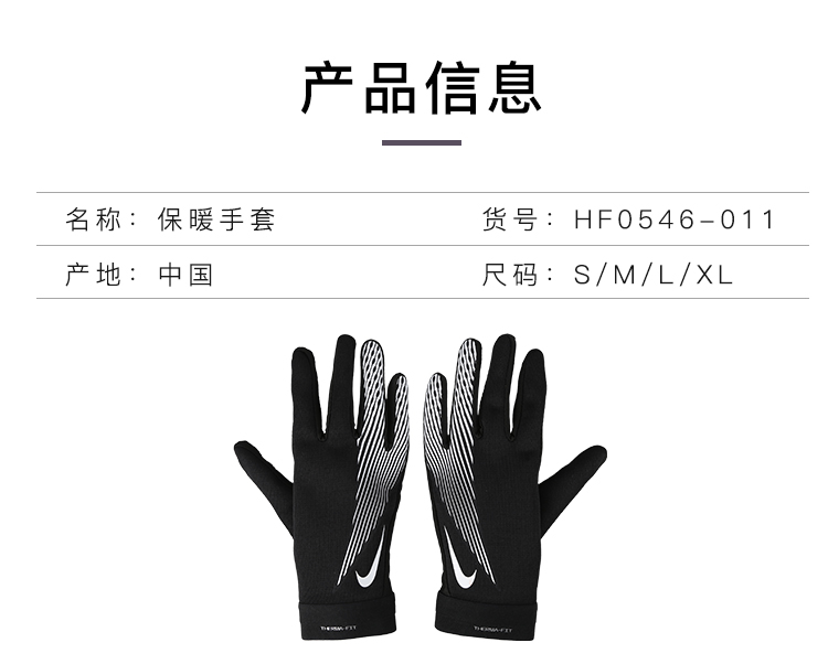 小李子正品NIKE耐克保暖手套成人儿童男女训练装备HF0546-011