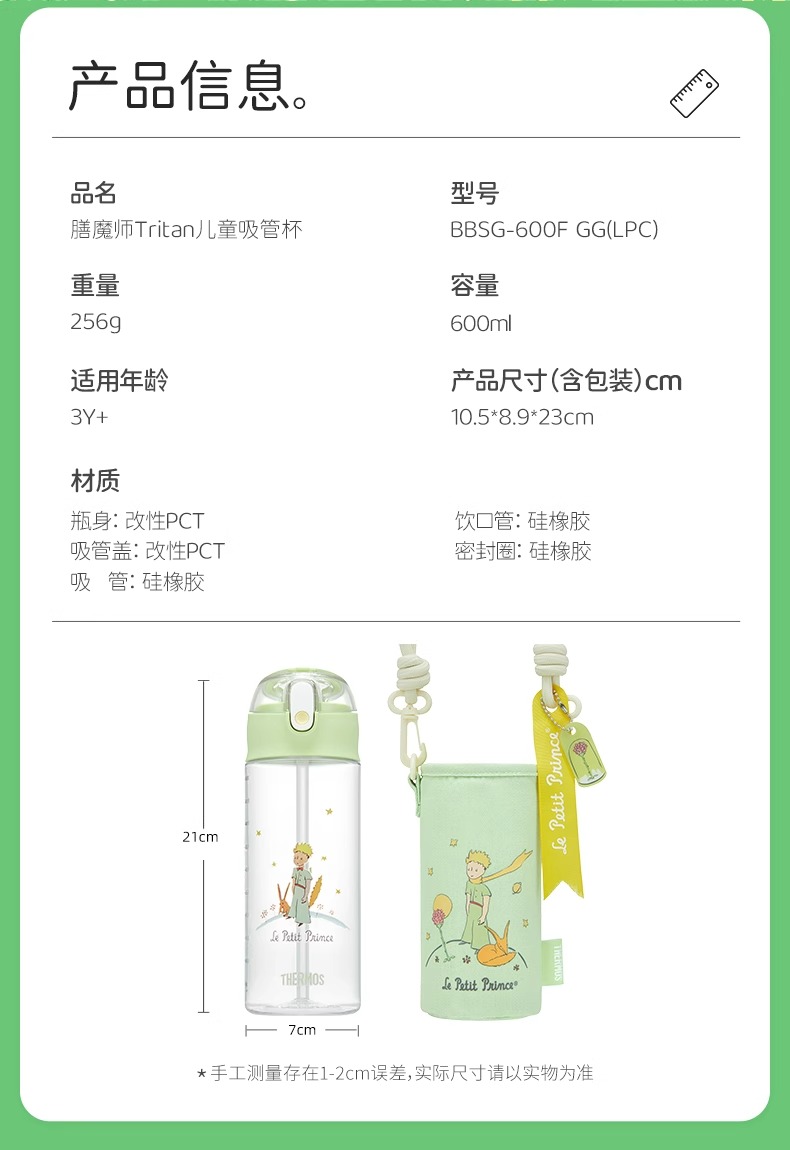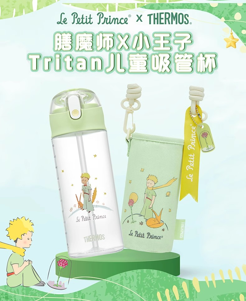 膳魔师x小王子Tritan吸管杯PU杯套儿童运动瓶户外水杯600ml