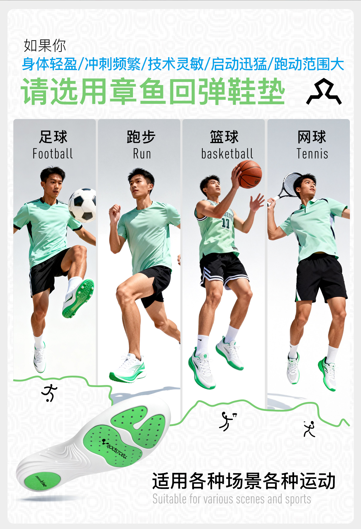 【PoronLive回弹】小李子李质造足球运动训练双核回弹防滑透气散热鞋垫成人男