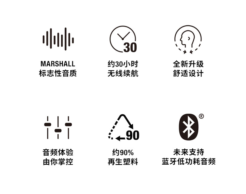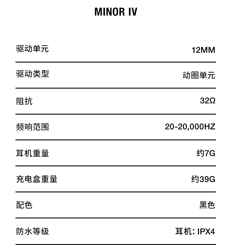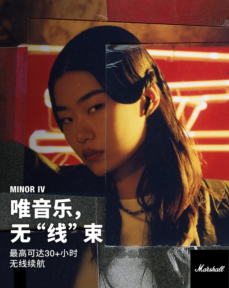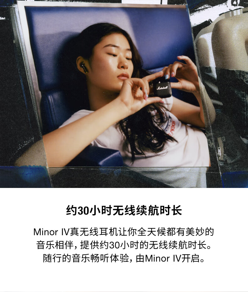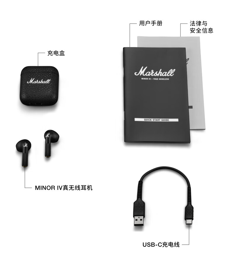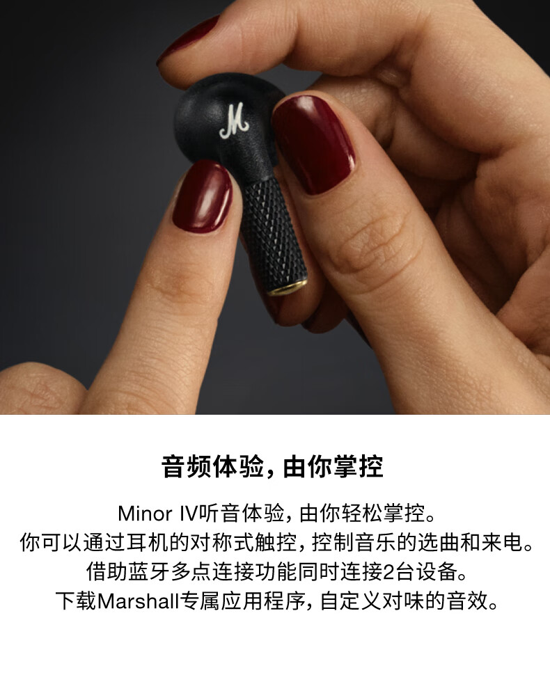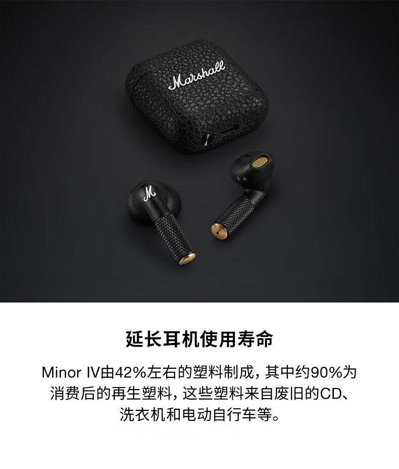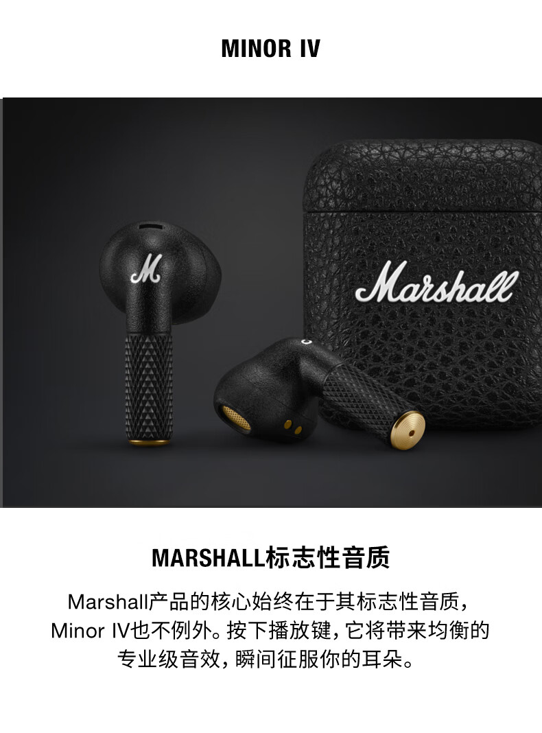 马歇尔/Marshall MINOR IV耳机真无线重低音防水4代无线蓝牙长续航TWS耳麦 黑色