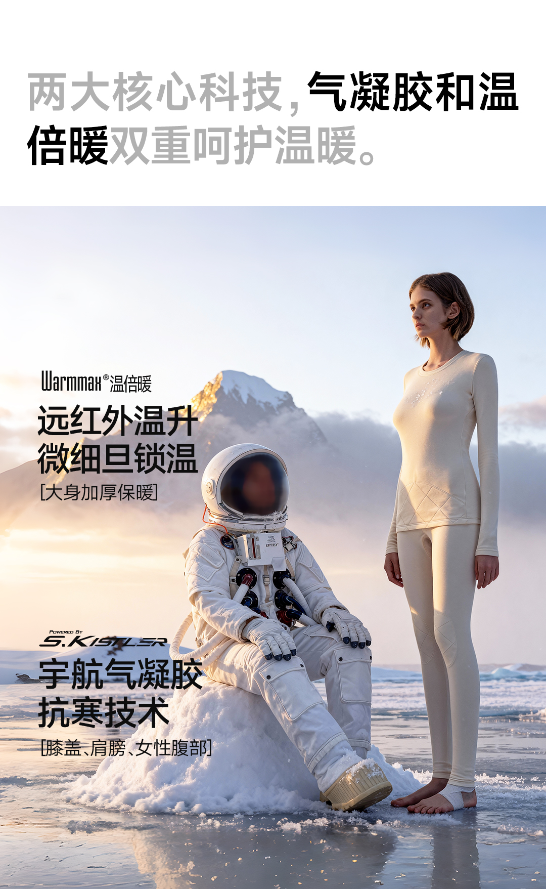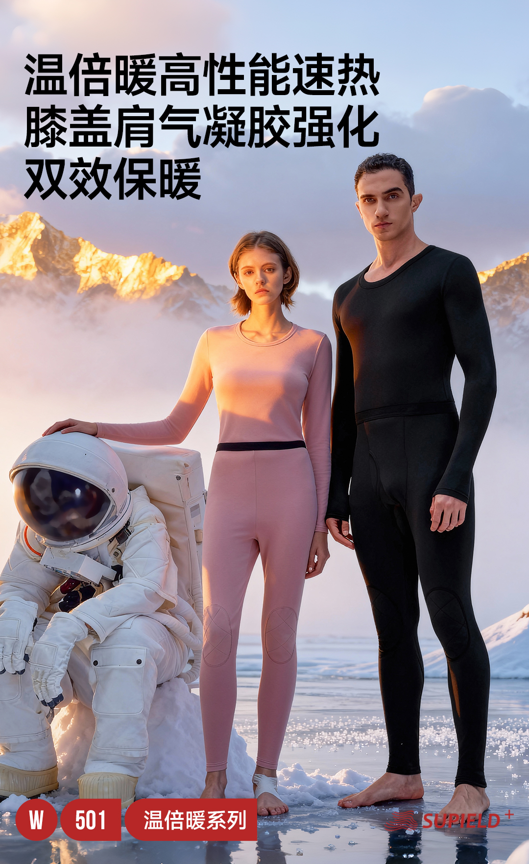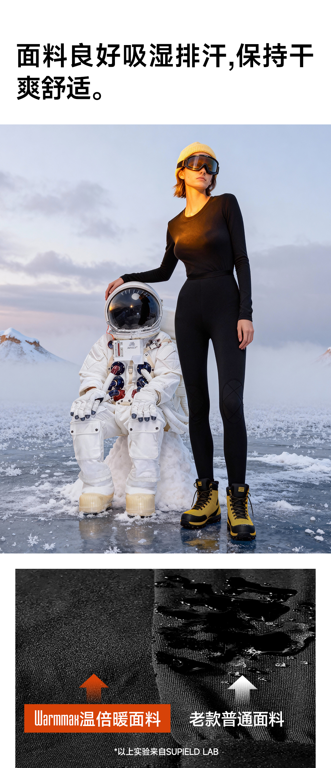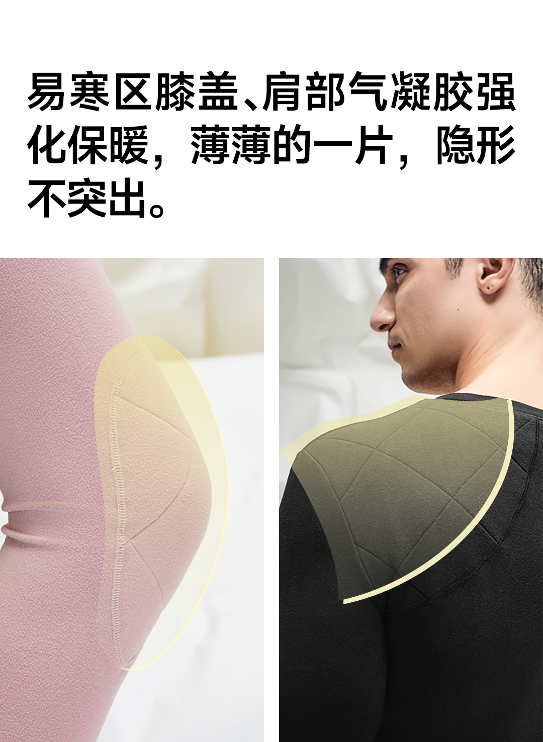 混知推荐【宇航保暖科技 双面绒加倍锁热】 素湃SUPIELD温倍暖气凝胶保暖内衣 吸湿速干 防静电 肩部膝盖强化保暖