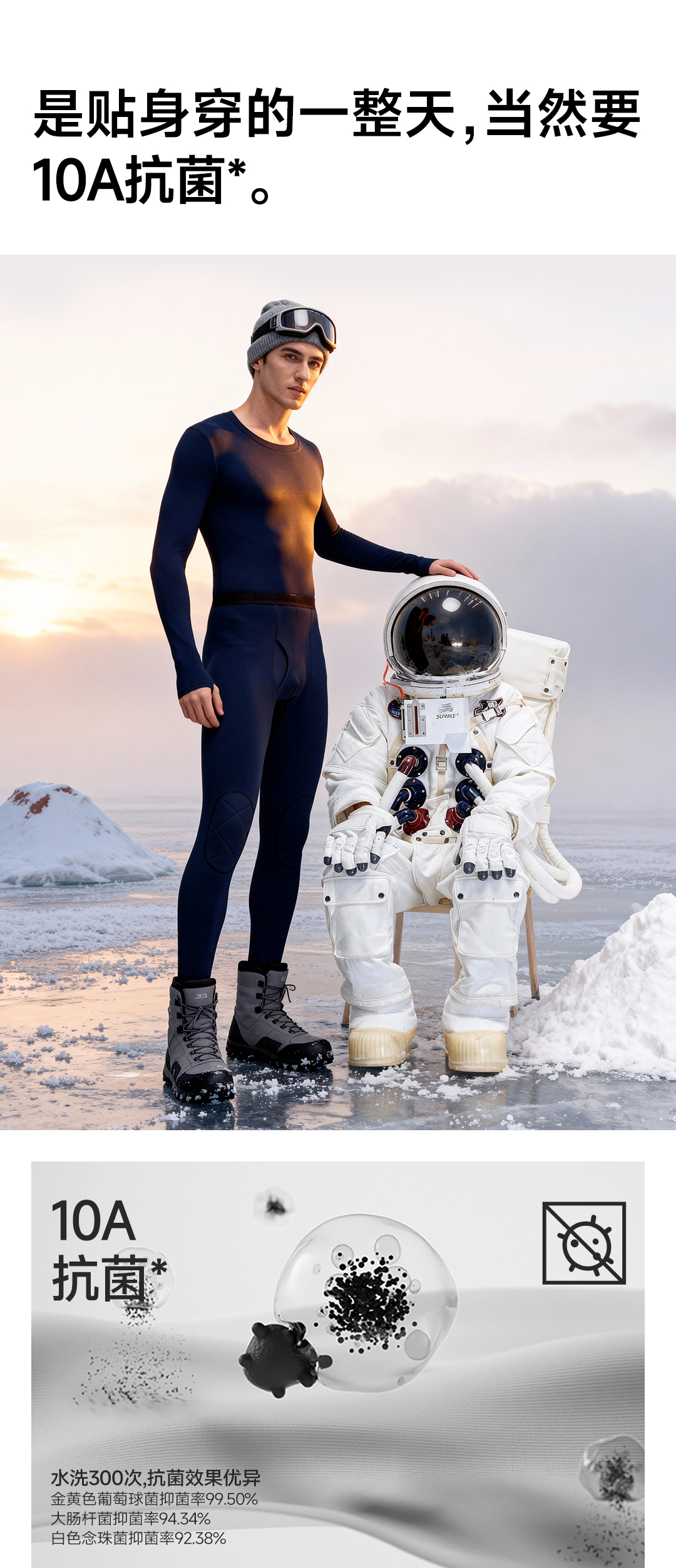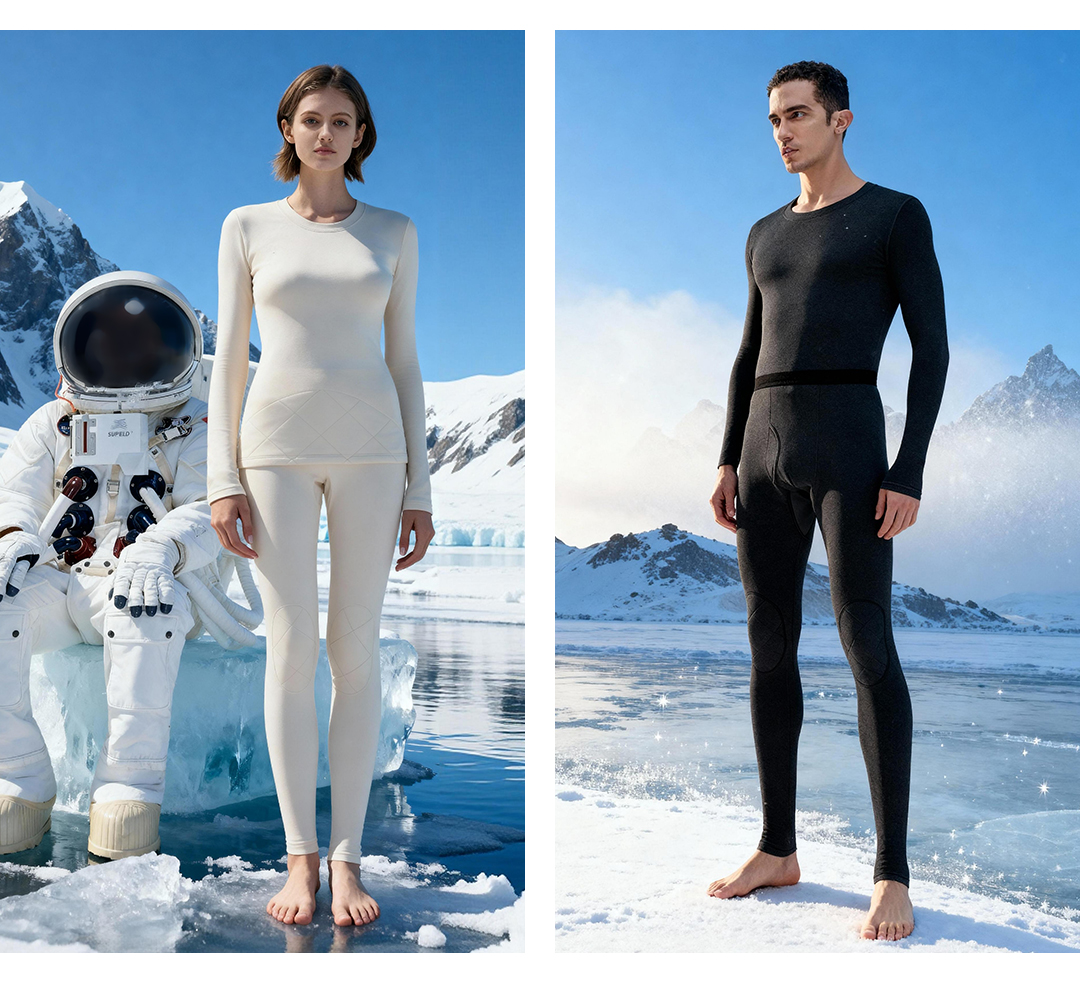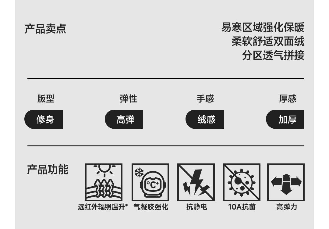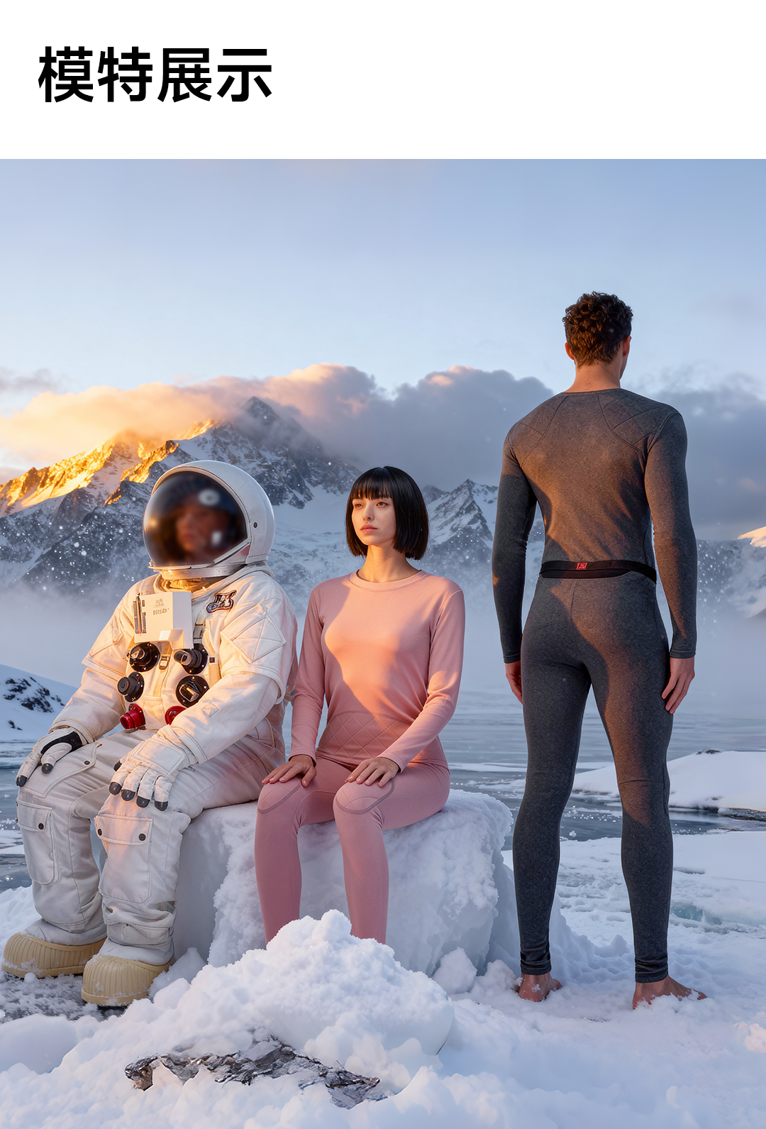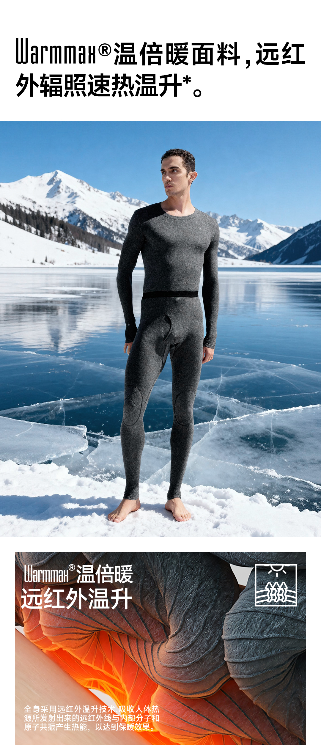 混知推荐【宇航保暖科技 双面绒加倍锁热】 素湃SUPIELD温倍暖气凝胶保暖内衣 吸湿速干 防静电 肩部膝盖强化保暖