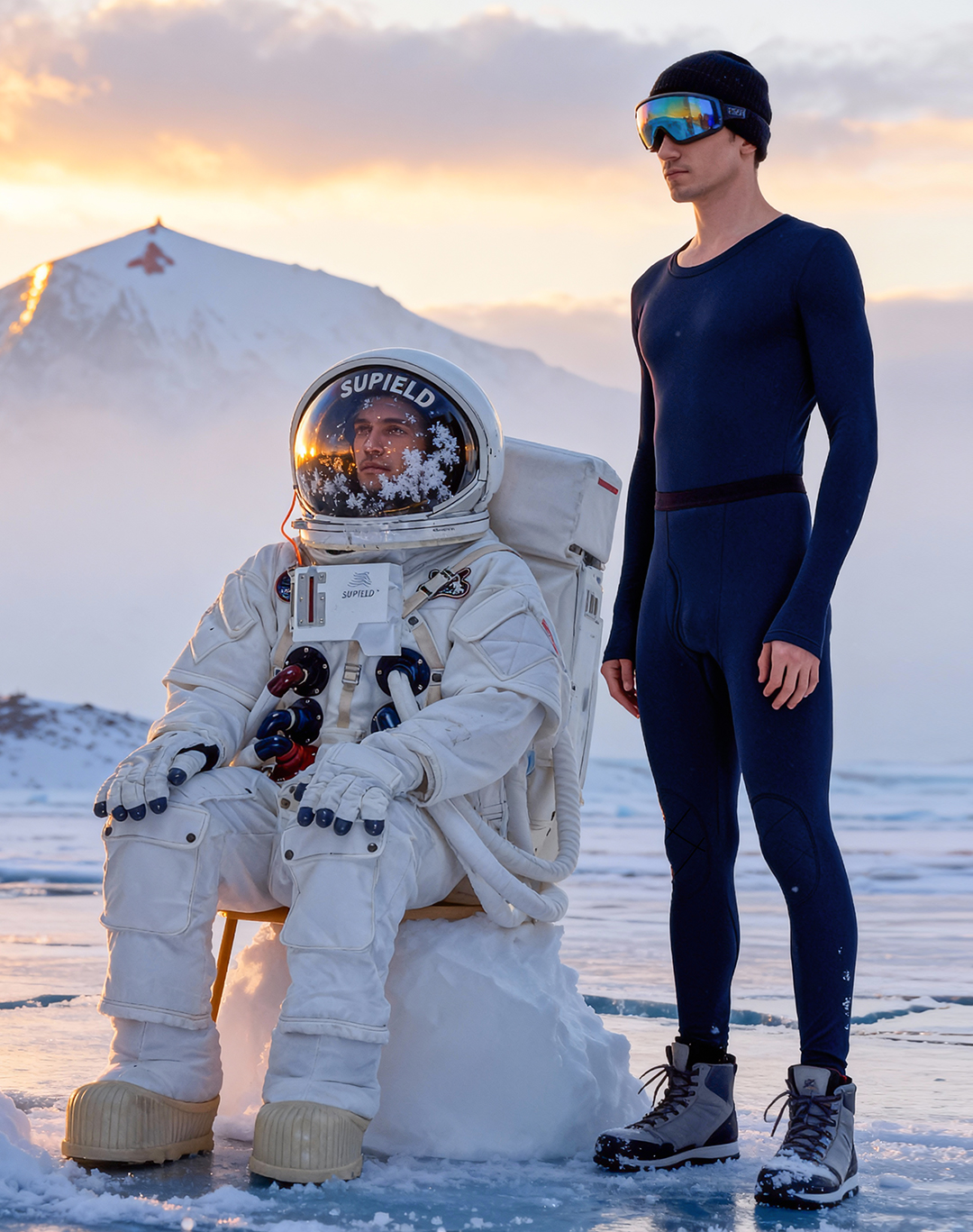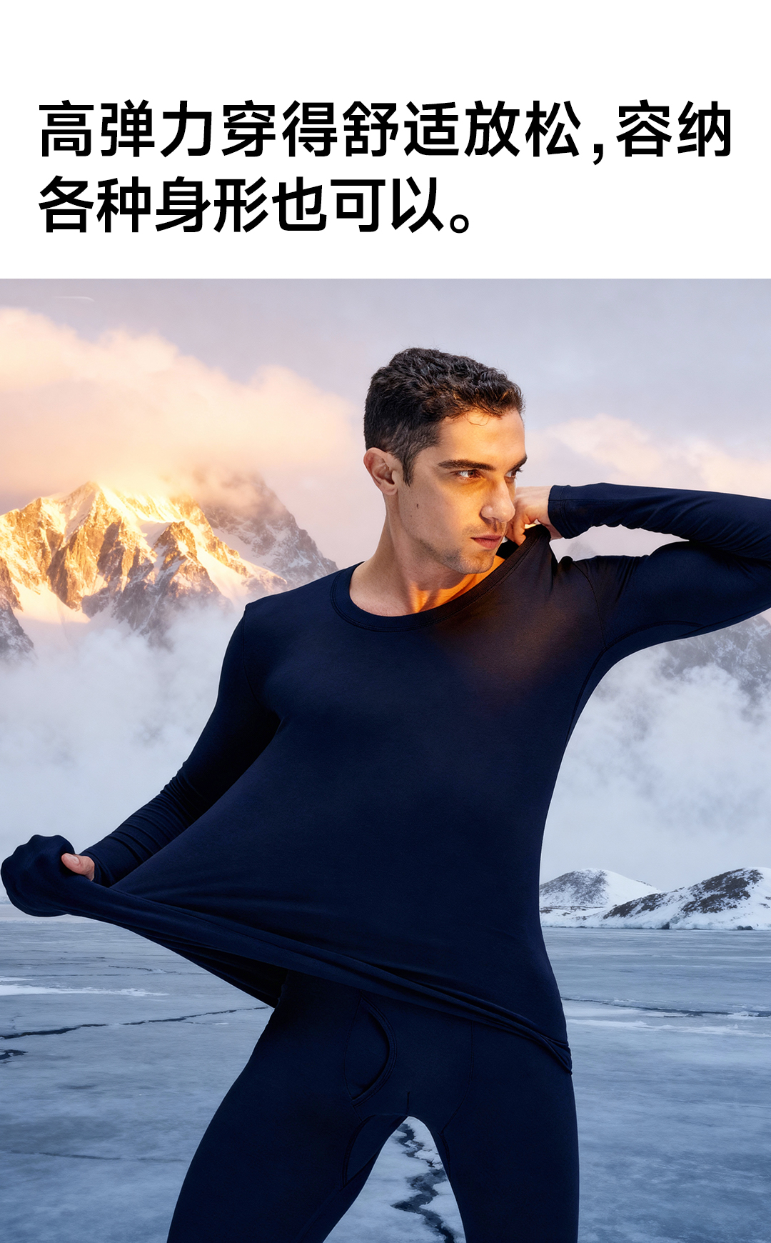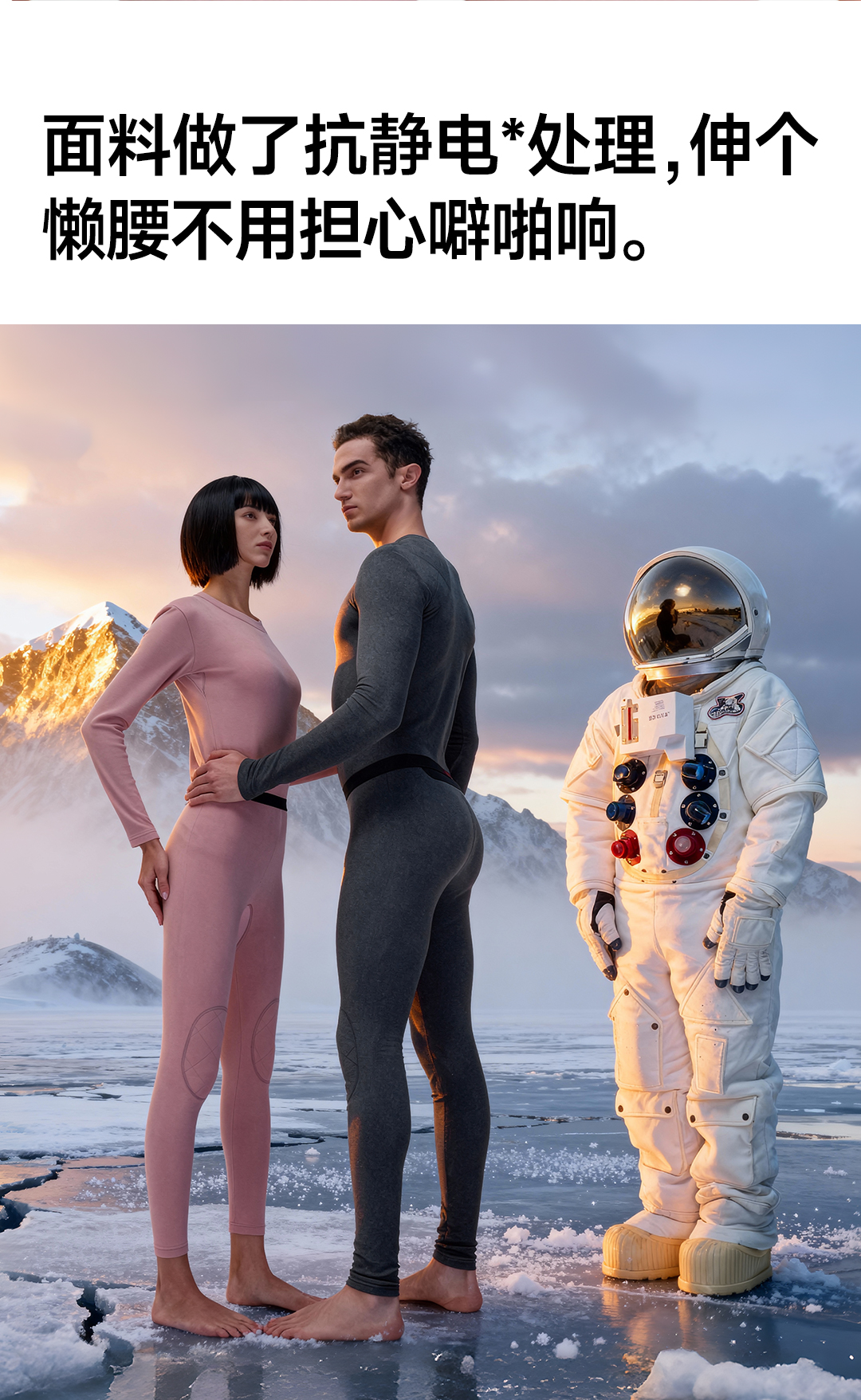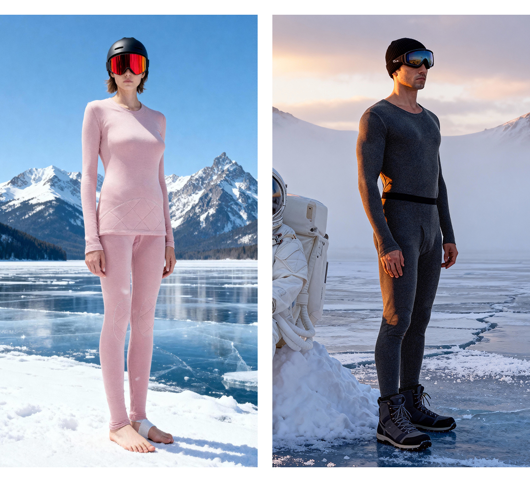 混知推荐【宇航保暖科技 双面绒加倍锁热】 素湃SUPIELD温倍暖气凝胶保暖内衣 吸湿速干 防静电 肩部膝盖强化保暖