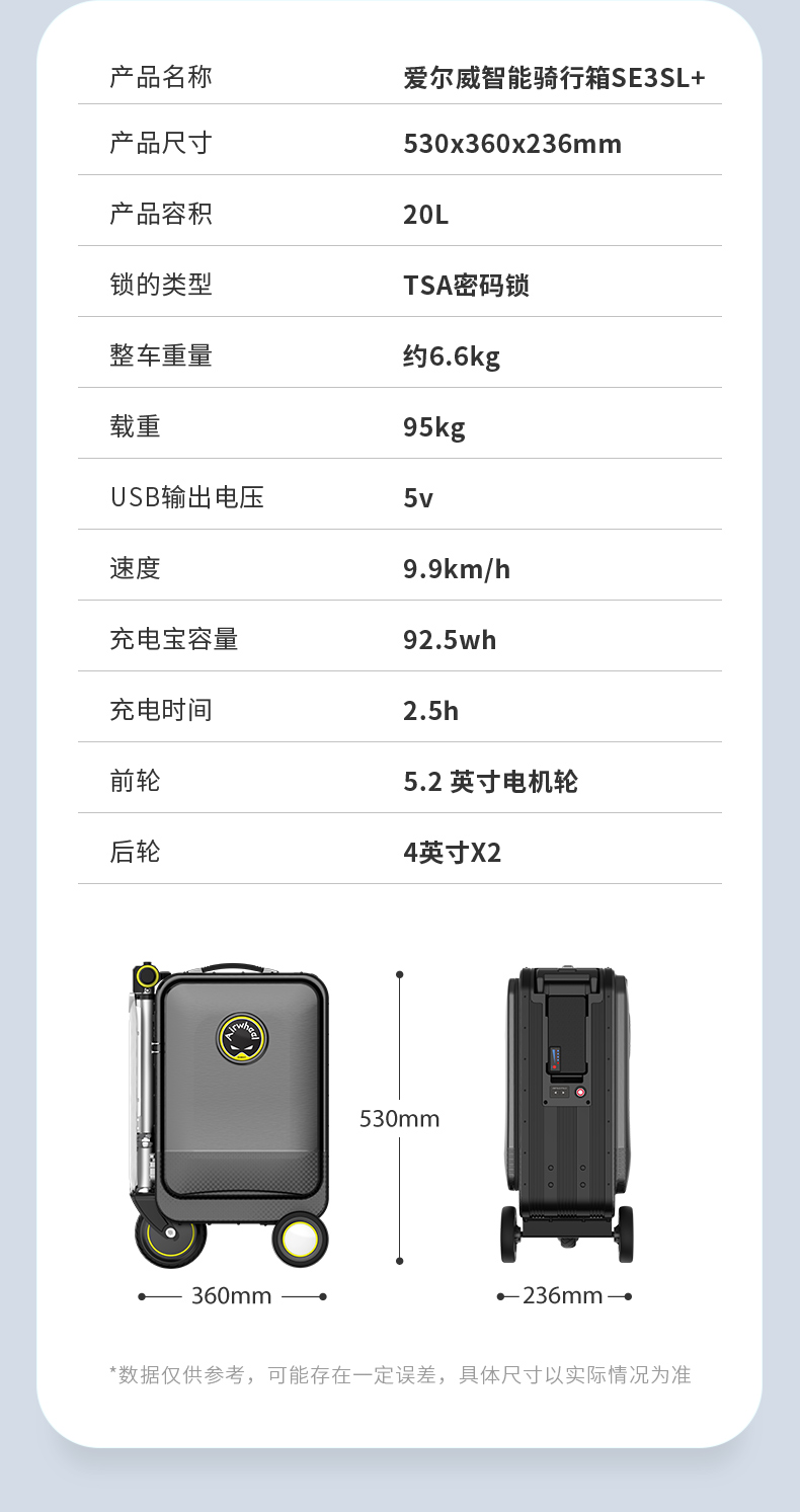 爱尔威/Airwheel SE3SL+伸缩20寸电动行李箱Airwheel骑行旅行可登机智能箱子