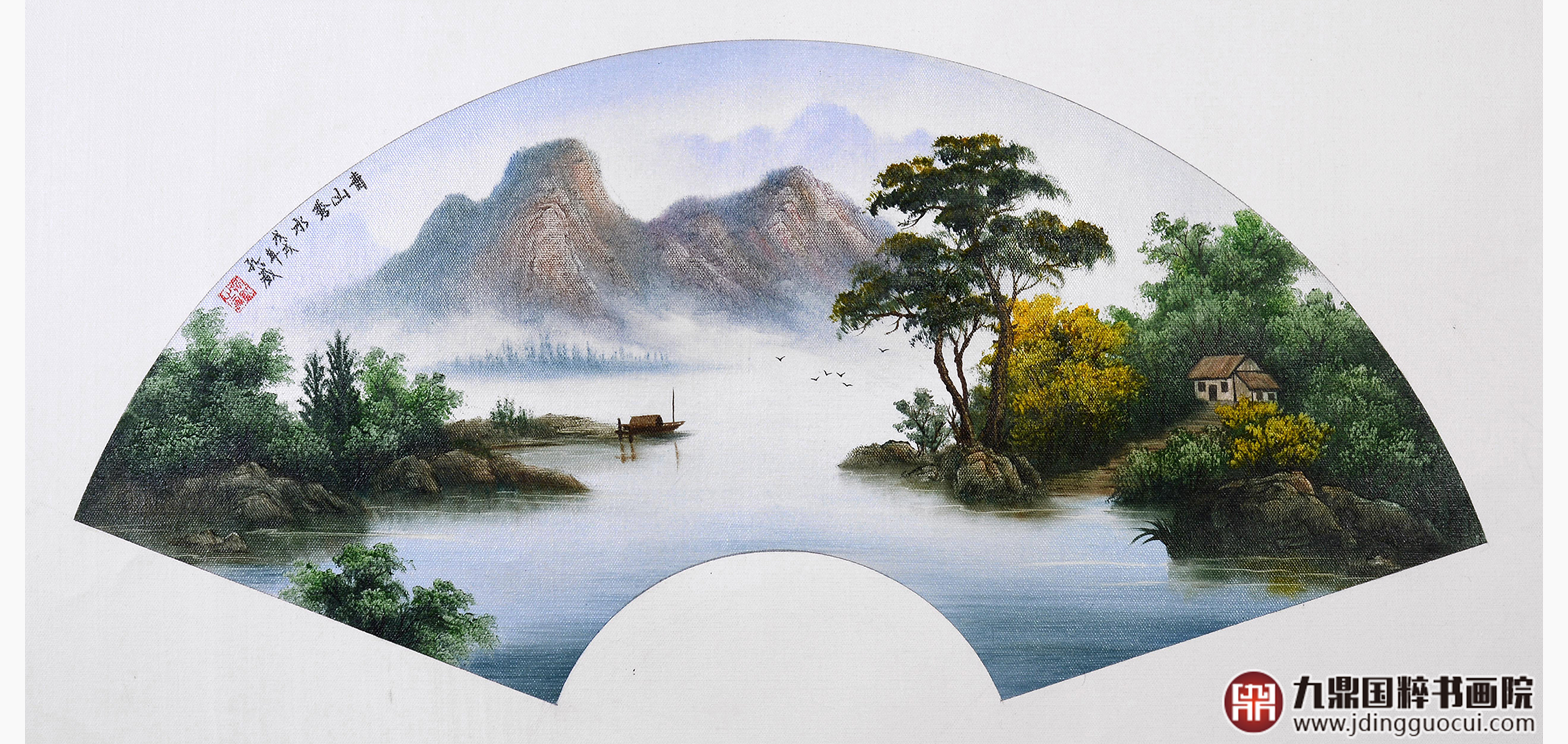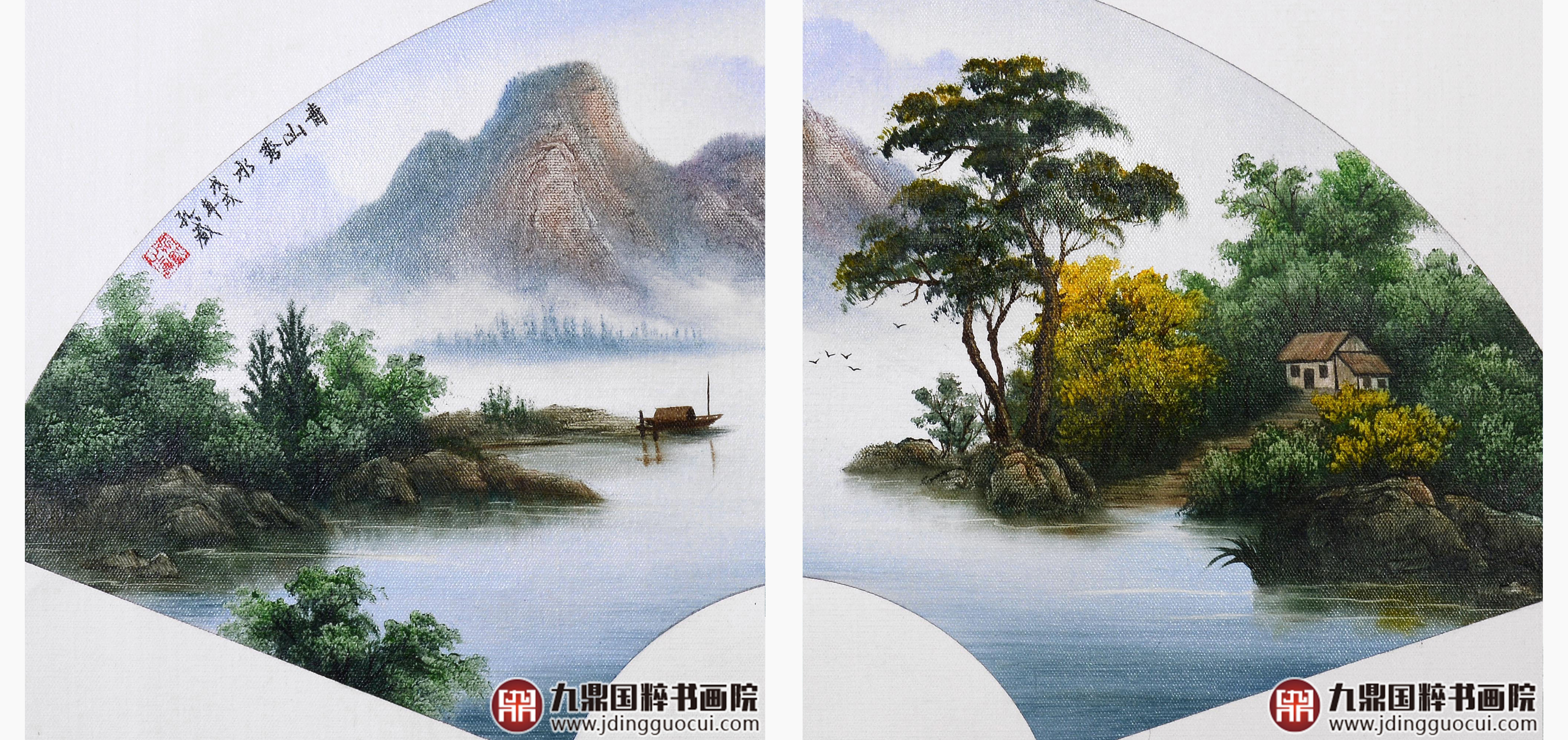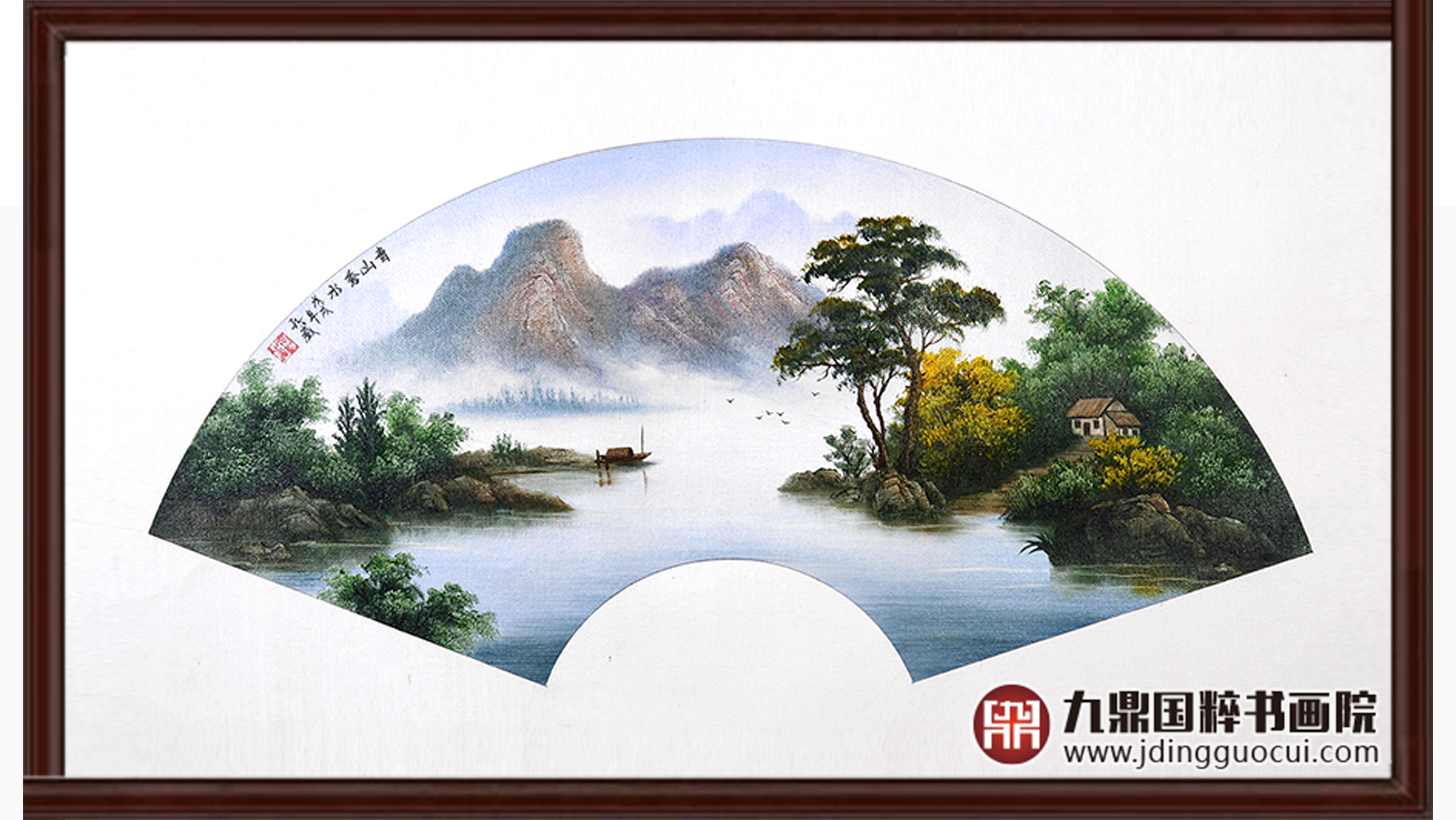 孔威《青山秀水》扇面 50*70cm 油画扇面作品 客厅/玄关挂画